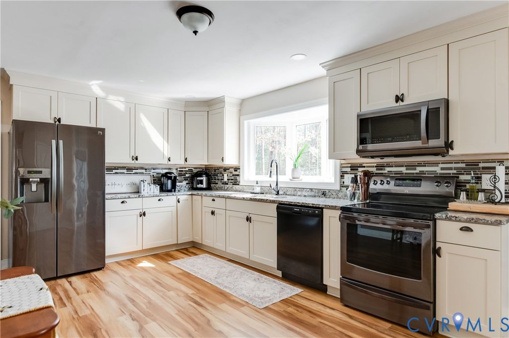 Welcome Home! This charming 5-bedroom, 3 full bath home is nestled on a generous 1-acre lot in the sought-after Varina Meadows neighborhood. Phenomenal updates include a new chef's kitchen featuring granite counters, custom cabinetry, newer appliances, bright and sunny picturesque bay window above the sink, gorgeous flooring, large pantry, making the space perfect for gathering with family or entertaining. Many updates include replacement Vinyl Siding, New Roof, New Replacement Windows, New Hot Water Heater! Large Family Room includes a wood burning fireplace, with access to separate laundry room! Spacious and Bright formal Dining and Living Rooms! First Floor Bedroom has access to a private full bathroom! Additional features include a lovely front porch, large detached shed with storage to the ceiling, a side entry off the driveway is very convenient for accessing the home, electric wiring at the panel box is in place for a small generator connection. This home is in close proximity to the Virginia Capital Trail, James River Marinas and all the scenic views traveling on Route 5.