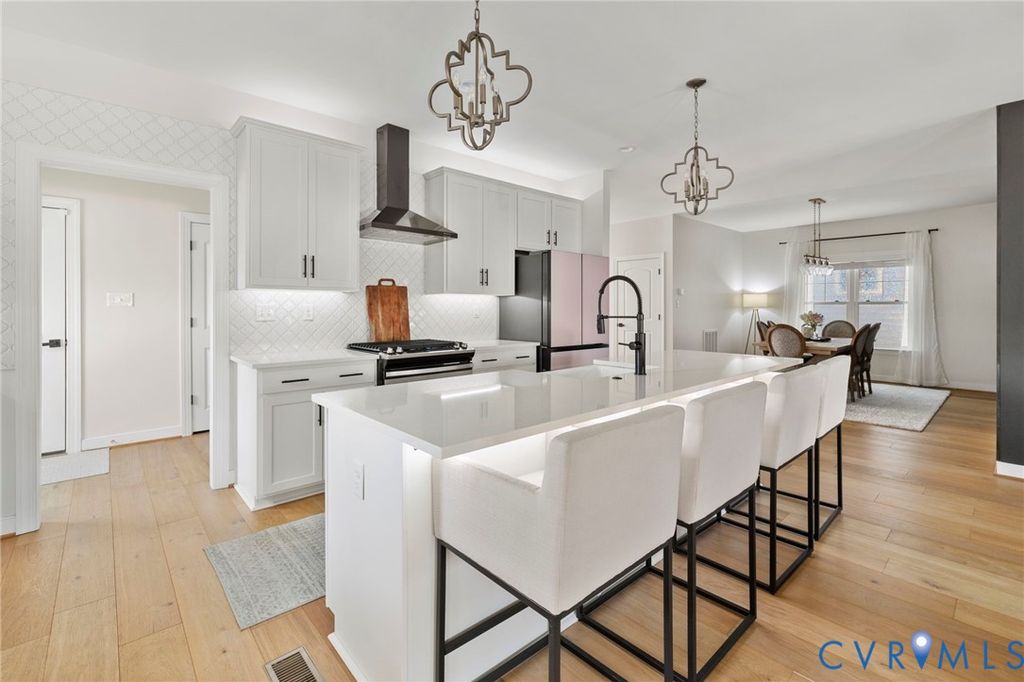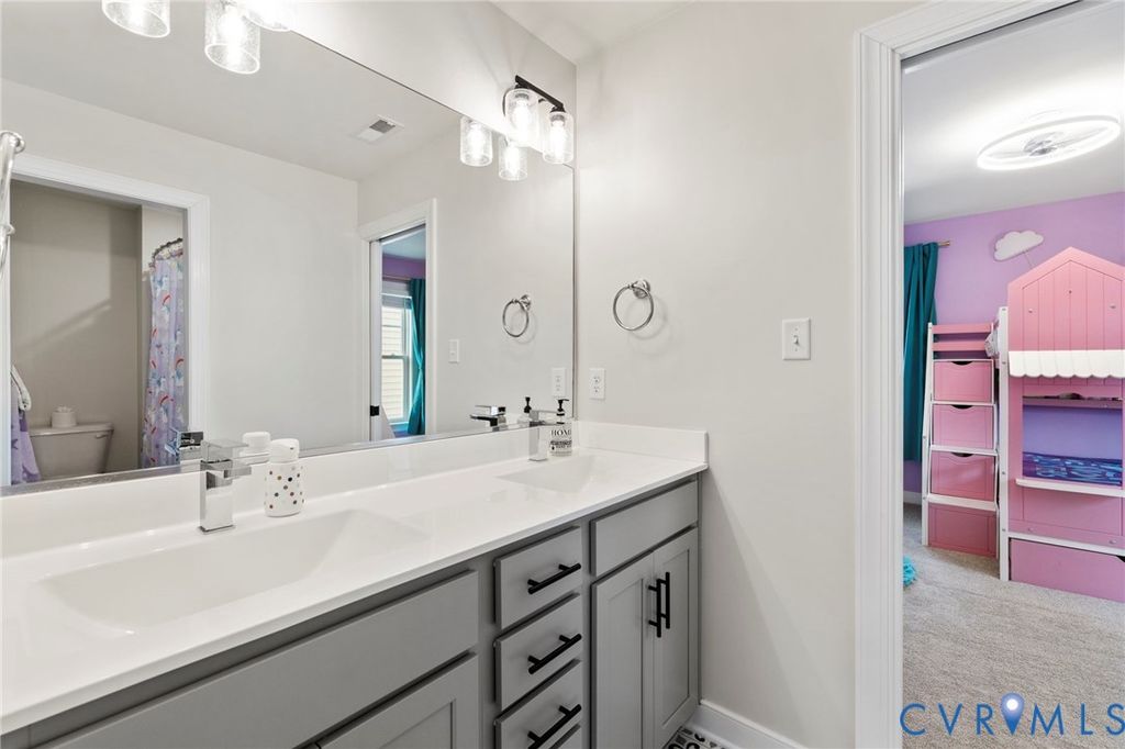 Built by NK Homes and tucked on a quiet cul-de-sac, this beautifully appointed home blends timeless design with a thoughtfully curated floor plan. Spacious living areas, refined finishes, and intentional details throughout create a home that feels both elevated and effortlessly livable. The main level features gleaming hardwood floors and a well-balanced layout that offers both open gathering spaces and defined rooms. A formal dining room sits just off the entry, while the kitchen and living area form the heart of the home. The kitchen is beautifully appointed with quartz countertops, an oversized island, high-end appliances, and abundant cabinetry, flowing seamlessly into the living room with custom built-ins. A walk-in pantry and mudroom add functional storage, while a private first-floor guest suite with an en suite bath offers comfortable space for visitors or multigenerational living. Upstairs, a spacious loft provides flexible living space ideal for a second lounge or media area. The primary suite serves as a relaxing retreat with a spa-like bath and a large walk-in closet featuring a custom storage system. The second level also includes an oversized laundry room with extensive storage, a dedicated home office, and two additional bedrooms with walk-in closets connected by a Jack and Jill bath. All within Timberlake Commons, one of Mechanicsville's well-established communities, offering neighborhood charm with convenient access to the area's everyday amenities.