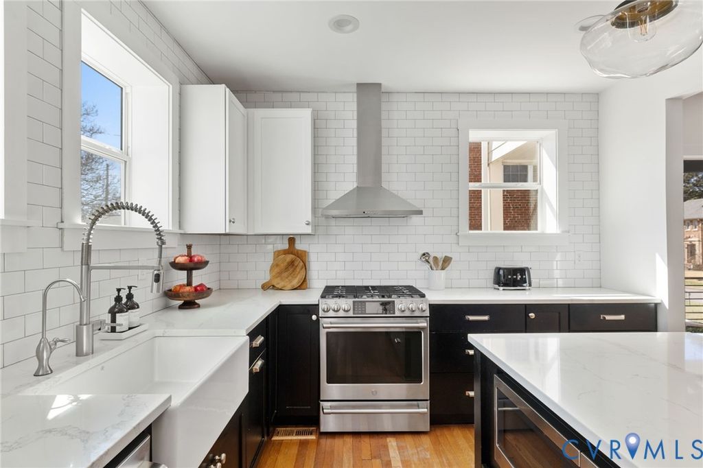 Completely renovated, gourmet kitchen, luxury primary retreat, finished basement, large private backyard, detached garage, walkable to restaurants & schools"”need we say more!? Welcome home to this designer-owned home in the highly desirable Edgewood neighborhood of Richmond blending historic charm w high-end modern living. Thoughtfully reimagined by the owner, this top-to-bottom renovation was curated to create a home that is both stylish & functional. Offering 2,299 sq. ft., 3 BRs & 2.5 baths, the home features updated electrical, plumbing, HVAC, fixtures & designer finishes throughout. The classic white-painted brick exterior delivers timeless curb appeal while hinting at the transformation inside. Step into a light-filled living space w HW floors, recessed lighting & fireplace w gas line already in place. The layout flows seamlessly into the chef's kitchen designed for everyday living & entertaining with quartz countertops, oversized island w bar seating, gas cooktop w modern hood, custom cabinetry & contemporary lighting. Just off the kitchen, the dining area opens to the rear patio & expansive fenced backyard, creating the perfect indoor-outdoor flow for entertaining or relaxing. A side deck adds additional outdoor space. Upstairs features a true primary retreat w HW floors, custom walk-in closet system, & spa-like en-suite bath w dual quartz vanity, herringbone tile flooring & frameless walk-in shower. Two additional BRs offer HW floors & share a stylish hall bath. Upstairs laundry & pull-down attic storage complete the level. The finished basement provides versatile bonus space ideal for a media room, fitness area or playroom plus loads of storage. Outdoor living shines w a private fenced backyard, spacious patio & detached garage w alley access for added storage & convenience. This designer home offers a rare opportunity to own a move-in ready property w luxury finishes, chef's kitchen, true primary suite, finished basement & generous outdoor space in one of Richmond's most sought-after neighborhoods.