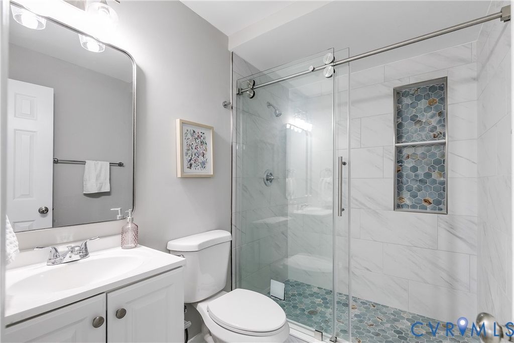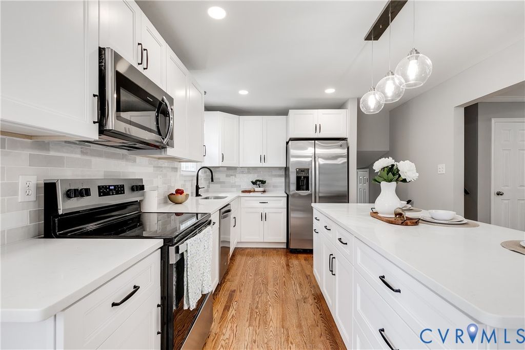 Completely renovated home in the heart of North Chesterfield, located in the desirable Bon Air area. This beautifully updated property offers 4 bedrooms and 3 full bathrooms with modern upgrades throughout. The fully renovated kitchen features new white cabinetry, quartz countertops, stainless steel appliances, and a large island with bar seating, all opening to the dining area and living room to create a bright open-concept main level perfect for everyday living and entertaining. New hardwood flooring extends throughout the main and upper levels, with new LVP flooring on the lower level. The lower level offers a spacious family room with a fireplace, a bedroom, and a renovated full bathroom, making it ideal for guests or additional living space. Step outside from the family room to the screened-in porch overlooking the private backyard, a perfect place to relax and unwind. This level also includes the laundry room and a mudroom/utility area. Upstairs is the the primary suite with a beautifully renovated en-suite bathroom, along with two additional bedrooms and a renovated hall bathroom. Major updates include a new electrical panel (2026), new roof (2025), and water heater (2023), along with new lighting fixtures, plumbing fixtures, vanities, tile flooring, and showers throughout the home. Situated on a 0.32-acre lot, the property offers plenty of outdoor space while being conveniently located near shopping, dining, and major commuter routes.