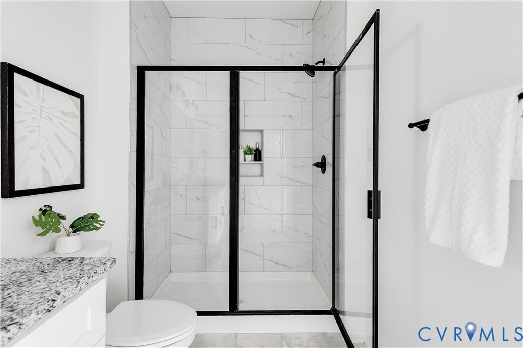 Welcome to sleepy Chestnut Hills minutes from downtown Richmond and around the corner from 64 and 95 this is a perfect location!! This home features 3 bedrooms, 2.5 baths, 1,900 SF of living space with 504 SF of unfinished space in the basement with a roughed in full bath, as well as 9' ceilings on both 1st and 2nd floors, hardwoods throughout, picket fenced front yard, and a privacy fenced rear yard with alley access and plenty of parking on the side street! Walk onto the full covered front porch overlooking the tree-lined street and into a larger LR with recessed lights, ceiling fan, and sightline to the rear of the home. Dining area off the kitchen is perfectly sized for a larger table and features overhead lighting and recessed lights. Spacious and bright kitchen with quartz countertops, classic white shaker-style cabinets, SS Appliances, a massive walk in pantry, and an island with overhang for seating!! Walk out onto the rear deck overlooking the privacy fenced yard with off-street parking! Nice sized primary suite features hardwoods, a ceiling fan, recessed lights, a 5x8 WIC, and an en suite with a double bowl vanity with a granite counter top, larger walk-in shower, and tile floors. Nice sized 2nd and 3rd bedroom also feature walk in closets, ceiling fans, hardwoods, and good closet space. Hall bath boasts tile floors, granite counters, and tub/shower with niche and tile surround! Stop by and see this one for yourself!