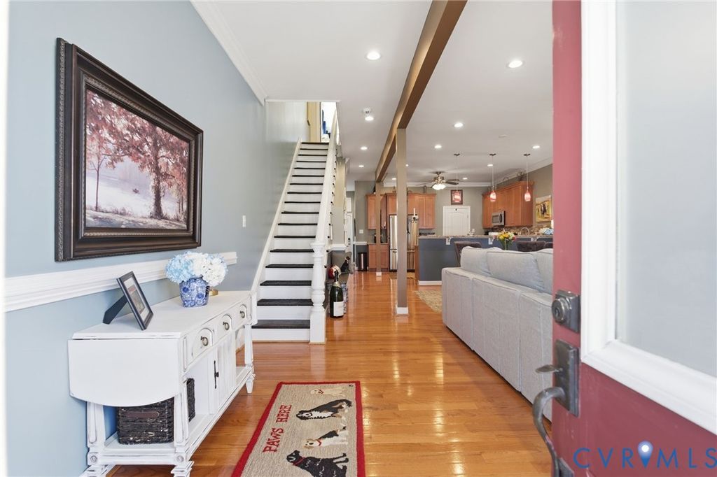 Nestled at the edge of Union Hill and Church Hill, two of Richmond's most historic and walkable neighborhoods, this stunning Jefferson Avenue home built in 1890, is the perfect balance of classical styling and modern updating. With its double front door, full length porch, tall front windows, and architectural nuances - this recently renovated - and absolutely move-in ready home offers the perfect blend of historic charm and vibrant city living. Upon entry to the home, you are greeted with a wide open Living + Dining + Kitchen layout that is both comfortable for everyday living and absolutely ideal for occasions when entertaining. Gorgeous hardwood floors lead you back to a spacious kitchen - featuring tons cabinetry, granite counters, stainless appliances, and a large walk-in pantry. At the back of the home, you will find a perfect space for your home office, gym, or gaming room. The main level also includes a powder room and access to parking and your outdoor living space. Once upstairs, and at the rear of the home, you will find a generous owners suite featuring a large walk-in closet, and an en suite with a double vanity, and an oversized tiled shower. Down the hall, there are 2 additional bedrooms with ample closet space, a hall laundry, and a full hall bath with double vanity - large enough for sharing. Once outside, take advantage of great outdoor living - enjoying evenings and weekends - grilling and lounging on the raised deck. Enjoy all of this plus the convenience of dedicated off street parking at the rear of the home - with courtyard access vs the commonly found narrow rear alley. Situated on the block between Jefferson Park and the Union Market - stop by today and see all that this home and great community have to offer. This is the one you have been waiting for - and with 1.5 to 2 years of Tax Abatement credit remaining!