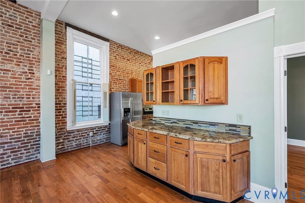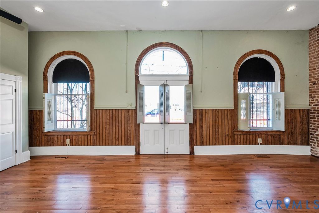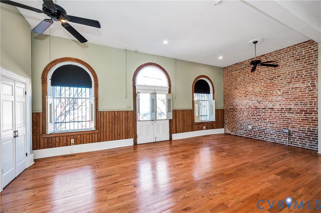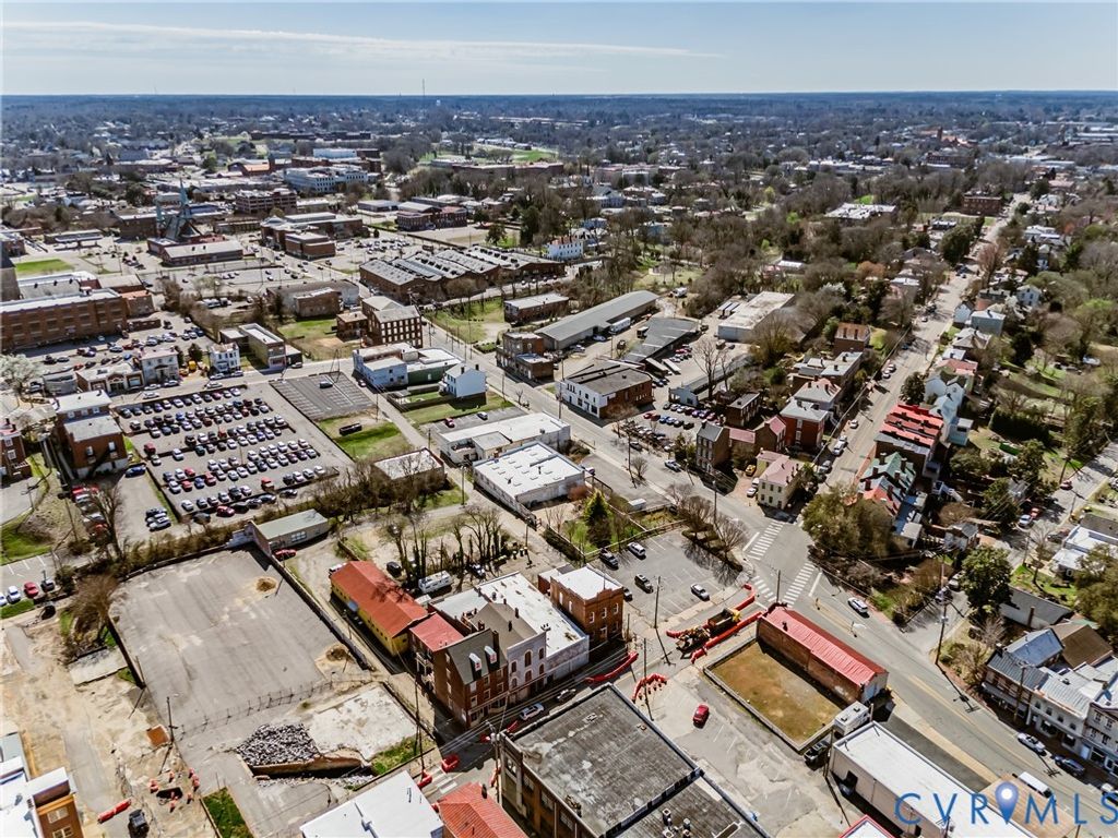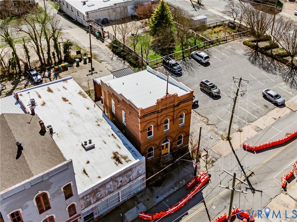 Historic Mixed-Use Opportunity in the Heart of Old Towne Petersburg Located in the vibrant downtown district of Old Towne Petersburg, this circa-1820 brick mixed-use building offers a rare opportunity for residential income, commercial use, or a live-work setup. Zoned B-3 (Central Business District), the property allows for a variety of uses including retail, office, restaurant, gallery, or residential, making it ideal for investors and business owners alike. The property offers approximately 2,900 square feet and is currently configured as a duplex. Each unit has separate entrances, utilities, and mailboxes, providing flexibility for leasing or owner occupancy. The first-floor space features spacious rooms with high ceilings and exposed brick, offering excellent potential for retail storefront, office space, studio, or a reimagined residential unit. The layout allows for a possible second bedroom or commercial storefront conversion, depending on the buyer's vision. Upstairs, the second-floor apartment provides comfortable living space and includes access to a private rooftop terrace, perfect for entertaining or enjoying views of the historic downtown district. Major improvements include a new thermoplastic polyolefin (TPO) roof installed in 2025, new second-floor HVAC (2025), first-floor HVAC replacement in 2021, and a fully waterproofed basement with an additional sump pump. Additional features include an attached garage with direct access to the first floor, offering potential for additional commercial space, storage, or possible conversion, along with paved rear parking and convenient access via Bartow Alley. Just steps from restaurants, galleries, shops, and entertainment, this unique property combines historic character, income potential, and commercial flexibility in one of Petersburg's most desirable downtown locations.