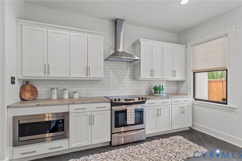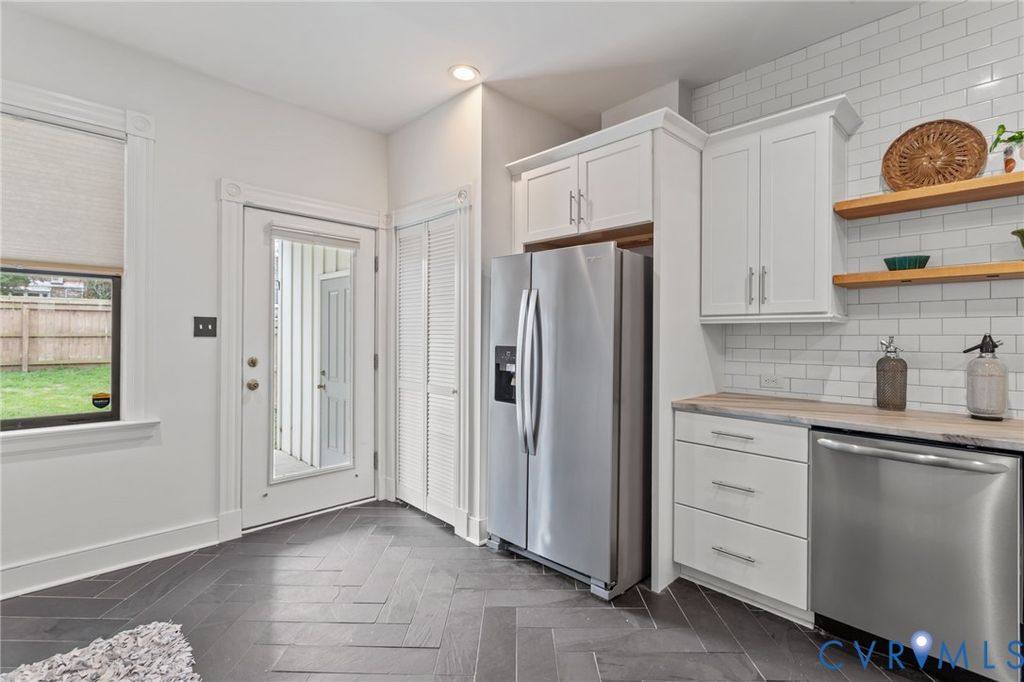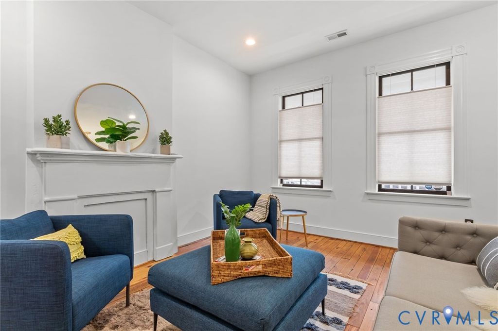 Beautifully updated historic home in Richmond's vibrant Union Hill neighborhood blending historic charm with modern updates. Inside, the character shows up immediately with tall ceilings, beautiful wood floors, & bright living spaces that feel open & inviting while still honoring the charm you expect in a historic Richmond home. Recessed lighting throughout the main level & updated light fixtures add a modern touch, while the easy flow between the living and dining rooms creates a layout that's perfect for hosting. Just off the dining room, the butler's pantry with wine cooler, adds both charm & functionality while creating a natural transition into the kitchen. The kitchen itself blends style & practicality with granite countertops, floating shelves, stainless appliances, generous cabinet space, & a tile backsplash that extends all the way to the ceiling, creating a clean, modern feel. Upstairs, the primary suite offers a comfortable retreat with a walk-in closet & a beautifully updated bath featuring a glass shower with floor to ceiling tile & a double vanity. Two additional bedrooms offer generous closet space & flexibility for guests, a home office, or whatever fits your lifestyle, and the second updated full bath continues the home's modern feel. Outside, the inviting front porch is the perfect spot to relax and take in the neighborhood, while off-street parking, a covered back patio, privacy fence, & a storage shed add everyday convenience. With all major systems less than 10 years old, the home offers both comfort & peace of mind. Located in Union Hill, one of Richmond's most historic and walkable neighborhoods, you'll love being just minutes from some of the city's most celebrated destinations. Local favorites like Sub Rosa Bakery, Union Market, & the many restaurants & cafes throughout Church Hill & the East End are just a short stroll away. The area's rich history, stunning architecture, & strong sense of community make it one of Richmond's most desirable places to live.