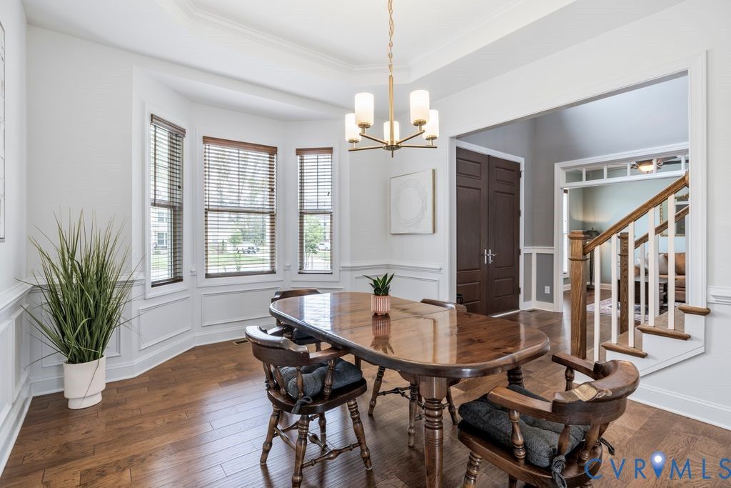 Welcome to 11655 Riverboat Drive, a beautifully designed Lancaster model by Main Street Homes offering over 4,000 square feet of refined living in Meadowville Landing. Built in 2022 and situated on a spacious 0.60-acre lot, The Lancaster features 5-bedrooms, 4-bathrooms. The main level features hardwood floors, 10+ ft ceilings, a private office, formal dining room with detailed trim, a stunning living room highlighted by a 25-ft coffered ceiling with expansive windows throughout that boast natural light and the gas double-sided fireplace in the screened porch. The chef's kitchen is both elegant and functional, showcasing granite countertops with stunning backsplash, a large center island, gas cooking, double ovens, custom cabinetry, and a butler's pantry with an eat in kitchen. A first-floor bedroom with full bath is perfect for multigenerational living or a guest suite with convenient main-level living. As you make your way up upstairs, you'll notice the spacious loft area which is perfect for play, work & relaxation. The the primary suite serves as a true retreat with a spacious bedroom and elegant bathroom featuring a soaking tub, rain-style walk-in shower, dual vanities, and an oversized walk-in closet. The 2nd level also is complemented by 2 additional bedrooms, full bathroom with tiled shower flooring and shower walls. The finished third floor offers another private suite with a generously sized walk-in closet, fireplace and a full bath"” The possibilities are endless! Enjoy the screened-in porch, fully fenced backyard, perfect for entertainment, a 2.5-car side-entry garage, and access to Meadowville Landing community amenities including a pool, clubhouse, walking trails and river access with public dock"”offering space, privacy, and lifestyle in one exceptional Chester location. Just a short drive to shopping, dining, 295 & i-95. Come see what this home has to offer & make it your new home today!