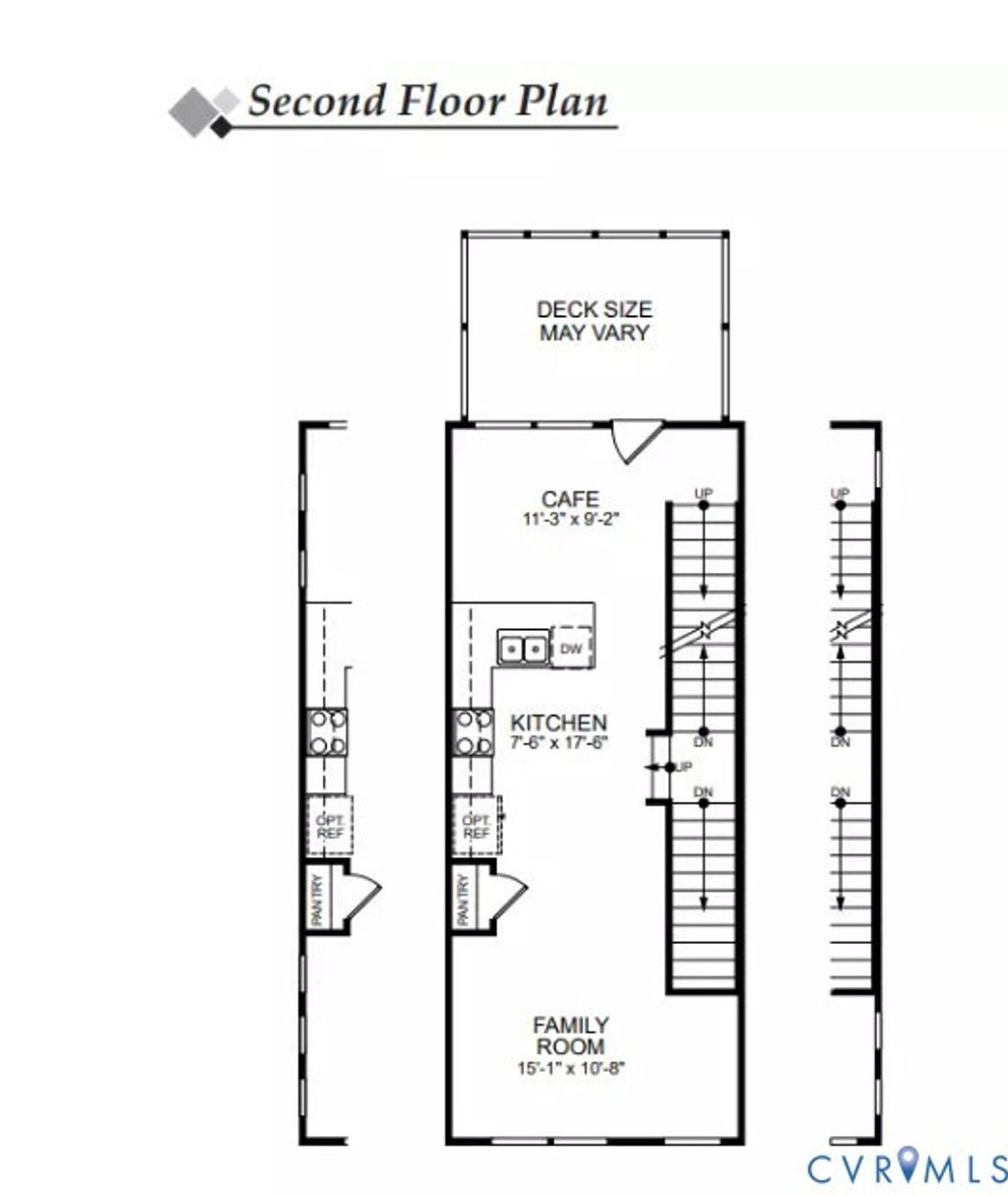 Discover a lifestyle of convenience and recreation at Hampton Ridge, featuring a pool, dog park, trails, and pavilion just steps from the YMCA. The Marshall is a three-story townhome featuring three bedrooms, three full baths, and a one-car attached garage. As you enter, you'll find the first-floor guest suite featuring an ensuite bath with a tub/shower combo. The main living areas showcase the stunning light natural EVP flooring. The second floor offers open-concept living, featuring an elegant designer kitchen with quartz countertops, crown molding, an island, stainless steel appliances, a pantry, and a barstool area open to an adjoining cafe dining area and the family room. A rear deck completes the second floor. On the third floor, all bedrooms highlight carpet flooring. You'll find the primary bedroom featuring a walk-in closet, tray ceiling, and an ensuite bath with a tiled, LUXURY shower. Bedroom two features a closet and an ensuite bath with a tub/shower combo. A convenient hall laundry room completes the third floor. Residents of Hampton Ridge can enjoy front-load garages and access to the Hampton Park pool. Experience the perfect blend of convenience and recreation at Hampton Ridge, a vibrant townhome community featuring premium amenities and seamless access to local favorites. Hampton Ridge Townhomes is a great place to call home.