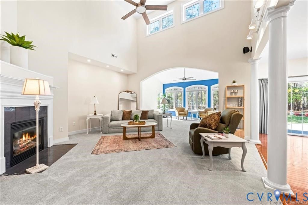 Welcome to Brickshire a Charming Golf Course Community. Offering Gorgeous Landscaping , Manicured lawns, Pools , Clubhouse , Tennis, and many other amenities. The Community building overlooks a pond from a spacious back deck. Just minutes From colonial downs. The charming exterior invites you inside to a grand and welcoming interior featuring a spacious foyer with vaulted ceilings. The first floor offers flex space to use for an office or Library, Formal Dinning Room with an open concept kitchen, living area, sunroom that create the perfect flow for everyday living and entertaining. The kitchen features an oversized island and opens directly to the main living space. Gorgeous hardwood flooring flows throughout the first floor with the exception of the living room & Primary. The first floor primary suite offers a spacious retreat with double vanity and convenient access to the laundry room. Upstairs you will find a versatile loft area with an internal balcony overlooking the main level, on each side , two additional bedrooms, and an enormous family room perfect for a theater room, game room, additional living space or Potential as a 4th Bedroom. Step outside to enjoy the paver patio and flat backyard that extends to the tree line, providing plenty of space for outdoor seating, gardens, birdhouses, or entertaining. The finished garage includes epoxy flooring, an industrial sink, and space for a workshop. This home has been meticulously maintained with serviced systems . A truly move-in ready home that still feels like new.