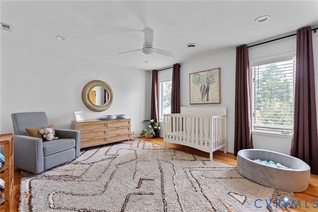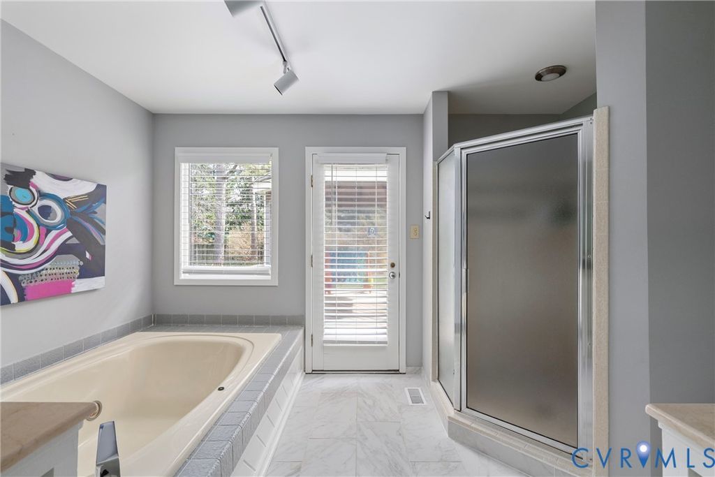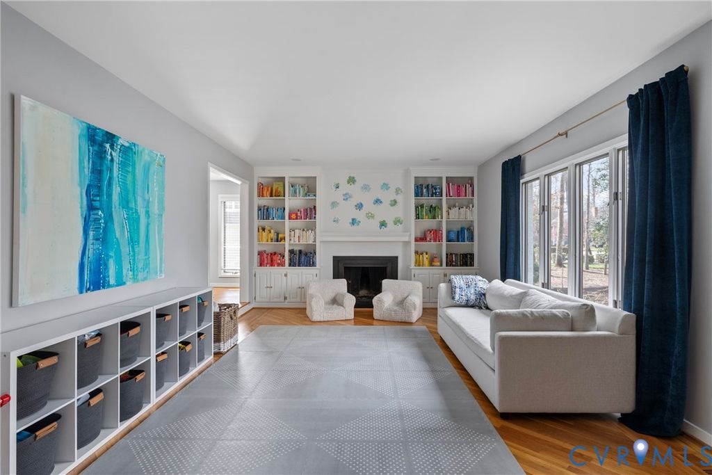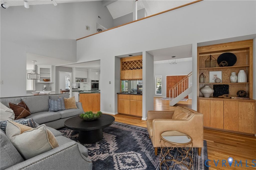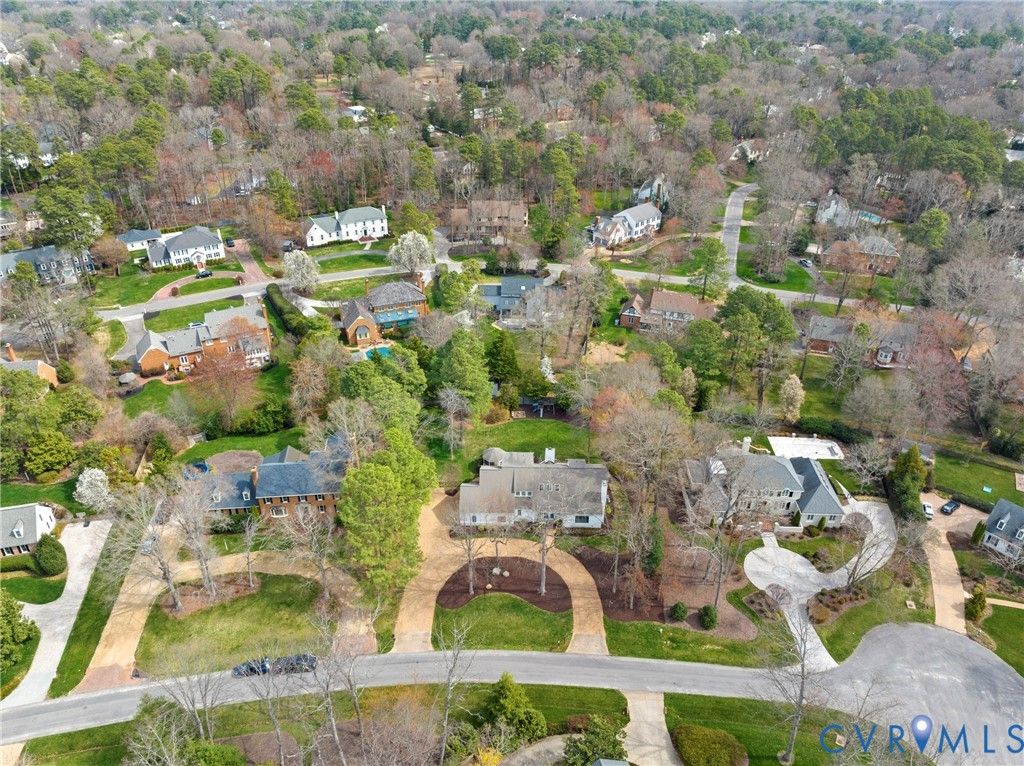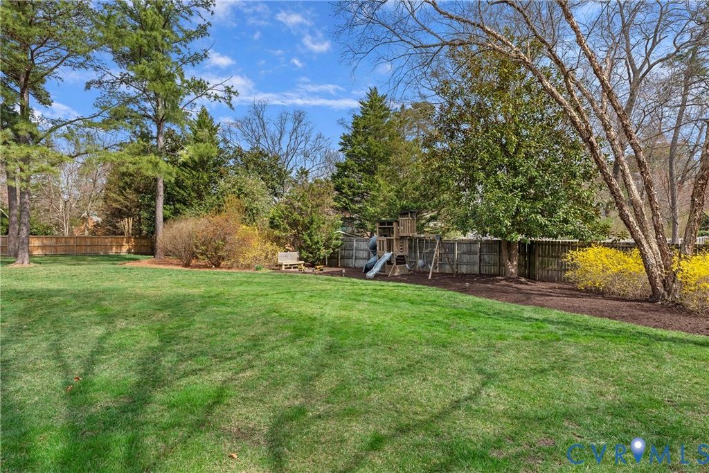 Welcome home to 309 Cheswick Lane, a beautifully appointed contemporary on a quiet cul-de-sac offering 5 bedrooms, 3.5 baths, and 4,065 square feet of thoughtfully designed living space on a flat ¾-acre lot. A wraparound stone driveway, double front doors, and a dramatic vaulted foyer create an impressive first impression. The main level is designed for both everyday living and entertaining, featuring a spacious family room with gas fireplace, stone hearth, and wet bar, along with a formal dining room, sunroom, and an open kitchen with breakfast nook, island, and pantry. A wood-burning fireplace anchors the living room. The first-floor primary suite offers French doors to the deck, a custom walk-in closet, and a spa-like bath with dual vanity, soaking tub, and separate shower. A dedicated laundry room with Speed Queen appliances, mudroom with built-in cubbies, and a half bath complete the main level. Upstairs, four generously sized bedrooms share two well-appointed baths, including a Jack-and-Jill and a hall bath. The oversized garage includes space for a home gym, custom sauna, and additional refrigerator. Step outside to enjoy a full-width deck with gazebo, flat fenced yard, mature landscaping, playground, and storage shed. Ideally located in the River Road corridor near the CCV James River campus, the home offers convenient access to major highways, shopping, and local dining favorites.
