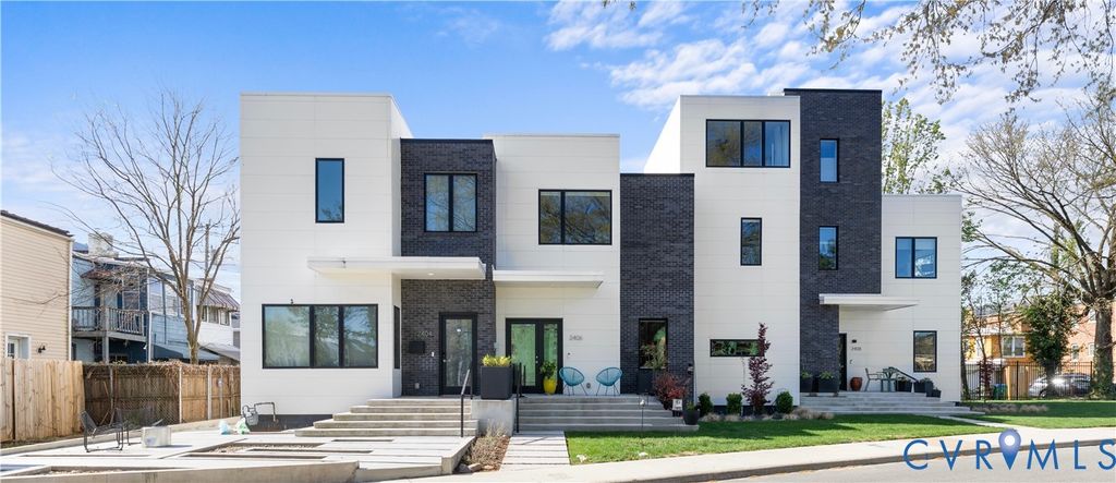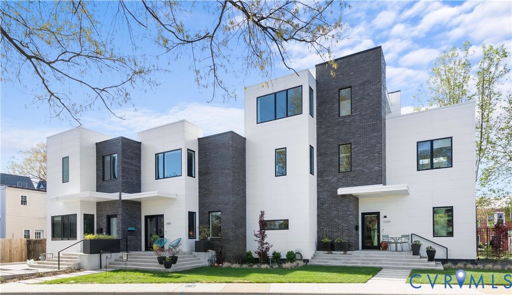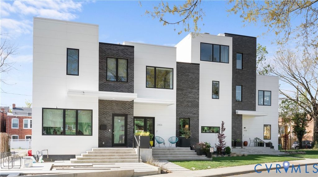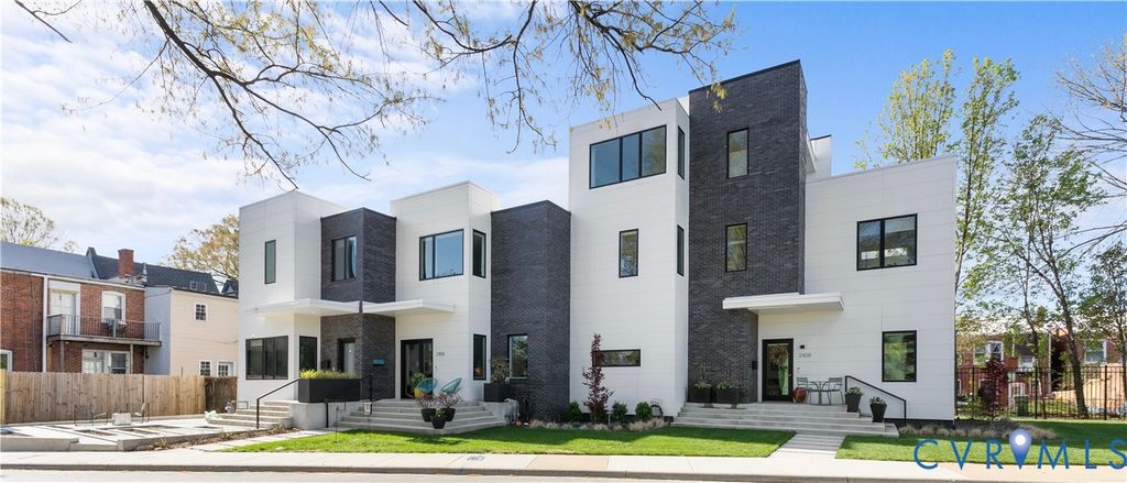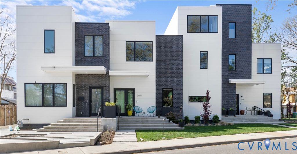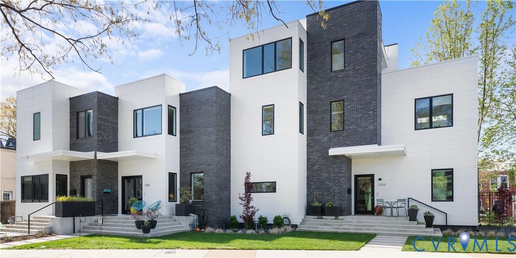 Welcome to 2406 Grayland Ave where modern design comes together perfectly through clean lines, flat rooflines, and crisp light panel siding alongside dark brick creating a stunning place to call home. Inside, the open-concept first floor blends style and function with wide-plank hardwood floors, 10ft ceilings on the first floor, recessed lighting, custom shades, and abundant natural light from the many well-placed windows. The living area is anchored by a stunning full-height tile surround gas fireplace and custom asymmetrical shelving, while the open staircase with wood treads and a modern metal railing adds an extra architectural element. The kitchen is equally impressive, featuring flat-panel cabinetry with beautiful burled walnut flat front cabinets below with crisp white uppers, Quartz countertops, a contemporary tile backsplash flanking a stunning rectangular picture window, and a deep undermount sink with a gooseneck faucet. The oversized island offers seating, additional walnut cabinetry with pull-out shelving, and a gas cooktop with a statement glass-and-stainless range hood above. A convenient half bath and additional storage round out the first floor. Upstairs, a skylit hallway enhances the home's airy feel along with 9ft ceilings! Two bedrooms with custom closets share a stylish Jack-And-Jill bath while the primary suite offers its own custom walk-in closet, space for additional seating, and a well-appointed ensuite"”creating a comfortable, private retreat. Off the kitchen is a covered porch with lighted ceiling fan and a custom roll down shade for sunny days and a custom built locked storage for a grill, coolers, gardening tools and more underneath"”extending the home's modern design outdoors. Ideally located just steps from Fountain Lake in Byrd Park and minutes to RVA's Fan District, Carytown, Maymont and the James River, this home offers unbeatable access to neighborhood amenities including restaurants, shopping, tennis courts, and scenic walking and biking trails.