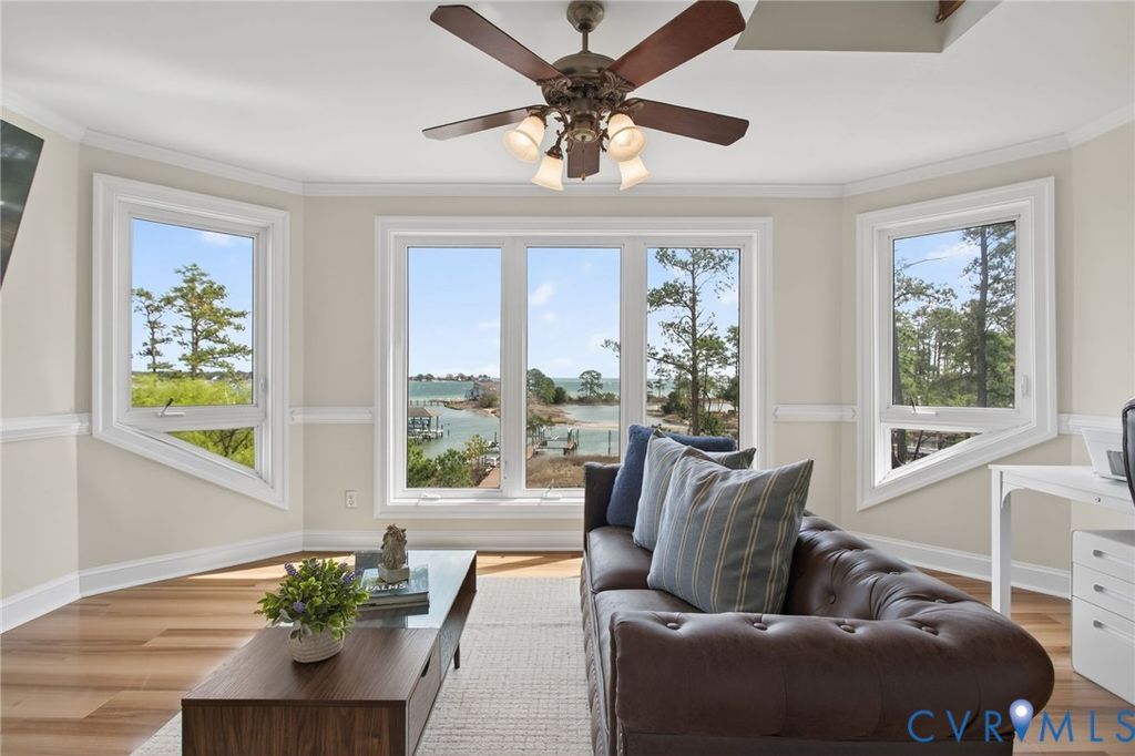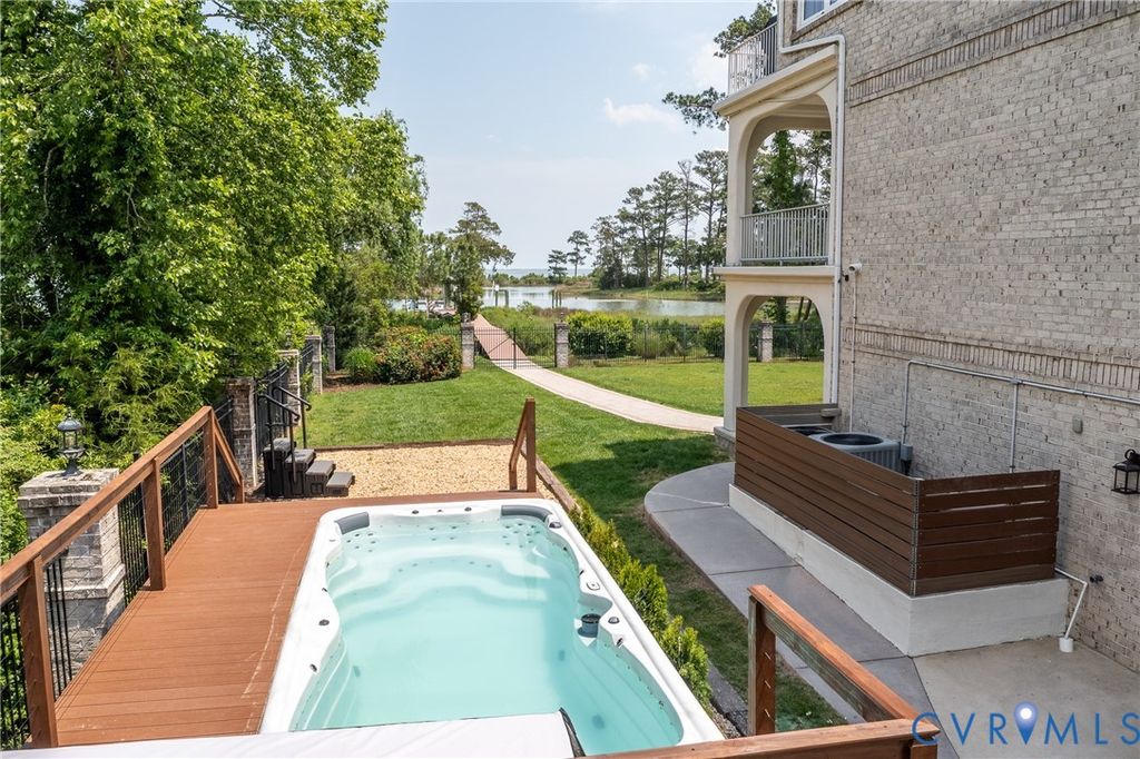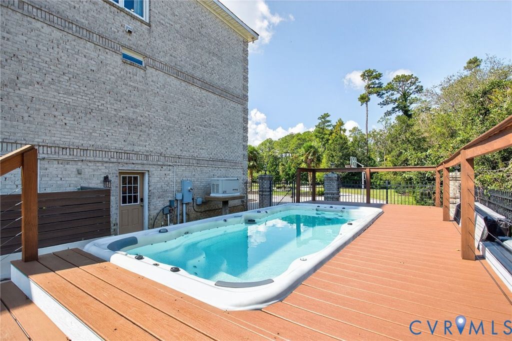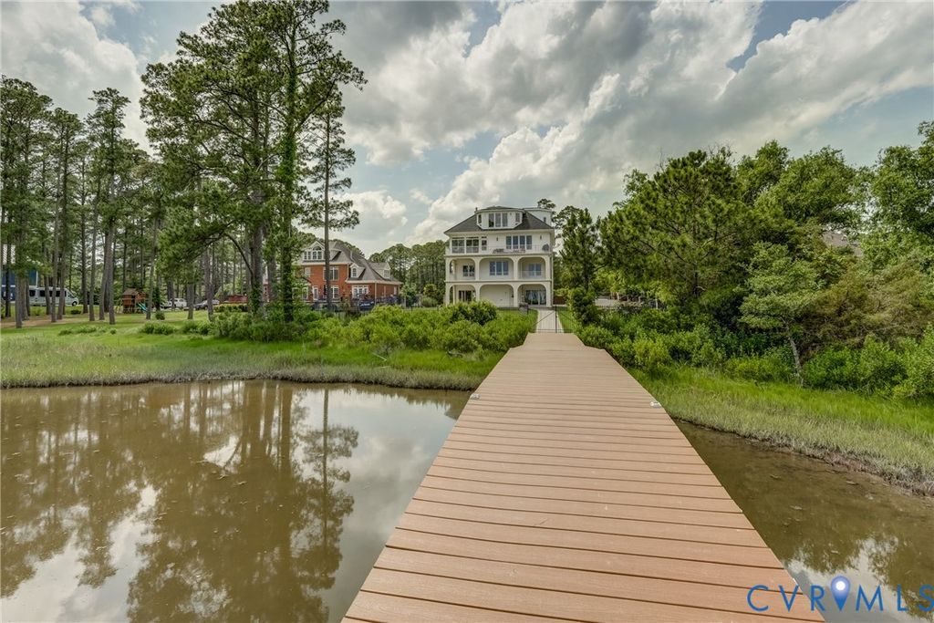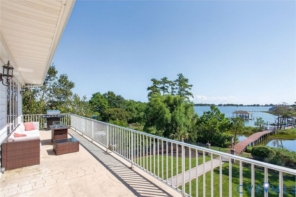 Rare renovated brick waterfront home on Chisman Creek with panoramic views and deep water access to the York and Poquoson Rivers. Offering approximately 5,671 sqft, 8 bedrooms and 5 baths, this home is designed for entertaining and multigenerational living. The open main level features an updated kitchen, dining, family and sunroom areas with fireplace, plus a bedroom, full bath and water view deck. A working elevator serves all floors. Upstairs includes four bedrooms, two baths, a second full kitchen with den, gathering space and private balconies. The primary suite offers a walk in dressing room and widow's walk. Outdoor living includes multi level decking, fenced yard, newly installed driveway security gate, private pier with two slips and two boat lifts, and navigable water for boating and recreation. Recent upgrades include a custom swim spa, generator, paint, tile, driveway, gate, landscaping, and irrigation system. Prime York County waterfront location.