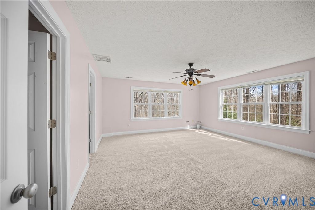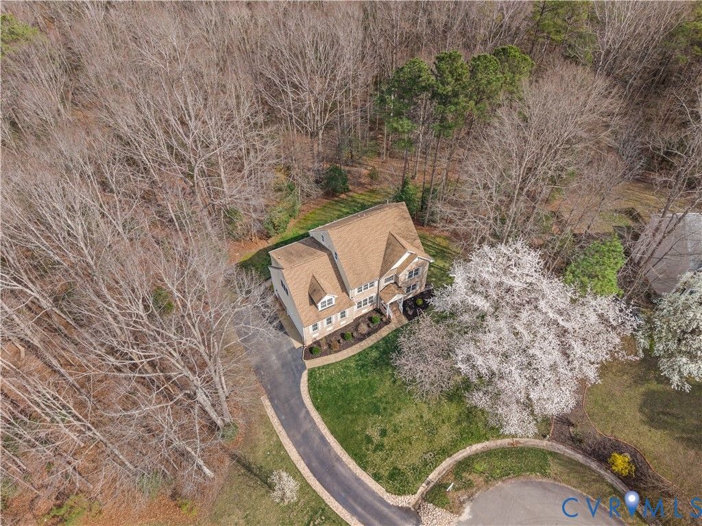 Welcome to Glamis Court"”tucked away at the end of a quiet cul-de-sac in the highly sought-after Highlands community, this home offers the perfect balance of space, privacy, and everyday functionality on nearly five acres. Set on a wooded 4.8-acre lot, the setting alone makes an impression. A paved driveway leads to the home's two-car garage, while the backyard is designed for both relaxation and entertaining"”featuring a spacious deck, patio area, and a striking outdoor stone fireplace that creates a natural gathering space year-round. Inside, the first floor is anchored by hardwood flooring throughout and filled with natural light from large picture windows. The layout flows seamlessly, with an open-concept kitchen, breakfast area, and family room that makes everyday living and hosting feel effortless. The kitchen is well-appointed with granite countertops, stainless steel appliances, recessed lighting, and ample workspace. Upstairs, you'll find a spacious primary suite with an en suite bath, along with additional bedrooms offering flexibility for family, guests, or work-from-home needs. With six total bedrooms and four and a half baths across 4,398 square feet, there is no shortage of space to spread out. The second level is comfortably finished with carpeting, and both the roof and upper-level HVAC have been updated within the last 10 years, offering added peace of mind. Located in The Highlands, residents enjoy access to golf, pool, tennis, walking trails, and a vibrant community setting"”all while being conveniently positioned near Route 288, Hull Street, and the growing Midlothian corridor for shopping, dining, and everyday conveniences. This is a rare opportunity to enjoy privacy, space, and community"”all in one place.
