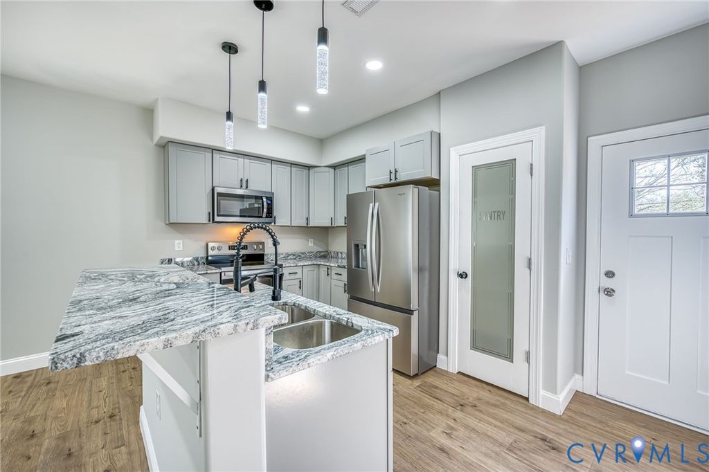 Set on a quiet street in Petersburg, this brand-new 3-bedroom, 2-bath home combines modern design with a sense of neighborhood renewal. Surrounded by other new homes, it's part of a street that's turning the corner"”where fresh construction, cared-for properties, and community pride are reshaping the area. Inside, natural light fills a spacious open layout with vaulted ceilings, recessed lighting, and a chef's kitchen featuring gray shaker cabinets, stone-look quartz counters, stainless appliances, and stylish pendant lighting over the breakfast bar. The primary suite offers a quiet retreat with a walk-in closet and spa-style tiled shower, while two additional bedrooms provide versatility for family, guests, or a home office. Outside, enjoy a sense of openness on the nicely sized lot, offering plenty of room for outdoor living, gardening, or future additions. A rear deck, covered front porch, and long concrete driveway make the home as practical as it is beautiful. Just minutes from Old Towne Petersburg, shopping, and major highways, 926 Willcox St. delivers the best of new-construction comfort in a community on the rise.