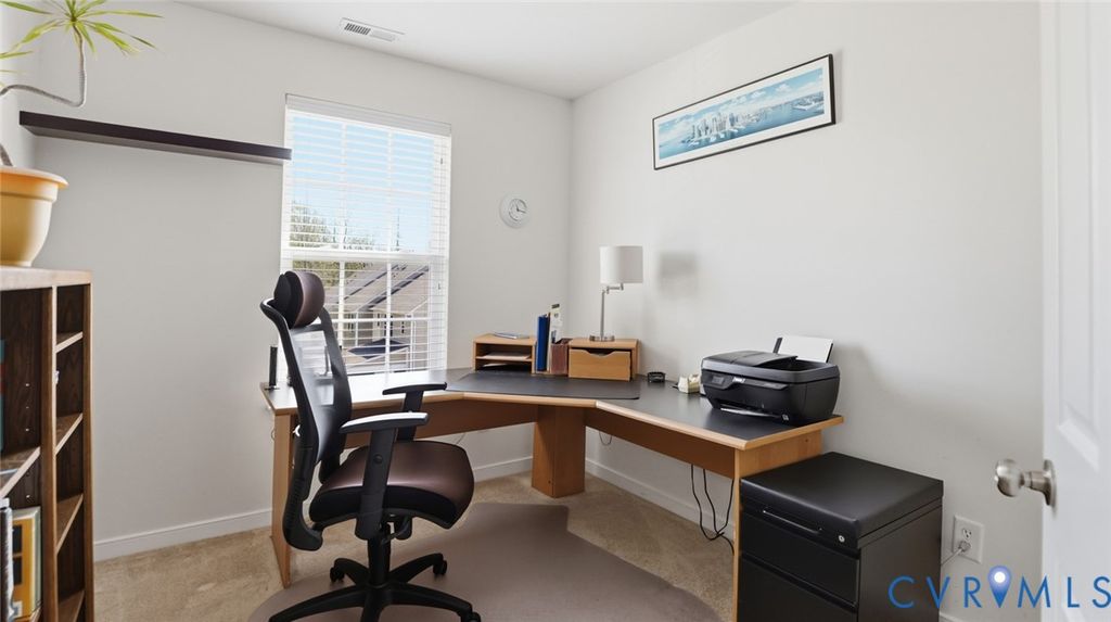 Welcome to this well-maintained townhouse in the sought-after Rutland community, located in the award-winning Atlee High School district. Built in 2008 and offering nearly 2000 square feet, this home provides a functional 3 level layout with low-maintenance living. The main level features a light-filled living room, a separate dining area, and a spacious eat-in kitchen with stainless steel appliances and island with seating and access to rear deck overlooking common area. Upstairs, the primary bedroom includes an ensuite bath with a shower and single vanity. Two additional nicely sized bedrooms share a hall bath with a tub/shower combination and large vanity. Ground level prefect flex space for Office/Gym/Game Room with half bathroom. Additional features include: YORK HVAC System (2025), attached 1 car garage with private driveway. Enjoy the convenience of being within walking distance to shopping, restaurants, Kroger, the YMCA, community pool, clubhouse, dog parks, and walking trails. Rutland offers community events, professional management, lawn and exterior maintenance, and street lighting for easy everyday living. Love where you live!