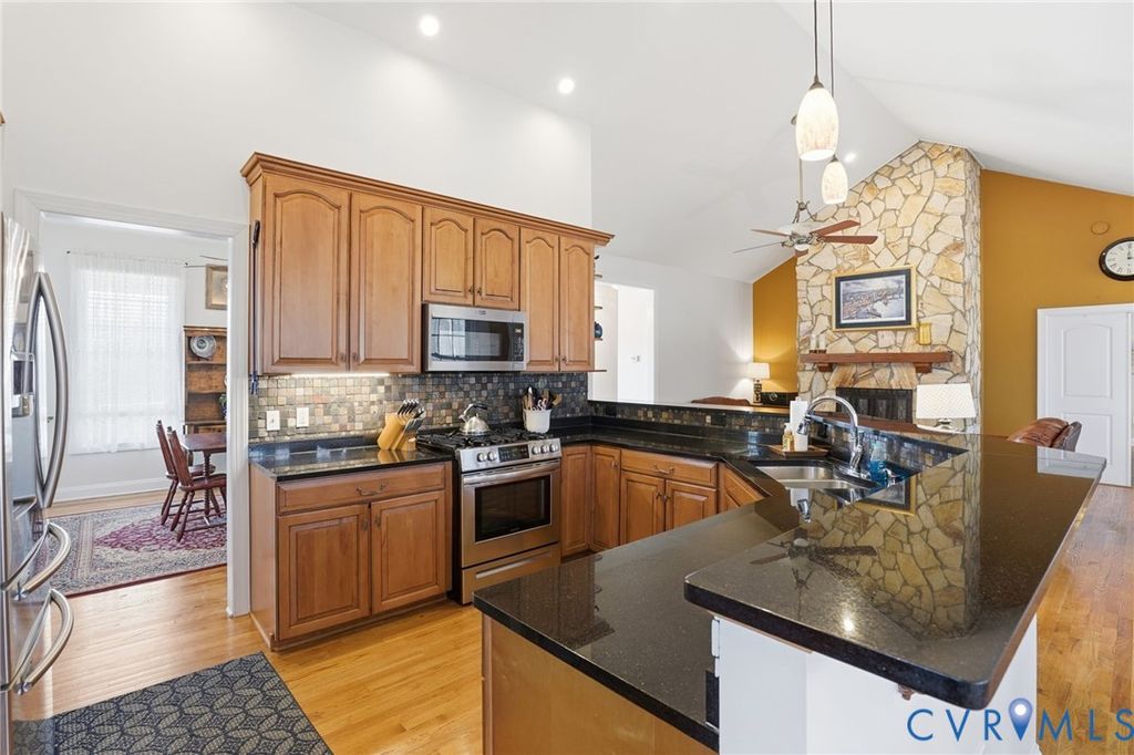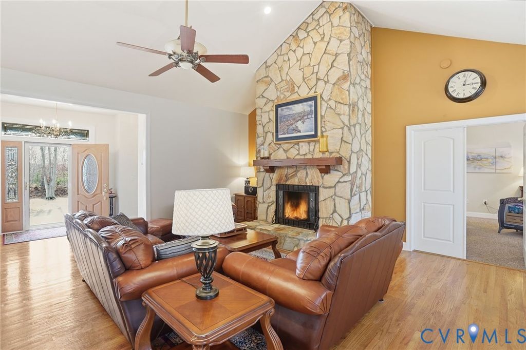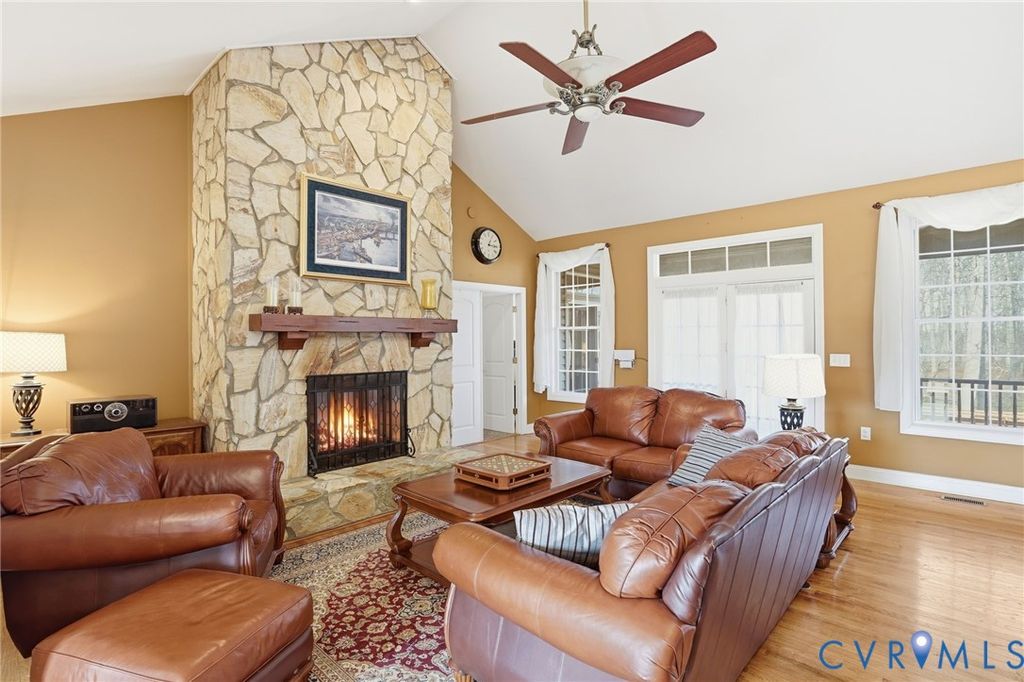 Experience the best of lake living at 25 Tara Woods Drive, a beautifully maintained 4-bedroom, 3-bath home on the highly desired public side of Lake Anna with an assigned boat slip (#42) just minutes away & seasonal water views. Perfectly timed for spring and summer lake season, this immaculate property offers the ideal combination for full-time living, weekend retreats, or a vacation investment property. Upon arrival, the wraparound front porch sets the tone for relaxed lake living. Inside, the home features a bright, open floor plan with vaulted ceilings, hardwood floors, & a striking stone fireplace anchoring the living space. The gourmet kitchen offers abundant cabinetry & opens to the dining and living areas. The main-level primary suite provides convenience and privacy, while additional bedrooms and baths offer flexibility. Off the main living area, a screened porch overlooks the backyard, ideal for outdoor dining or relaxing after a day on the lake.The finished walk-out basement expands the home's versatility with a partial kitchen, bedroom, full bath, and large recreation area, perfect for guests, multi-generational living, or entertaining, with direct access to a covered patio. Outside, enjoy a backyard designed for lake living, complete with fire pit, kayak storage, shed, & space to unwind. The detached 2-car garage features epoxy floors, insulated walls & a commercial-grade lift for exceptional storage. An accessibility ramp adds ease of entry.Located minutes from the assigned boat slip on Lake Anna's public side, this home is built for boating, fishing, paddleboarding, & enjoying lake life. Don't miss a rare opportunity to own a move-in ready Lake Anna home just in time for peak season!