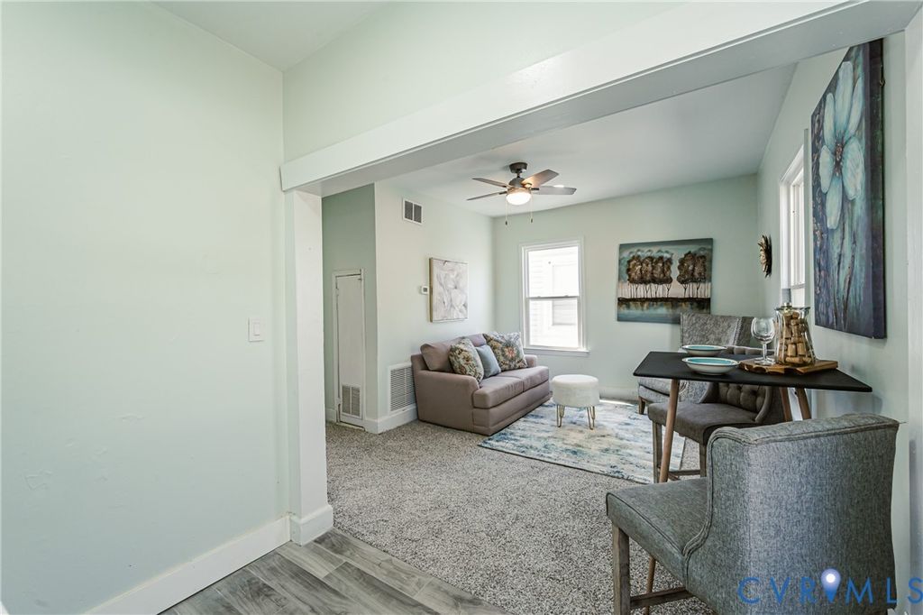 Just listed features a recently renovated duplex in the historic and rapidly developing Interstate 95 corridor of Petersburg, offering a turnkey opportunity for investors or owner-occupants. The property includes a 3-bedroom, 2-bathroom layout with a reliable, long-term tenant in the lower unit paying $1,600/month, while the upper unit is vacant, professionally staged, and move-in ready. Recent upgrades include a new kitchen and bathroom, fresh paint, new fixtures, and a blend of original hardwood floors and new carpeting. With convenient alley parking and a strategic location near the Amtrak regional connection and planned light-rail system, this property is perfectly positioned to benefit from the area's significant population growth. Close to local restaurants schools and shopping