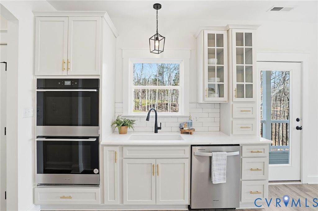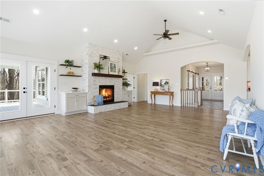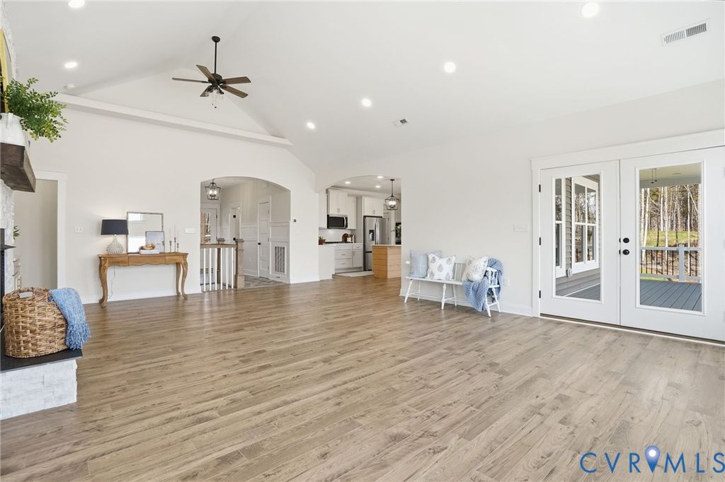 Experience luxury new construction waterfront living in Compass Cove on the private side of Lake Anna. Tucked at the end of a quiet cul-de-sac on a premier point lot with 200+ feet of shoreline, this custom-built retreat offers sweeping panoramic lake views and exceptional privacy rarely found in newer waterfront communities. Built by BT Construction Company Inc., this Craftsman-style home features over 4,300 square feet across two finished levels with 4 bedrooms, 3.5 baths, and a 3-car garage with studio above. High-end finishes include LVP flooring, stainless steel appliances, composite decking, Superior Wall foundation, and black gutters and downspouts for low-maintenance living. The open-concept main level showcases expansive windows capturing breathtaking water views, while the walk-out lower level offers additional entertaining space and a second primary suite ideal for guests. A single-slip boathouse is approved and scheduled for completion by the end of April, adding immediate value and direct lake access. This protected cove is a hidden gem known for calm water, excellent fishing, and seasonal waterfowl activity. The property offers three potential short-term rental or guest spaces: main level, finished basement, and private studio above the garage, each with premium lake views. Ideal for investors, multi-generational living, or a luxury second home with income potential. Located in one of Lake Anna's newest waterfront communities, this home combines new construction, expansive shoreline, future boathouse, and stunning views in a peaceful setting built for lake living.