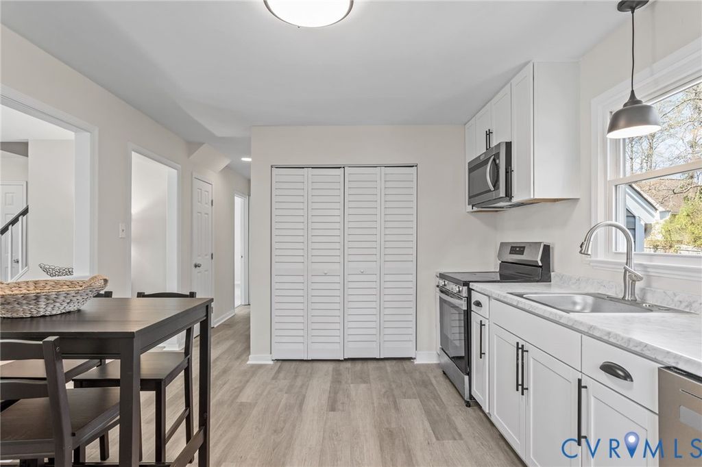 Welcome to this better than new 4 bedroom Cape Cod in Move-In condition! New Paint throughout including deck, new LVT flooring, New carpeting, New Lighting, Updated Bathrooms, Updated Kitchen AND such a great floor plan! This home is beaming with light and the 2 bedrooms and bath on the first floor and 2 bedrooms and bath on the second floor is so versatile! The great rom and kitchen are open and there is a large utility room in the kitchen area. Added to this are great large closets, an oversized deck and super sized cul-de-sac lot ! Move-in ready and Immediate Occupancy!