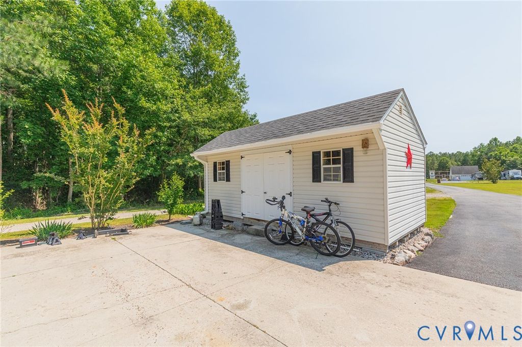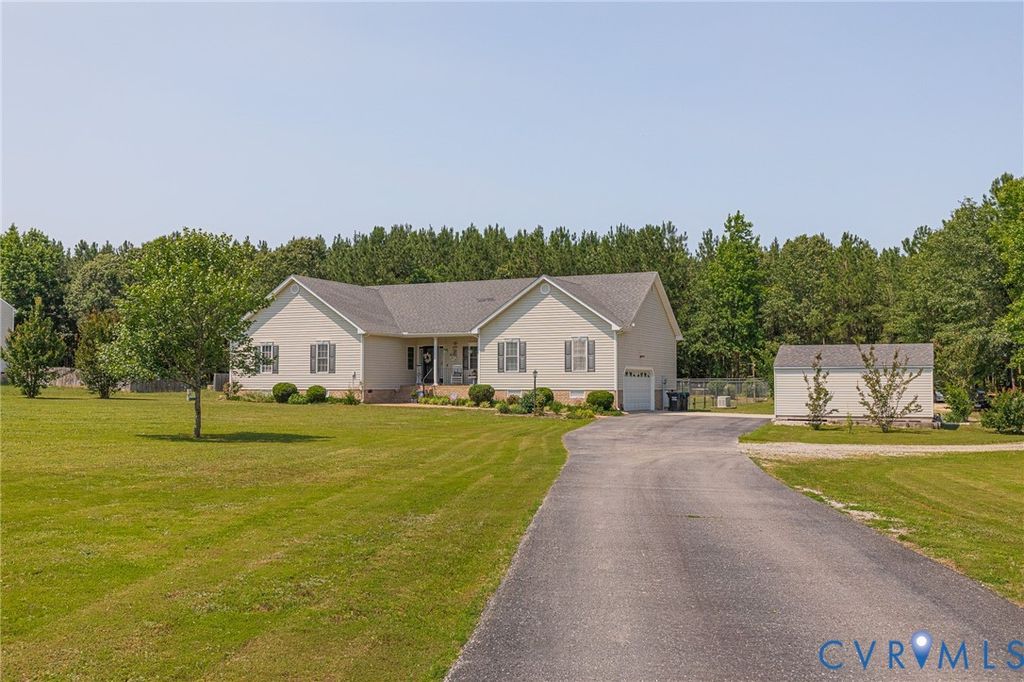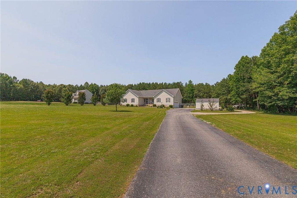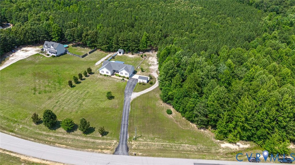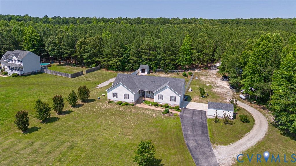 NEED MORE ROOM to spread out & call your own? 7.66 ACRES, mostly wooded, this property features so much more w/no HOA! Huge flat front yard, paved driveway from a quiet country road leads to lots of outdoor features that make this property special. Lg. detached storage shed w/ double doors (Apx. 10'x12'), Pole Barn (Apx. 24'x20') for equipment storage - very tall w/a metal roof! Have a Camper or RV? Already has the spot for it w/ 50 Amp service! Whole house generator kicks on automatically will keep you comfortable during a power outage. Large area of the rear yard is fenced-in, great for pets. 17' diam. above-ground pool conveys. Large (Apx. 24'x15.5') Deck is covered by a metal roof allowing you to sit outside, stay dry and enjoy listening to a steady rain. Aggregate sidewalk to the front porch (also masonry/aggregate) so you avoid maintaining a wood porch. Enter the front door to a welcoming tiled foyer & formal dining room w/ wide hardwood flooring, chair rail and crown moulding. Updated, modern lighting throughout the home. Family room has plenty of room for a sectional couch, updated extra large ceiling fan, gas log fireplace, LVP flooring and the door to the deck; also open to the kitchen. The kitchen has had many updates within the last 3 years - Quartz countertops, ceramic glass backsplash, LVP flooring, Whirlpool stainless steel appliances. Huge eat-in section of the kitchen with a bay window, corner pantry and still room to have a home office in this area! Utility Room/Laundry is past the kitchen and leads to the side-load garage (Apx. 24'x23') with a VERY high ceiling - lots of potential storage up there! At the opposite end of the house you will find 4 carpeted bedrooms - a large primary en suite w/ dual vanity, walk-in closet and a tub w/ ceramic tile walls. The house rounds out with 3 more bedrooms and a hall bathroom with a tub/shower. 20 min. to Ft. Gregg-Adams Exit on 295. Schedule your showing soon so you can see this beauty in person! Although no known defects, seller prefers to sell "as is".