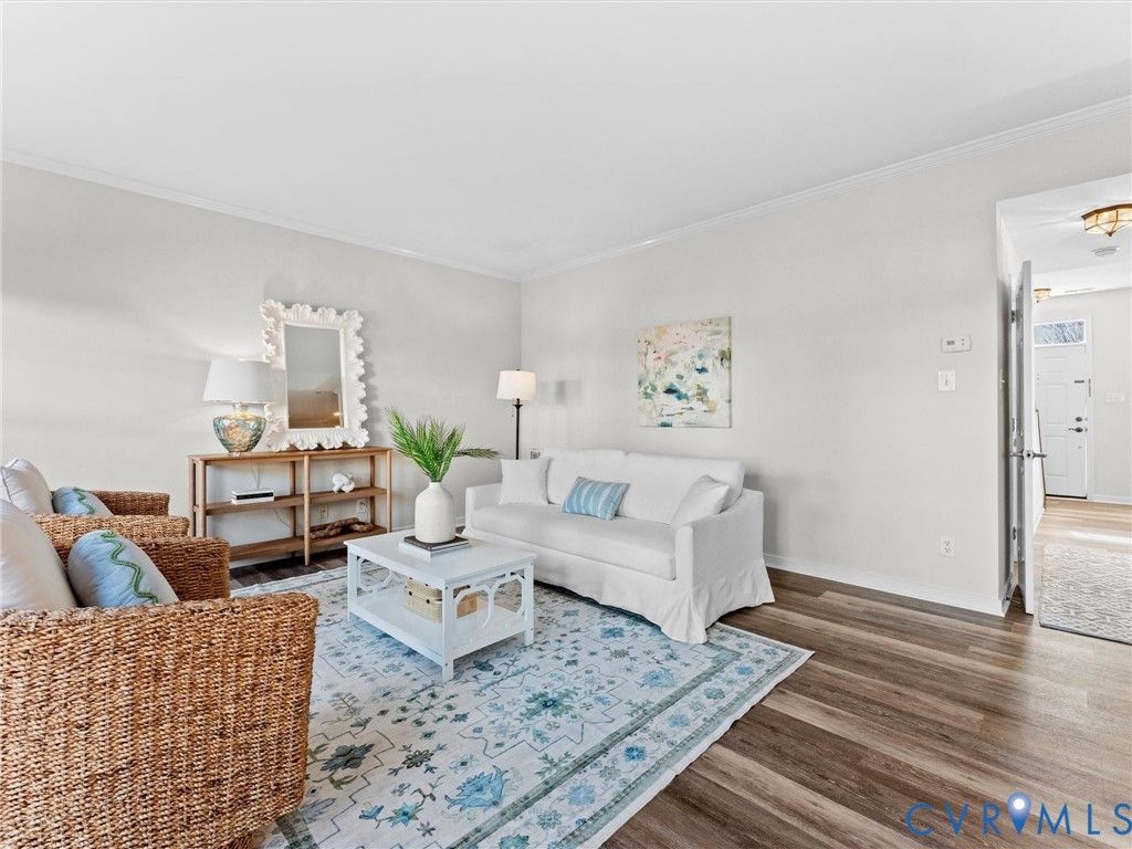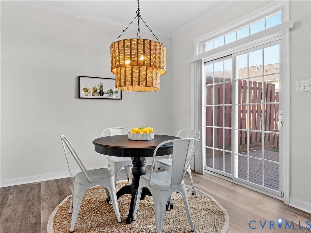 BRICK TOWNHOME WITHIN MINUTES TO SHORT PUMP! Open & Airy Floorplan w/Tons of Natural Light! ENTIRE INTERIOR FRESHLY PAINTED & BRAND NEW FLOORING THROUGHOUT. Formal Dining Room Features Bay Window, Crown Molding & New Stylish Chandelier. Eat In Kitchen Boasts Recessed Lighting, New Breakfast Nook Chandelier, Pantry, Countertop Bar Area & Sliding Glass Doors Leading to Private Deck Making Entertaining Easy. Family Room Offers Crown Molding & Unique Transom Windows. Spacious Primary Bedroom with Brand New Carpet, Double Doors, Tray Ceiling, Dual Walk-In Closets, and Ensuite Bath. Primary Bath Showcases Modern Double Vanity, Tile Floor, Walk In Shower & Soaker Tub. Second Floor Has Two More Bedrooms w/Large Closets & Light/Fans. Second Full Bath Offers Vanity, Tile Floor & Tub/Shower. Privacy Fence Surrounds Backyard. ONE CAR ATTACHED GARAGE! Neighborhood Pool and Common Areas to Enjoy! Minutes to Innsbrook, Interstates 295 & 64, Short Pump Town Center As Well as Tons of Shopping, Dining, Recreation & More!