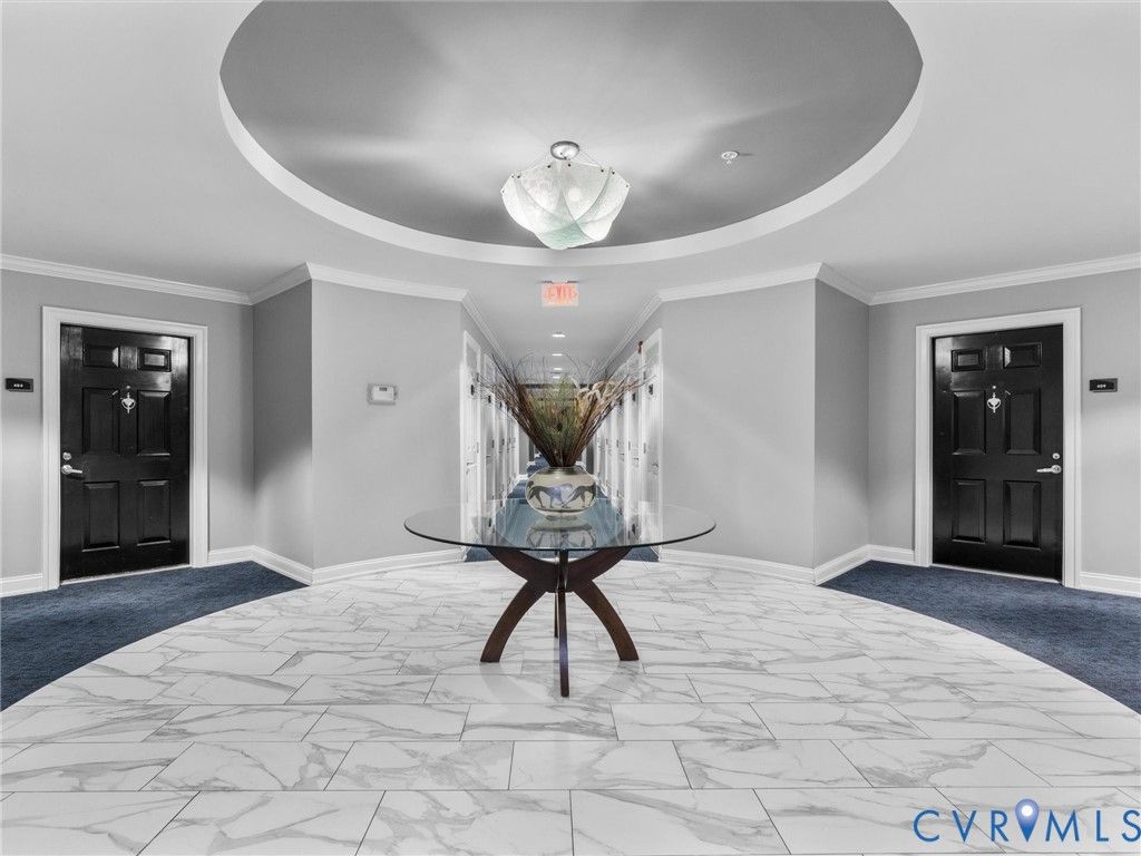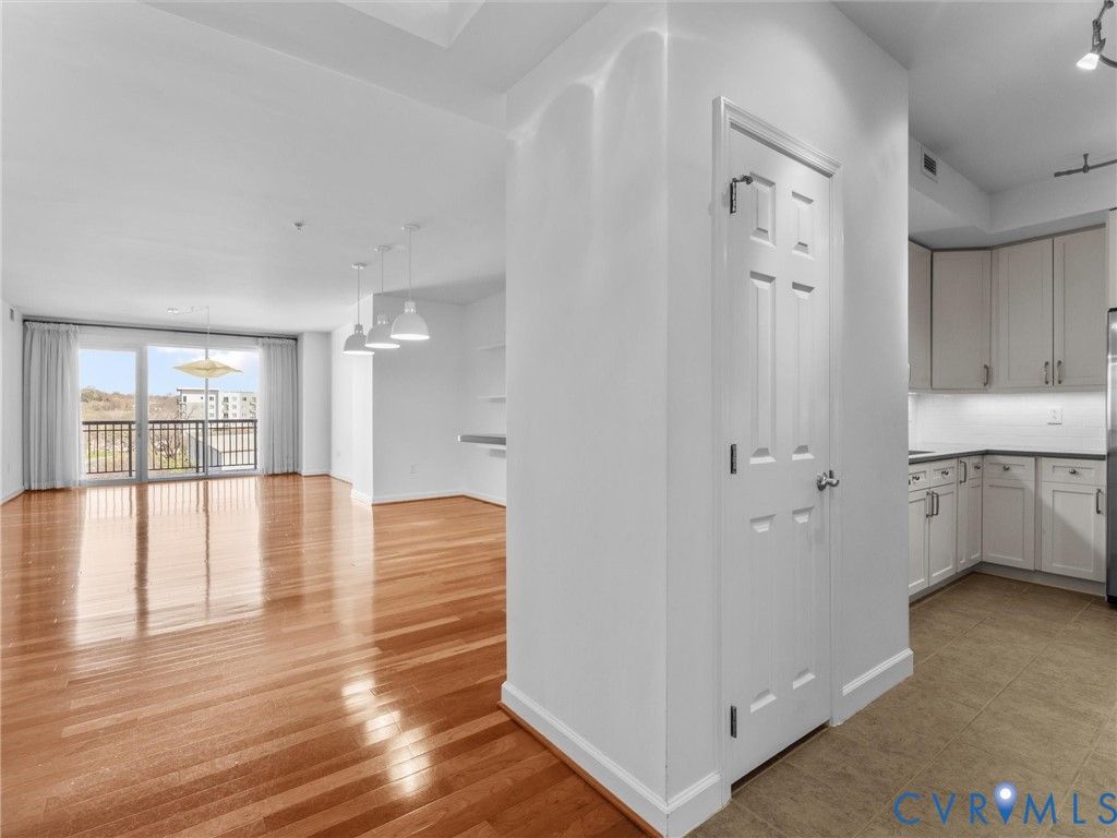 Desirable Sky Line Condominium at Rocketts Landing on the banks of the James River with dazzling views of the Richmond skyline! Located less than 10 minutes from Richmond International Airport with quick access to I-64, I-95, and I-195, this desirable unit offers incredible views of the river, skyline, Church Hill, and Fulton Hill. This move-in ready, 2 bedroom, 2 bath condo features an open-concept layout connecting the living, dining, and kitchen areas, creating a bright and functional living space designed for both everyday living and entertaining. The kitchen features white cabinetry, stainless steel appliances with gas cooking, and flows seamlessly into the main living areas. A covered private balcony off the living room offers the perfect setting for grilling and entertaining. The primary suite includes two walk-in closets, skyline views, an adjoining linen closet, and a large en suite bath with dual vanities, a tile surround shower, soaking tub, and water closet. The second bedroom also enjoys skyline views, while an additional rec space provides flexibility for a home office, craft area, or additional lounge. Additional highlights include secured covered parking, a same-floor storage unit, and maintenance-free living in a secured-access luxury building. Sky Line offers a building generator, two Otis elevators, and two expansive terraces overlooking the James River, the Capital Trail, and downtown Richmond. Residents enjoy exceptional amenities including a 24-hour fitness center, two pools, picnic area, full-service marina, volleyball courts, and waterfront dining, along with immediate access to the Virginia Capital Trail for walking and biking.