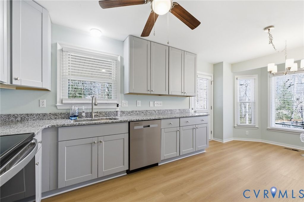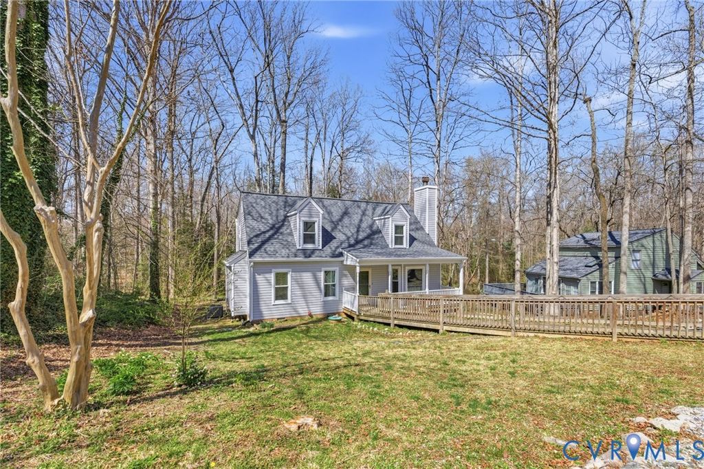 Charming and beautifully updated Cape Cod-style home in Chester offering 4 bedrooms, 2 full bathrooms, and 1,652 square feet of comfortable living space. Situated on a generous ½-acre lot. Built in 1988, this home has been recently refreshed with fresh paint, new flooring throughout (LVP and carpet), a new roof, new siding, new gutters, new heat pump and a renovated kitchen featuring new cabinets, granite countertops, and stainless steel appliances. The main level includes a spacious living room with a cozy gas log fireplace, an eat-in kitchen, two well-sized bedrooms, and a full bathroom that has been thoughtfully updated to be handicap accessible. Just off the kitchen, you'll find a large deck with both covered and uncovered sections. Upstairs offers two additional bedrooms with carpet and another full bathroom, providing plenty of space and flexibility. The home also features a downstairs utility closet with a washer and dryer. Ceiling fans throughout, central A/C and heat, gas hot water. The refrigerator, washer, and dryer are for convenience only. No Pets. No Housing Choice Vouchers per VA Code 36-96.2. Rent includes a resident benefit package. Ask for more details.