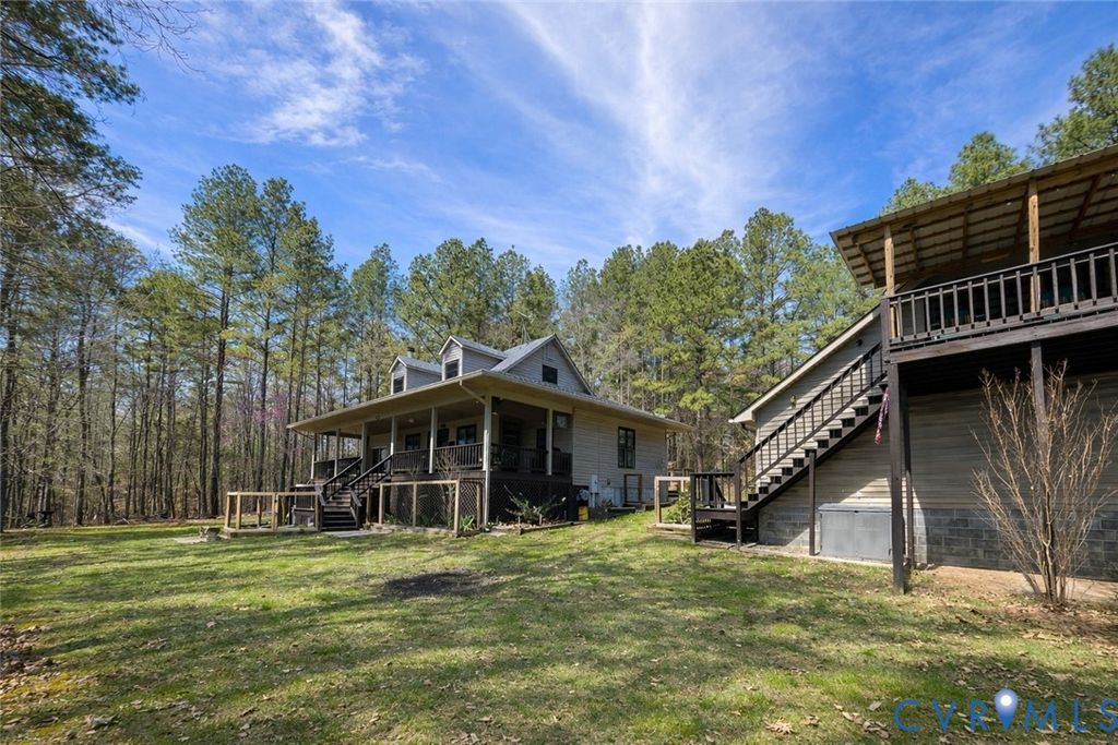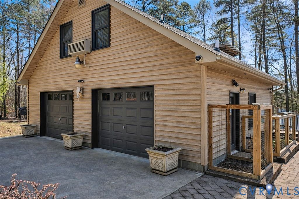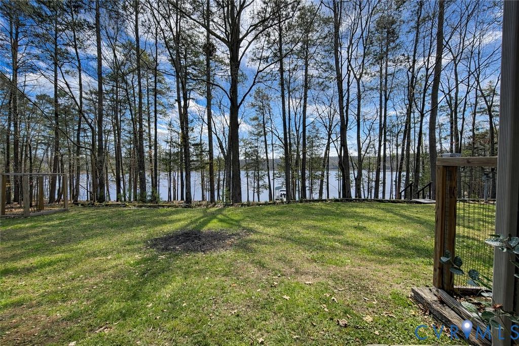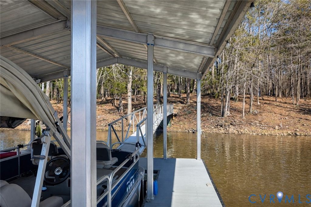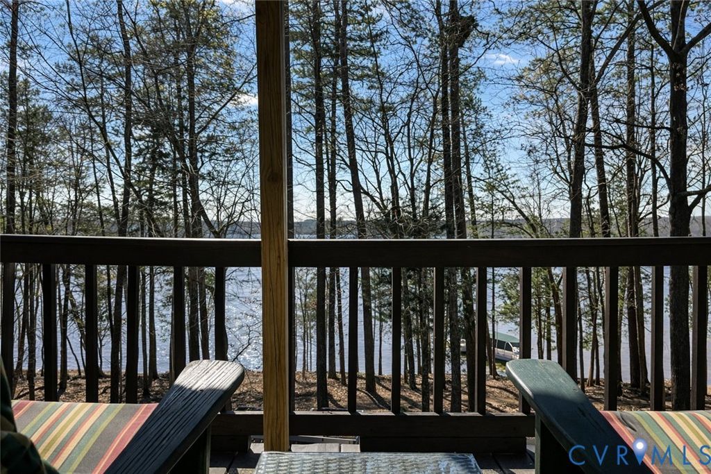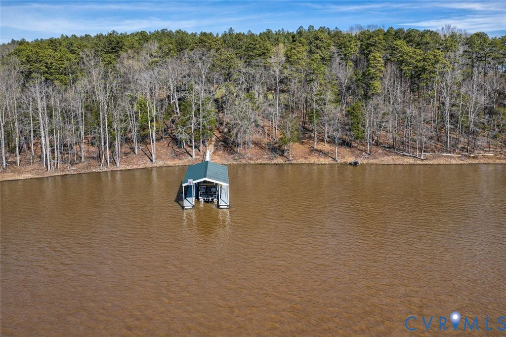One of a spectacular kind!! This property HAS IT ALL! Secluded Wide water views on the highly desirable Bluestone Creek. 27 acres of unrestricted rolling hills and mature trees. Meticulously maintained 3 bed/3 bath home. Highly rated AirBnB apartment over the garage. Long private drive winds through mature trees and opens to a setting that feels both expansive and secluded. Property includes two parcels: a lot within Sandie Point Association and a separate 27-acre tract zoned ag and unrestricted, offering flexibility for recreation, relaxation, or investment. The land itself is a standout"”gently rolling, beautifully wooded, and thoughtfully improved with a fenced garden, in-ground irrigation, and a well-built chicken coop with water and electric. The home has been carefully updated and maintained, new roof (2026), new windows (2022), and heat pumps (2021). Inside, the layout is comfortable and functional, with three bedrooms"”each with its own ensuite bath. Living room features a wood-burning fireplace, while the added sunroom with reclaimed wood has warmth and character. Kitchen is fully refreshed with quartz countertops and all new appliances, and the entire home is supported by a tankless water heater, whole-house filtration, and water softener. It doesn't stop there! The outdoor living shines with a large deck captures wide, peaceful water views, and a new dock with solar-powered lift makes lake access effortless. Above the detached two-car garage, a fully equipped apartment"”known as "Cozy Getaway Efficiency on Buggs Island/Kerr Lake""”offers immediate income potential. With a guest-favorite rating, it includes a full kitchen, bedroom, bath, and its own lakeview deck. The garage has a concrete floor, bathroom, and wood stove. Fiber internet to be installed.