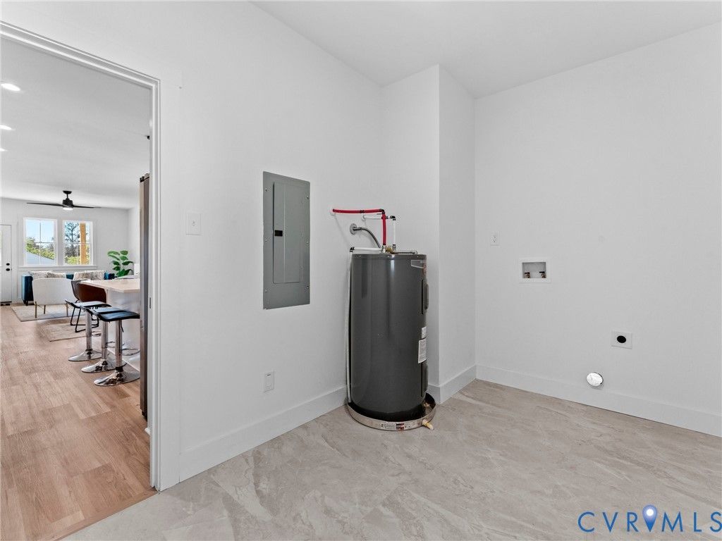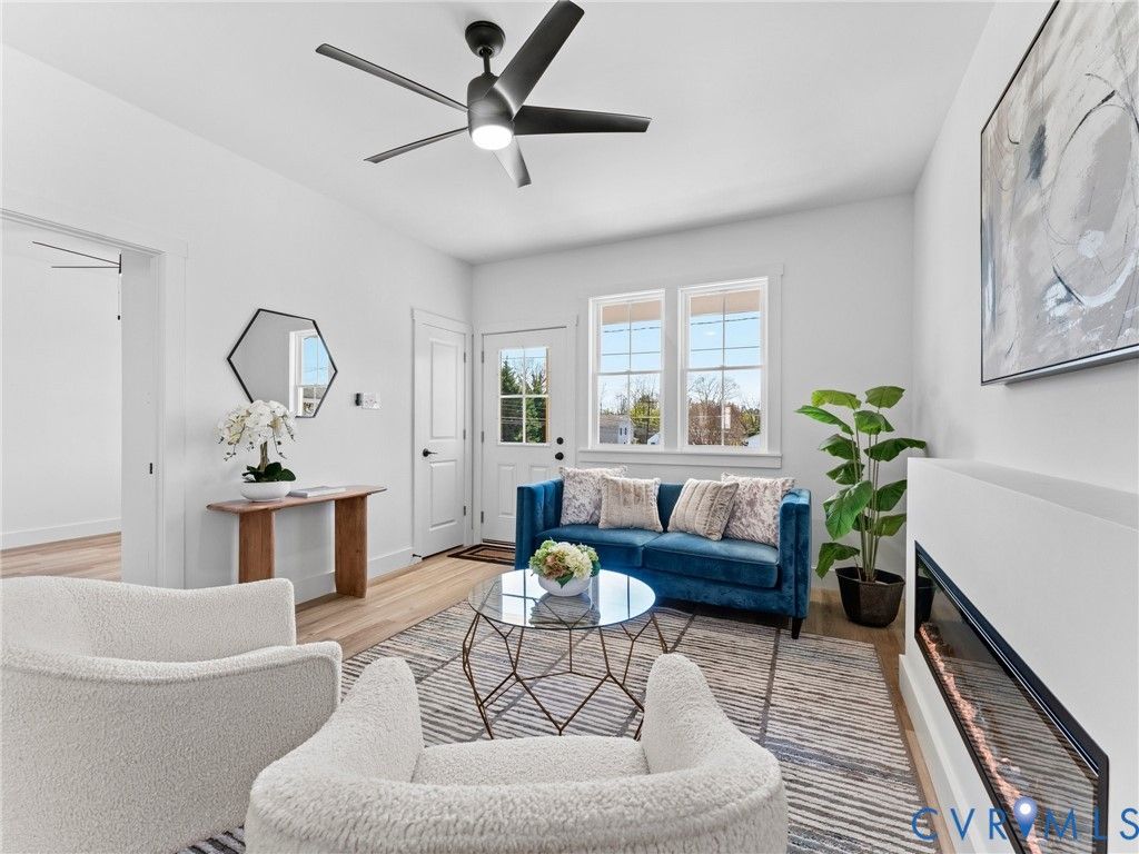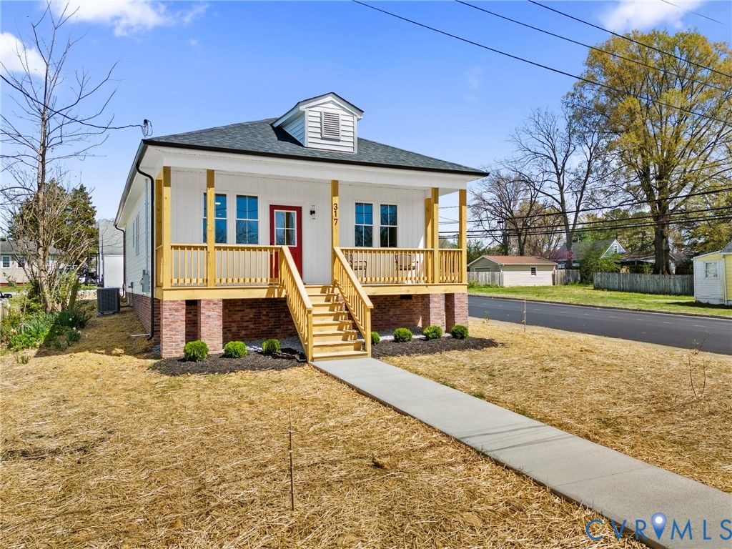 Welcome to 317 S 19th Avenue, a beautifully designed new construction bungalow situated on a desirable corner lot in Hopewell, VA. This charming home offers a welcoming full front porch, perfect for relaxing mornings or unwinding in the evening. Step inside to an open and airy layout featuring LVP flooring throughout the main living areas and a cozy electric fireplace that adds warmth and character to the living room. The kitchen is both stylish and functional, showcasing quartz countertops, a subway tile backsplash, stainless steel appliances with a range hood, soft-close cabinetry, and an oversized island with bar seating and additional storage. Just off the main living space, you'll find two well-appointed bedrooms - each with ceiling fans - ideal for guests, family, or a home office setup. Toward the rear of the home, a convenient mudroom provides separation for laundry with washer/dryer hookups, plus direct access to the rear deck and backyard. The driveway leads directly to the back entrance, offering easy everyday access. The private primary suite is tucked away near the rear of the home, creating a peaceful retreat. Enjoy dual closets, a double vanity, and a beautifully tiled walk-in shower complete with a niche. With 3 bedrooms, 2 full baths, and everything brand new, this home offers low-maintenance living with modern style and thoughtful design throughout. Don't miss your chance to own this move-in-ready gem!