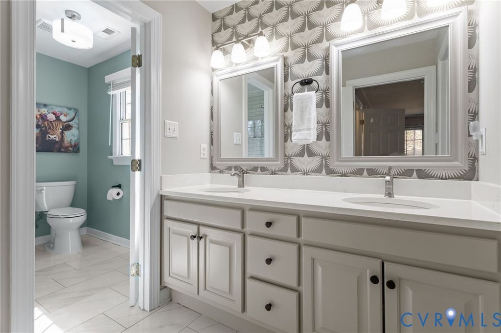Welcome to 24221 Pear Orchard Rd - an inviting, private retreat set on 5.83 acres in the heart of Moseley. Tucked well back from the road, this peaceful property offers quiet surroundings, new fencing ideal for pets or livestock, and beautifully refreshed outdoor spaces including freshly painted porches, decking, and a relaxing 3-season screened-in porch. Inside, fresh neutral paint, new light and plumbing fixtures, glossy hardwood floors, and wonderful traffic flow create a bright, cohesive feel throughout. The main level welcomes you through the foyer into a formal dining room, flowing seamlessly into the open, sun-filled kitchen with granite countertops, stainless steel appliances (including a new dishwasher and over-the-oven microwave), and recently-refreshed cabinets. The kitchen opens to a spacious family room anchored by a cozy gas fireplace - perfect for everyday living and entertaining alike. Upstairs, the thoughtfully designed layout includes a generous primary suite with an updated ensuite bath featuring a double vanity, walk-in closet, and a separate glass-enclosed shower and toilet area. An adjoining finished space off the primary - complete with plumbing and electricity - offers flexibility as a secondary laundry room, office, workout room, or private retreat. Additional bedrooms include one with an ensuite bath, two more bedrooms served by a shared bath with double vanity, one of which is a spacious room over the garage. A massive walk-up attic with lighting provides exceptional storage or future expansion potential. Additional highlights include updated bathrooms throughout, a new water filtration and softening system added in 2025, newer roof installed in 2023, and efficient two-zone heating and cooling. Currently located in the Cosby District, this home is zoned for the soon-to-open Western Area elementary and high schools and the new Deep Creek Middle School. Offering privacy, space, and modern updates, this home delivers the perfect blend of comfort, functionality, and serenity.