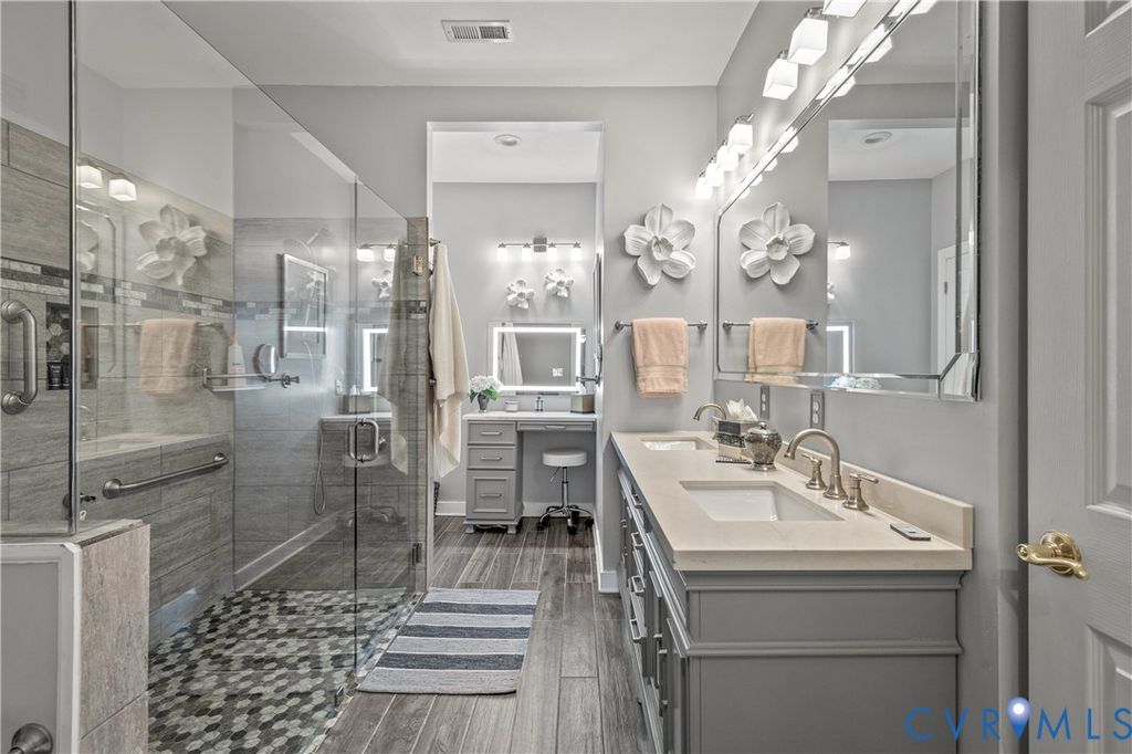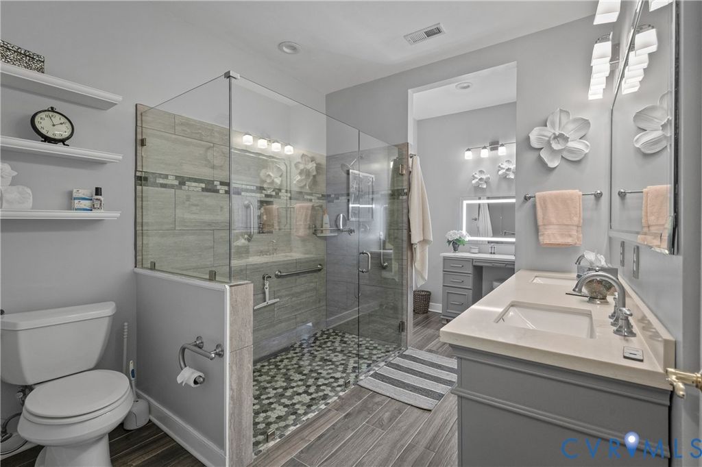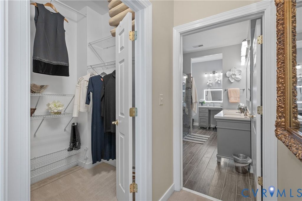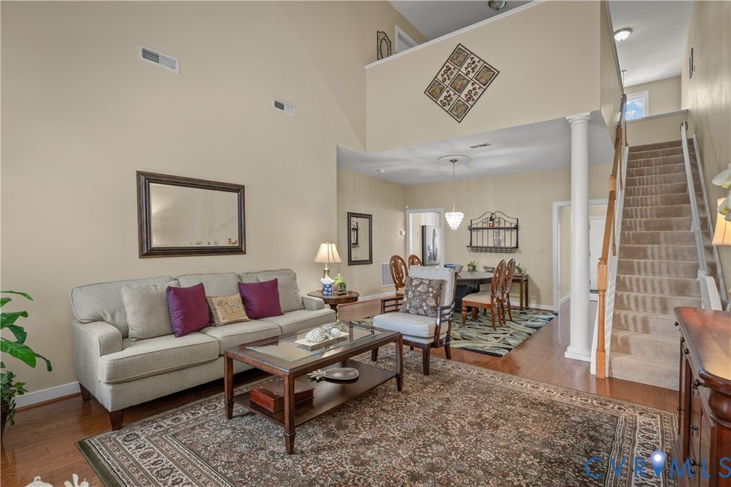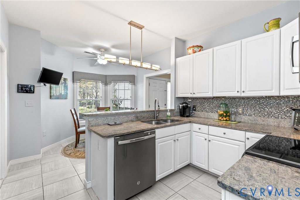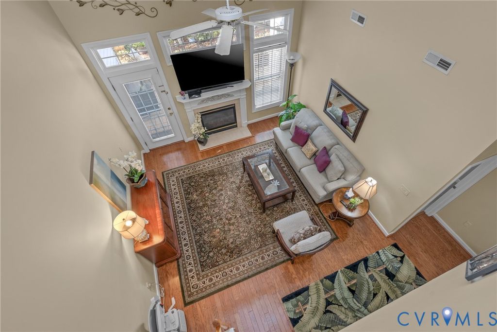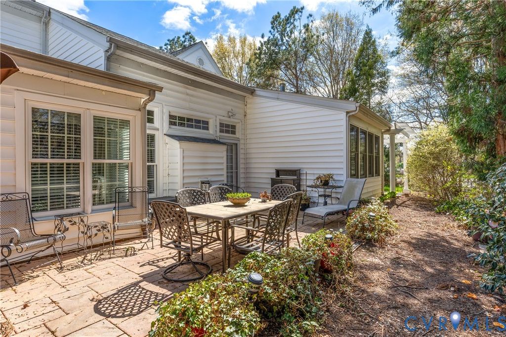 Welcome to easy, low-maintenance living in The Pointe at Bellgrade, a desirable 55+ community in the heart of Midlothian. Ideally located just off Huguenot Road, this beautifully maintained two-story condominium offers 3 bedrooms, 2.5 baths, and nearly 2,000 square feet of thoughtfully designed space within walking distance to shopping, dining, and everyday conveniences. A covered front porch welcomes you into a bright, open foyer with soaring ceilings and a seamless flow into the main living areas. The eat-in kitchen features granite countertops, stainless and black appliances, tile backsplash, breakfast bar, and ample cabinetry with under-cabinet lighting. Just off the kitchen, the spacious laundry room includes built-in cabinets, folding space, and direct access to the attached one-car garage. The great room is the centerpiece of the home, showcasing cathedral ceilings, hardwood floors, a gas fireplace with marble surround, and abundant natural light from transom windows and rear access to the private paver patio. The open dining area connects effortlessly, creating an ideal space for entertaining. The first-floor primary suite offers comfort and convenience with a large walk-in closet and a luxurious en-suite bath featuring a double vanity, makeup station, smart mirrors, and a beautifully tiled walk-in shower. Upstairs, a loft overlooks the foyer and provides flexible space for an office or sitting area. Two additional bedrooms share a well-appointed Jack-and-Jill bath with double vanity and tiled walk-in shower. Enjoy maintenance-free living with community amenities including exterior maintenance, landscaping, snow and trash removal, plus access to walking paths and scenic common areas"”all just minutes from everything Midlothian has to offer.