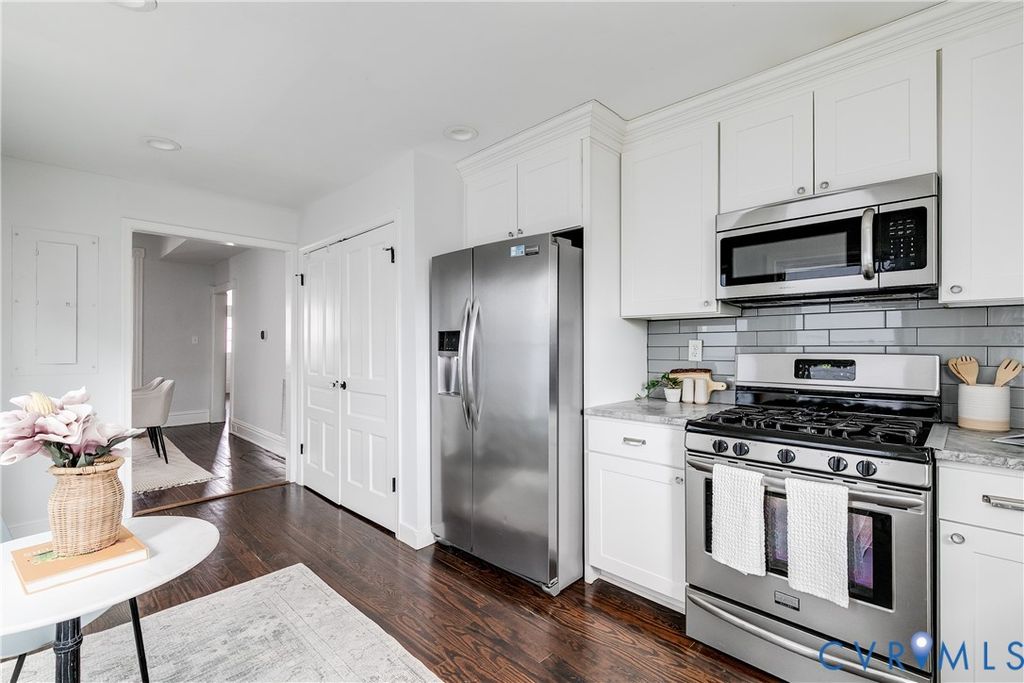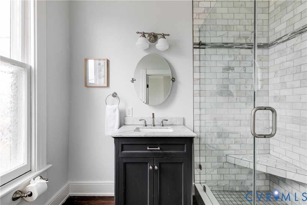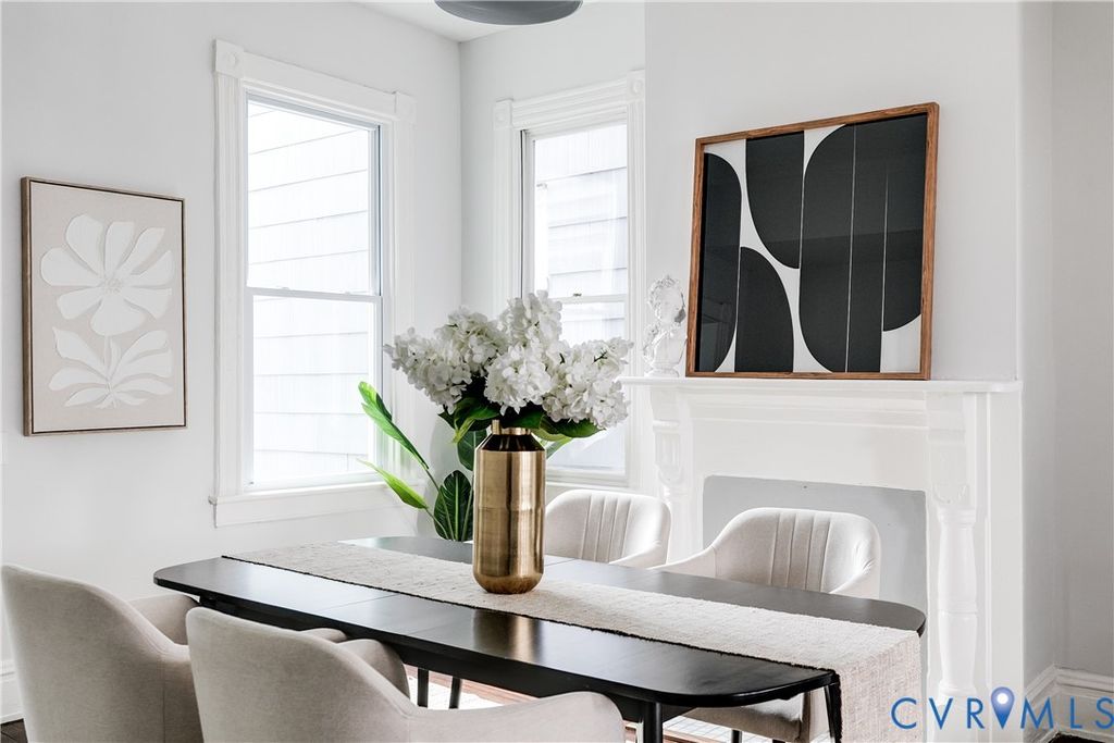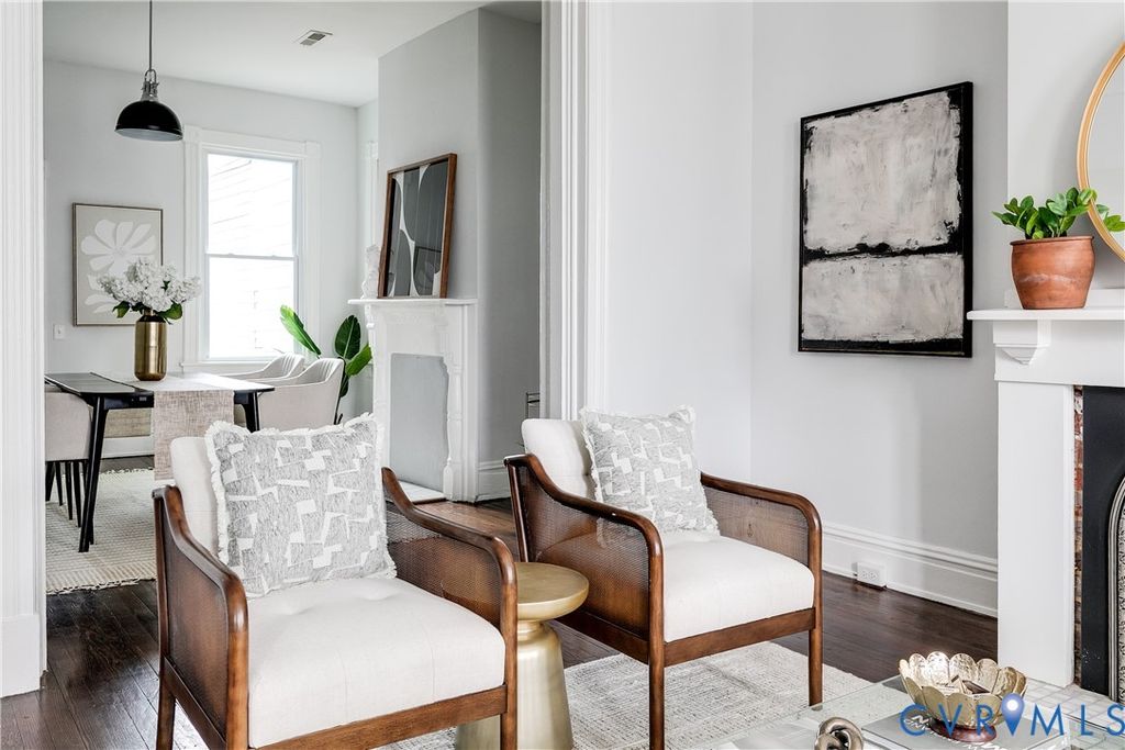 Welcome home to 917 N 27th St, a charming residence in the heart of Church Hill North. A notable example of Second Empire architecture, this home is proudly listed on the historic registry. The home's striking slate roof features decorative patterned accents along the front elevation and porch, adding to its timeless curb appeal. Relax on the inviting front porch with a beautifully restored beadboard ceiling, or enjoy the stunning bay window with floor-to-ceiling glass that fills the home with natural light. Inside, you'll find soaring 10-foot ceilings on both levels, heart of pine flooring, blending historic character with everyday comfort. The spacious living room offers floor-to-ceiling windows, a classic mantle, and a large cased opening that flows seamlessly into the generous dining room"”perfect for entertaining. The kitchen features white shaker-style cabinetry, sleek satin-finish granite countertops, a tile backsplash, gas cooking, and a cozy eat-in area. Located just minutes from downtown Richmond, this home provides easy access to local dining, parks, and all that the vibrant Church Hill community has to offer. A rare blend of history, charm, and modern livability in one of the city's most sought-after neighborhoods.