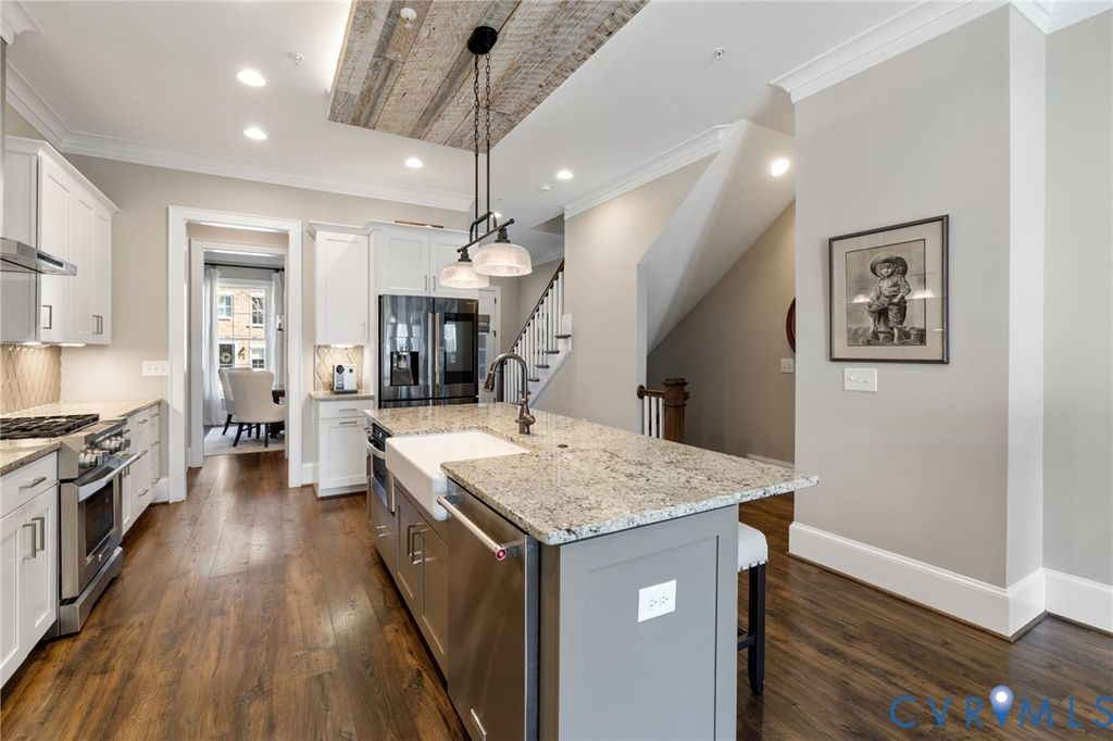 Stunning luxury townhome in the highly sought-after Greengate community, offering over 3,000 square feet of thoughtfully designed living space. This 4-bedroom home features an open-concept main level with 10-foot ceilings, crown molding, and seamless flow between the kitchen, dining, and living areas"”perfect for everyday living and entertaining. Each bedroom offers its own en suite bath, providing comfort and privacy for owners and guests alike. The top level features a covered rooftop terrace with a brick fireplace and rare views overlooking green space"”not neighboring units"”creating the perfect setting for year-round outdoor living. Additional highlights include a 2-car attached garage, walk-out lower level, flexible living space, and modern finishes throughout. Ideally located in the heart of Greengate with walkable access to dining, shopping, and fitness, just minutes from Short Pump.