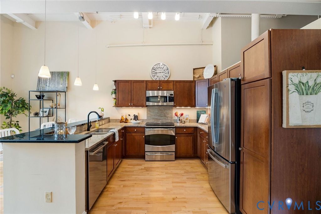 Bright, light-filled condo in the heart of Church Hill, located in one of the most distinctive buildings"”historic Nolde Condominiums. This beautifully updated one-bedroom home offers stunning Asian pear trees and city views. The thoughtfully renovated bathroom features a spacious walk-in shower and a stylish vanity. The kitchen is both functional and elegant, equipped with newer appliances including a refrigerator, GE Monogram induction cooktop and oven, Bosch dishwasher, and gleaming granite countertops with matching backsplash. A convenient dining bar adds to the space's charm. Additional highlights include a well maintained, newer HVAC (2015), designer lighting throughout, and fresh paint, making this home truly move-in ready. Wonderful on-site amenities include controlled access entry, enormous fitness center, Owners lounge with WiFi, theater w/wetbar and a walled, 4-season courtyard w/ gas grill, picnic and lounging areas and a balcony for outdoor dining. Maytag stack washer/dryer, prime & dedicated, GATED GARAGE parking space & room-size storage convey. Charming neighborhood, with walk-to restaurants, bakeries, parks and all the city's amenities. Super close to MCV/VCU & downtown RVA. Pets welcome! This one-of-a-kind gem is a must see! Condo complex is VA Approved!