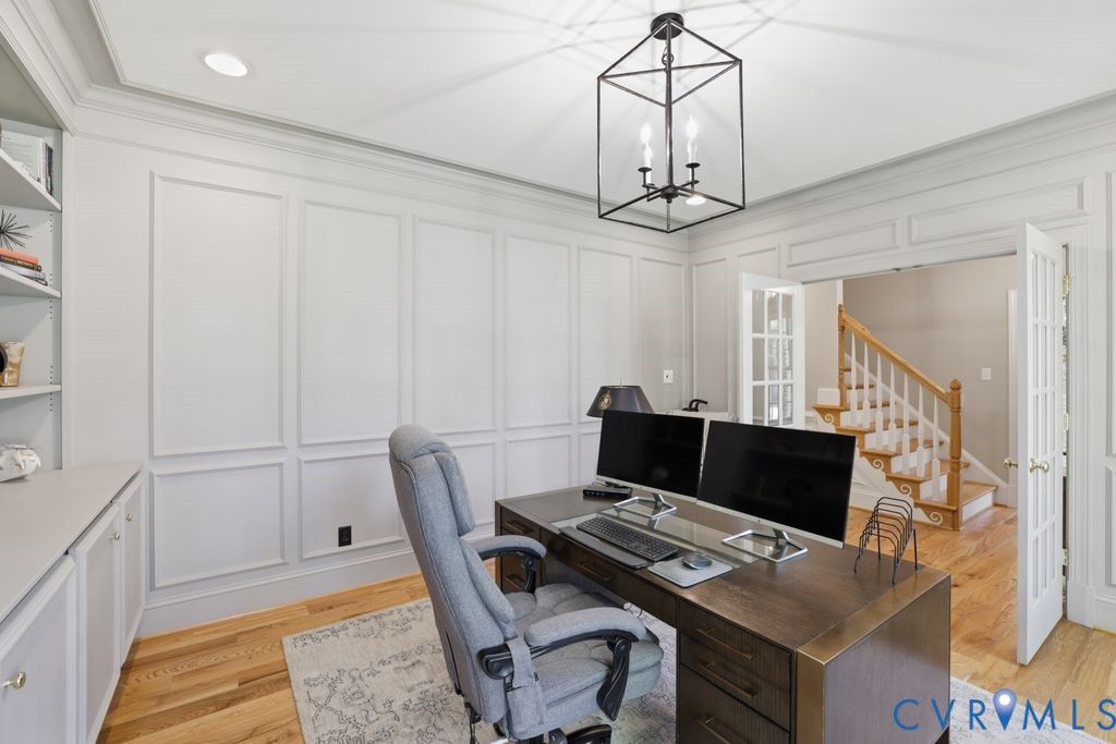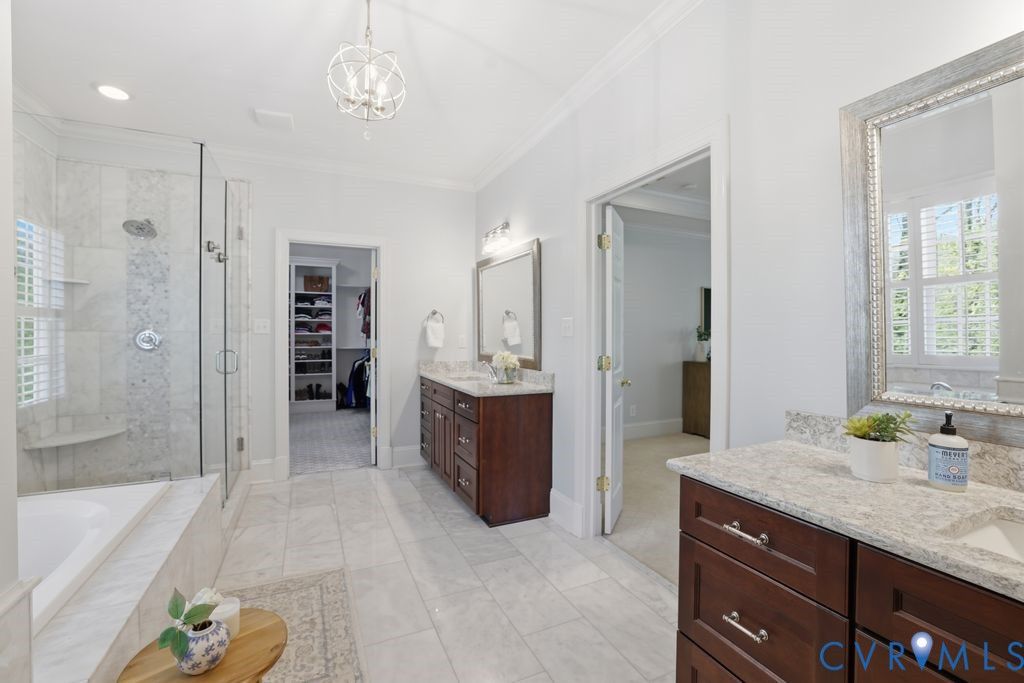 Welcome to this beautifully appointed 2015 custom-built home, offering exceptional space, thoughtful design, and elegant finishes throughout. The main level features an inviting foyer, a formal dining room with hardwood floors, exquisite moldings, and a stunning chandelier, along with a private office/study complete with built-ins and classic detailing. The spacious family room serves as the heart of the home, showcasing coffered ceilings, hardwood floors, custom built-ins, and a striking brick fireplace. The eat-in kitchen is perfect for gathering, featuring hardwood floors, a large island, spacious pantry/butler's pantry, SS appliances, and ample dining space. Step outside to enjoy the screened-in porch with overhead lighting, a ceiling fan, and an outdoor TV"”ideal for relaxing or watching the game on a beautiful evening. Upstairs, the expansive primary suite offers a tray ceiling, elegant moldings, two walk-in closets, and a private en-suite bath complete with a walk-in shower, dual vanity, and soaking tub. Three additional generously sized bedrooms, each with crown molding and access to bathrooms, provide comfort and convenience for family or guests. The finished basement is ideal for entertaining or multi-generational living, featuring a large recreation room with a kitchenette, a pool/game area, an additional living space with a fireplace and built-ins, and a fifth bedroom with an attached full bath. Step outside to the covered aggregate patio, offering another inviting outdoor living space. This home beautifully combines timeless elegance with functional living, making it perfect for both everyday life and entertaining. One look and I know you will fall in love!