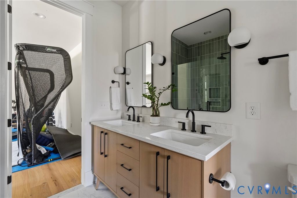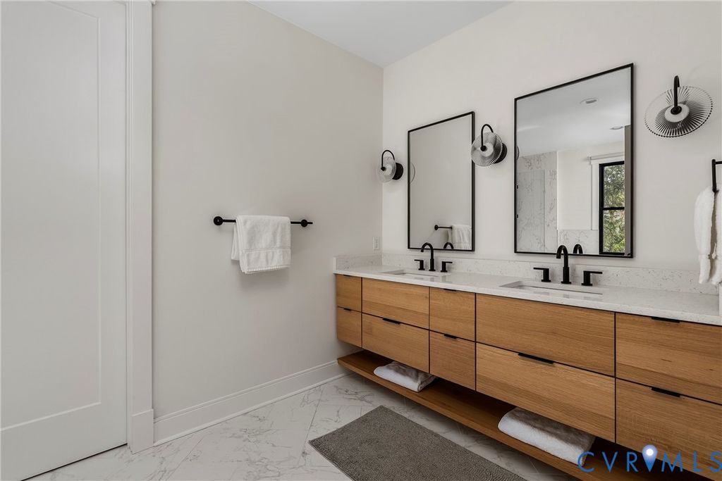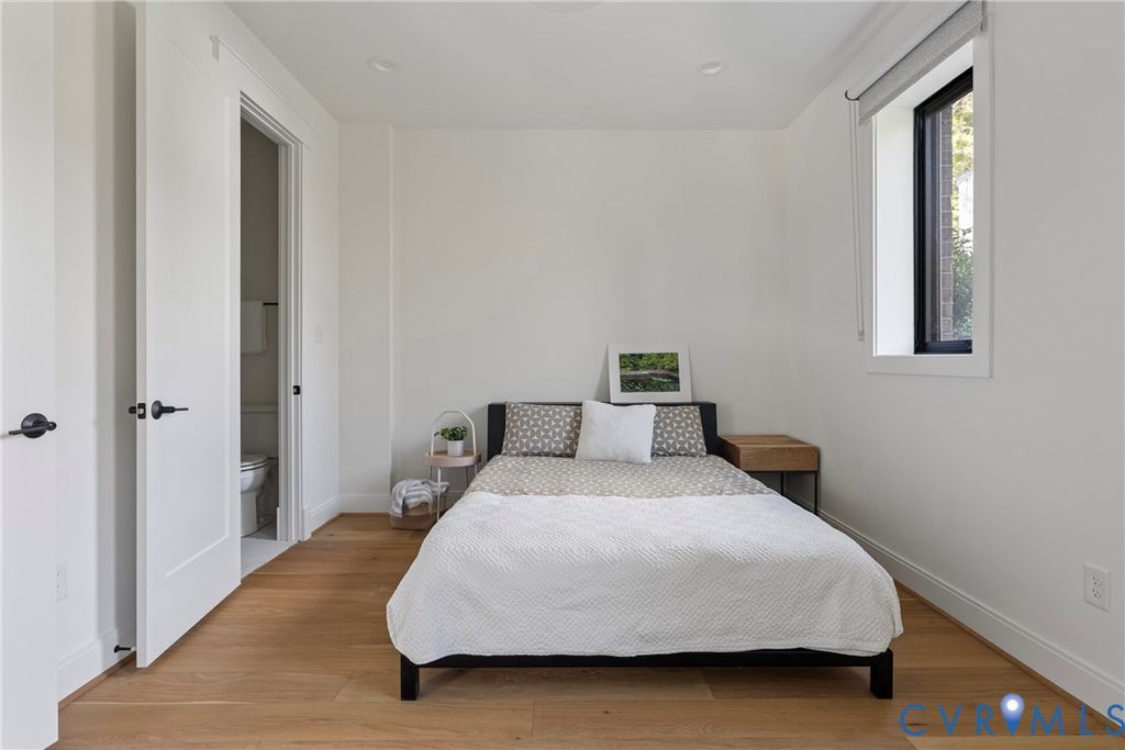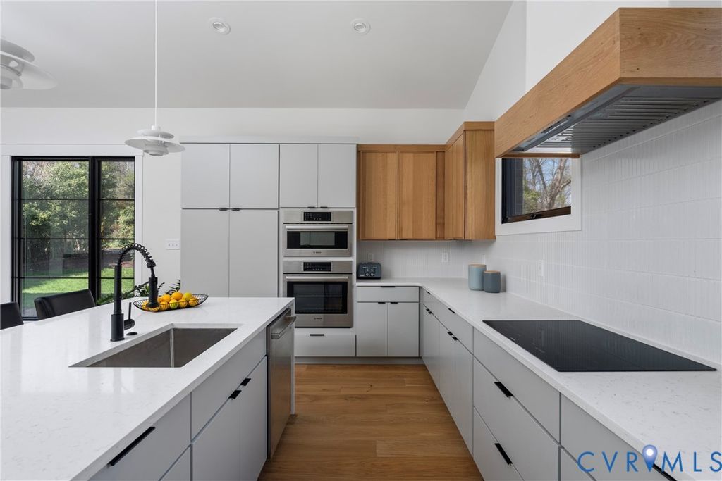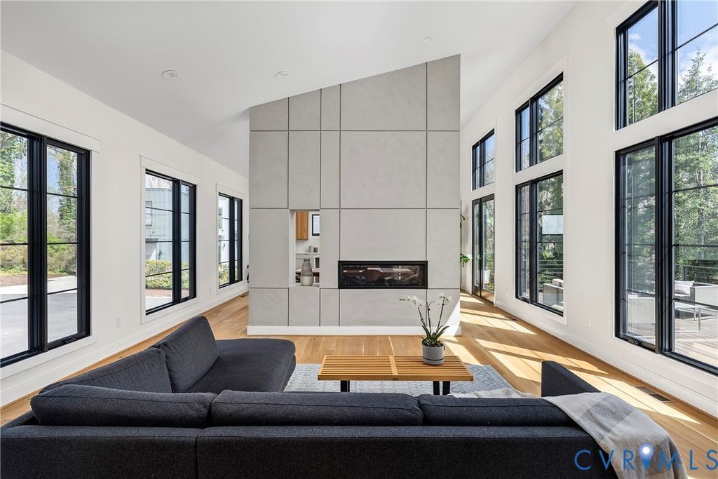 Architecturally striking and filled with natural light, this modern retreat sits just steps from Pony Pasture along the James River on nearly an acre of wooded privacy. Set in a peaceful, natural setting, this home offers a rare combination of design, privacy, and convenience just minutes from the city. Designed with clean lines and filled with natural light, the home features 4 bedrooms and an open-concept layout with a seamless flow between living, dining, and kitchen spaces. The kitchen is a true focal point with sleek cabinetry, a large island, induction cooktop, and a warm mix of modern finishes carried throughout. Floor-to-ceiling windows and glass doors open to an expansive elevated deck, creating a private outdoor retreat surrounded by nature, perfect for entertaining or unwinding. A standout feature is the consistent 9-foot ceilings across all levels enhancing the home's airy feel. The lower level is fully finished and ideal for a home gym, recreation space, or additional living area. The primary suite is spacious and serene, complemented by a spa-like bathroom with a freestanding soaking tub and generous walk-in shower. Additional highlights include wide-plank hardwood floors, a dedicated office/flex space, and a thoughtfully designed exterior with mixed materials and contemporary appeal. A rare opportunity to own a modern home in one of Richmond's most desirable locations just moments from scenic trails, river access, and some of Richmond's best local dining.
