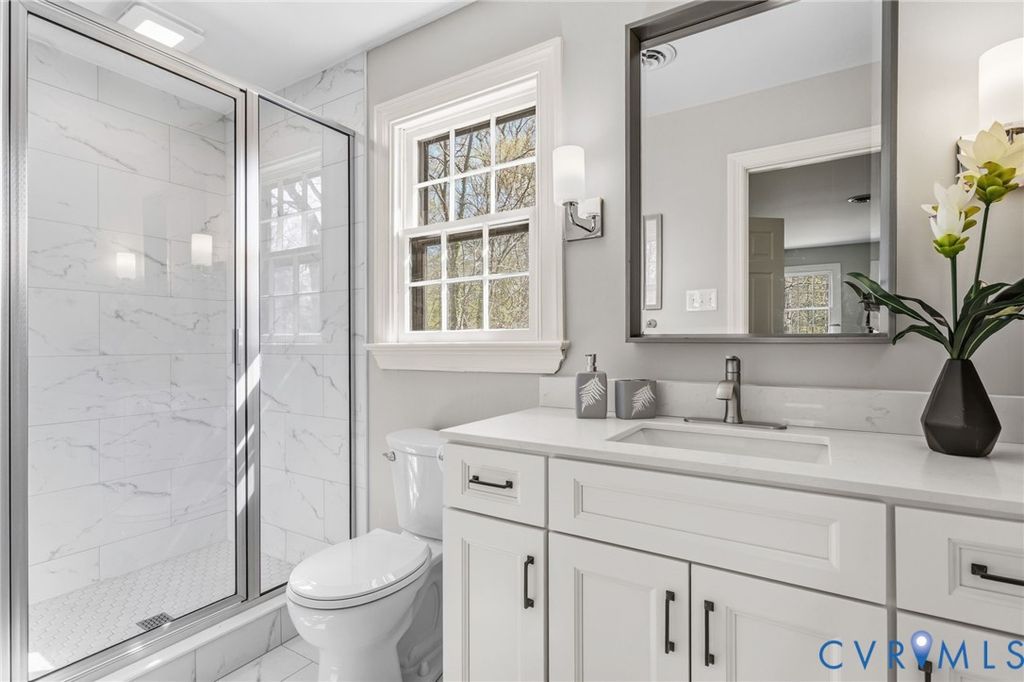 13311 Glendower Road offers the rare combination of classic neighborhood charm and turnkey modern updates in one of Midlothian's most desirable settings. Tucked on a private, nearly one-acre lot in Powderham at the edge of Salisbury, this beautifully renovated 4-bedroom, 2.5-bath home has been thoughtfully updated with style, quality, and everyday livability in mind. Inside, refinished hardwood floors, newly painted interior, and updated lighting throughout create a polished, welcoming feel. The renovated kitchen is both beautiful and functional, featuring all new appliances and seamless flow for daily living and entertaining. All baths have been tastefully updated with tile finishes, and Schluter systems were used throughout the tiled spaces for added quality and durability. On the main level, you'll find two comfortable living spaces, including one anchored by a gas fireplace, along with a formal dining room, a spacious eat-in kitchen with bar seating, and an oversized laundry/mud room, and a renovated half bath. All four bedrooms, and two full baths are located upstairs. The primary suite features an expanded tiled shower with glass enclosure, while the secondary bath includes a tub. Three additional bedrooms are generously sized, providing flexibly for family, guests, or home office needs. The home's exterior is equally impressive, featuring fresh paint, updated landscaping, and Hardie® Plank siding for timeless curb appeal and durability. Major recent improvements provide peace of mind, including a new HVAC/ gas furnace (12/25), crawl space vapor barrier (3/26), fresh exterior & interior paint, and enhanced landscaping that adds to the home's curb appeal. Move-in ready and thoughtfully finished, 13311 Glendower Road is a standout opportunity in an established Midlothian neighborhood just moments from shopping, dining, and everyday conveniences. Note: Professional Pictures coming 4/1