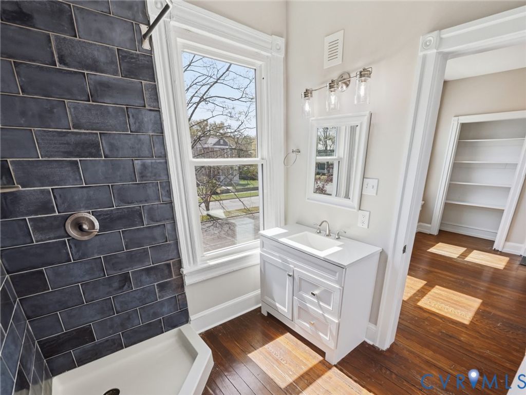 Welcome to this stunning, move-in-ready home in Woodland Heights, complete with a detached two-car garage, separate 200amp service and a climate controlled loft"”perfect for a studio, workshop, or additional flex space! Rich in character, this home beautifully preserves its period charm with heart pine wood floors and timeless decorative finishes throughout. Step onto the stately covered front porch and into an inviting foyer where warm wood floors set the tone for the rest of the home. The formal living and dining rooms feature elegant mouldings, abundant natural light, and a wide cased opening with pocket doors, offering both openness and privacy when desired. The eat-in kitchen is designed to impress, featuring granite countertops, a breakfast bar, stainless steel appliances, exposed beams, and direct access to the dining room"”ideal for both everyday living and entertaining. The first level also includes a functional mudroom with built-in cabinetry, laundry hookups, and access to the expansive rear deck. An additional office space"”with exposed brick, detailed mouldings, and a private bath"”offers flexibility as a potential first-floor bedroom. Upstairs, you'll find three generously sized bedrooms and two full bathrooms. Two of the bedrooms provide direct access to a charming balcony overlooking the spacious, fenced rear yard, complete with a paver patio"”perfect for relaxing or entertaining outdoors. Conveniently located just minutes from Forest Hill Park, local shops, and popular dining destinations, this one-of-a-kind home offers the perfect blend of historic charm and modern comfort. Don't miss your chance to own a truly special property in one of Richmond's most desirable neighborhoods.