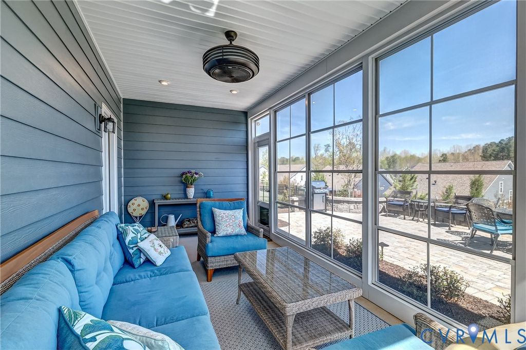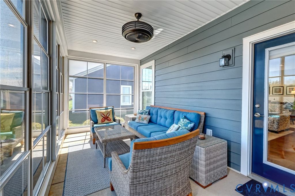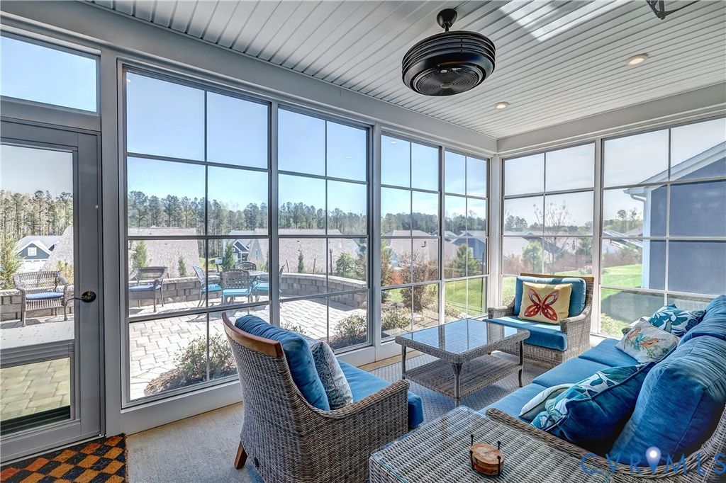 Welcome to this beautifully designed single family home in the sought after 55+ community of Mosaic at West Creek, offering true zero entry living for ease and comfort. Inside you will discover an open and airy layout with 9ft ceilings on the first level and rich engineered hardwood flooring throughout the main living spaces. The heart of the home is the stunning, thoughtfully upgraded kitchen featuring quartz countertops, an oversized island, ceramic farmhouse sink, gas range, and a custom walk in pantry sure to impress. The kitchen flows seamlessly into the dinning and living room where a cozy gas fireplace creates a perfect setting for entertaining or relaxing. The first floor primary suite is a true retreat, complete with a spa like bathroom offering a zero entry tile shower with bench and glass surround, dual vanities, and 2 walk in closets with custom built ins. 2 additional bedrooms...(one currently serves as an office space) a full bath, and a convenient laundry room complete the main level. Upstairs you'll find a versatile loft space ideal for a second living area, hobby room, or guest retreat, along with over 200 sq ft of conditioned storage space. Enjoy outdoor living year round in the 3 season room, which doubles as a screen porch, or step out to the beautifully designed paver patio with sitting wall and enhanced by added landscaping. Residents of Mosaic enjoy resort-style amenities, including a pool, clubhouse, walking trails, sidewalks and a vibrant calendar of planned community activities. This home perfectly blends low-maintenance living with upscale finishes and an active lifestyle-don't miss your opportunity to make it yours!!