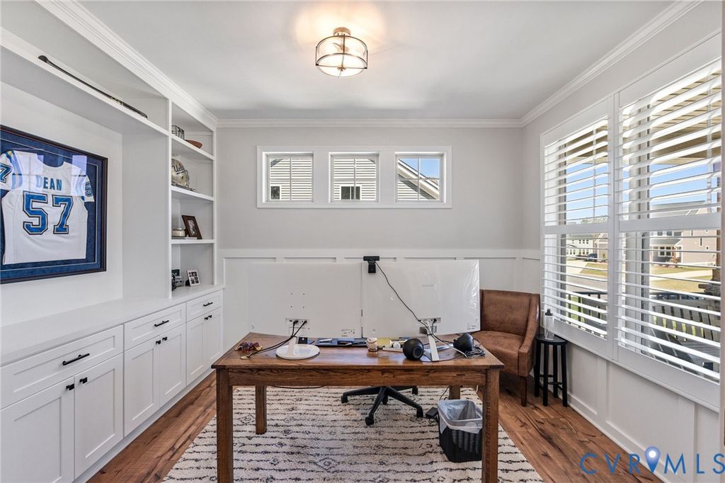 Welcome to this like-new and beautifully upgraded Madison floor plan created and custom built. This stunning 4-bedroom home is located in one of the area's most sought-after communities, Legacy Park at Magnolia Green. Thoughtfully designed with both style and function in mind, this home features a dedicated office space with French Doors, a highly desired first-floor bedroom with full bath, a gourmet/upgraded kitchen of your dreams, and a true centerpiece of the home, showcasing upgraded finishes, abundant work/kitchen space, and an open flow ideal for both everyday living and entertaining. Custom trim details and elegant wainscoting add warmth and character and a designer touch throughout. The covered porch just off the morning room adds even more space to flow in and out, creating a perfect flow. Upstairs features a beautiful primary bedroom with walk-in closets and an upgraded en-suite bath. Flexible loft space upstairs creates even more opportunity for a playroom, office, workout, or hang space, and 2 more spacious bedrooms upstairs. With modern finishes, flexible living spaces, and a prime neighborhood setting, this home offers the perfect blend of luxury and comfort.