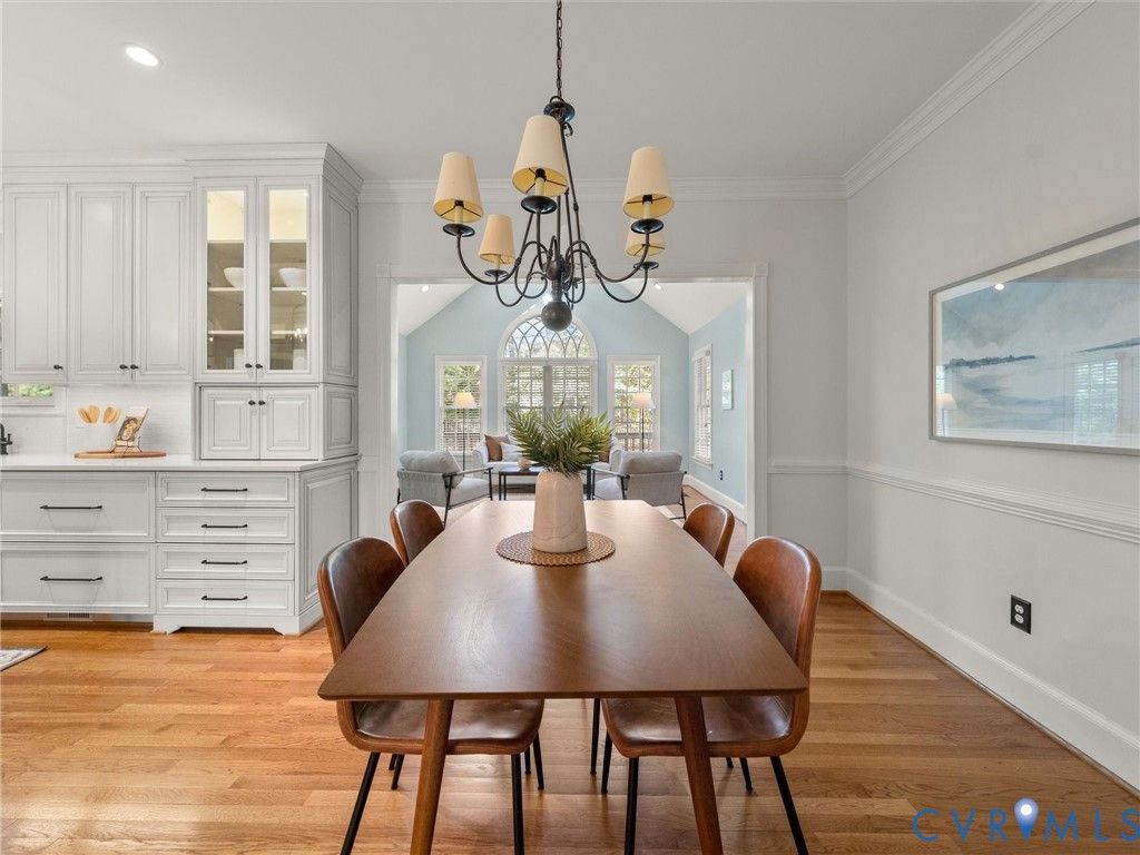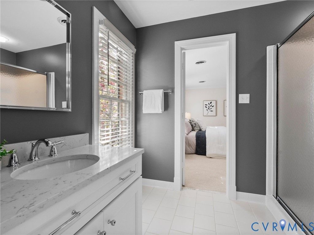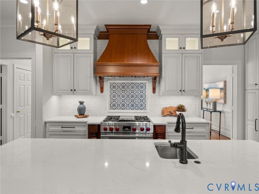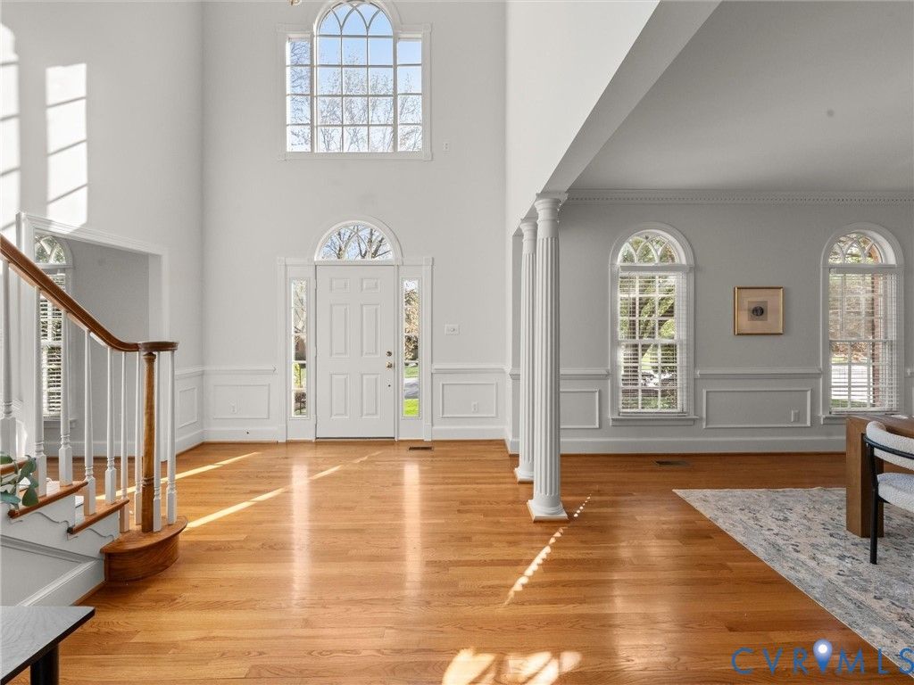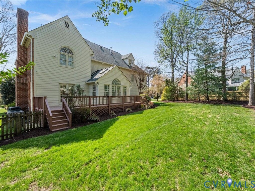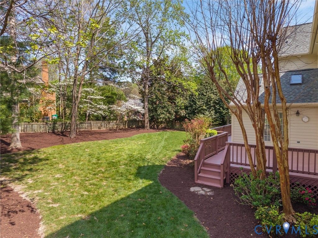 This stately renovated and meticulously maintained 5 bedroom, 4 ½ bath brick home is beautifully sited on an elevated flat lot in the sought-after Barrington neighborhood. The light-filled 2-story foyer with sweeping staircase opens to the formal living and dining rooms featuring timeless architectural details and newly refinished hardwood floors. Renovated in 2022 by Custom Kitchens, the chef's kitchen is a true focal point, thoughtfully designed with ample custom cabinetry, quartz island/counters and top-of-the-line stainless steel appliances including a Wolf gas range, SubZero refrigerator/freezer, convection wall oven, microwave and Bosch dishwasher. The kitchen opens to the breakfast room and a bright sunroom with vaulted ceiling and skylights.The spacious family room features a gas fireplace and custom-built bookcases. The first floor is completed by a drop zone with custom lockers off of the two-car garage - balancing this home's elegance with everyday practicality. French doors from the sunroom and family room seamlessly flow to the raised deck overlooking the landscaped yard with mature trees creating a private yet inviting setting for both quiet mornings and evening gatherings. Upstairs, you will find a total of five bedrooms and three full baths - including the luxurious primary suite with two walk-in closets and a newly renovated primary bath with double vanity, freestanding soaking tub, walk-in tiled shower, heated towel rack and heated floors. Three additional bedrooms, two full renovated baths, and a laundry room complete the second level. The third floor adds exceptional versatility with a large recreation room with vaulted ceiling and potential 6th bedroom with built-in workspace, walk-in closest plus a full bath. Significant updates include newer roof, newer aggregate driveway and walkway, newer HVAC systems and water heater. Ideally located just minutes from Short Pump's premier shopping and dining, top-rated schools, and major highways, this home is truly move-in ready!
