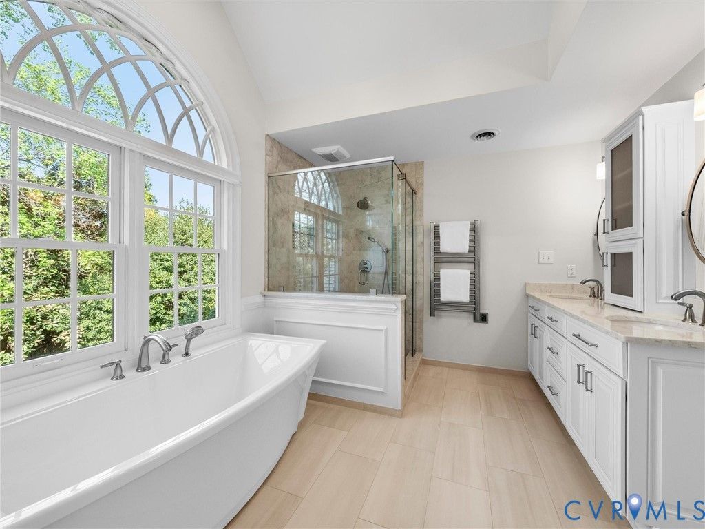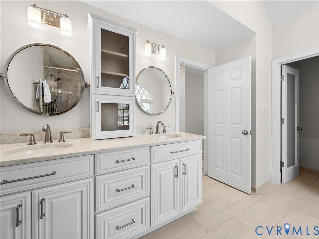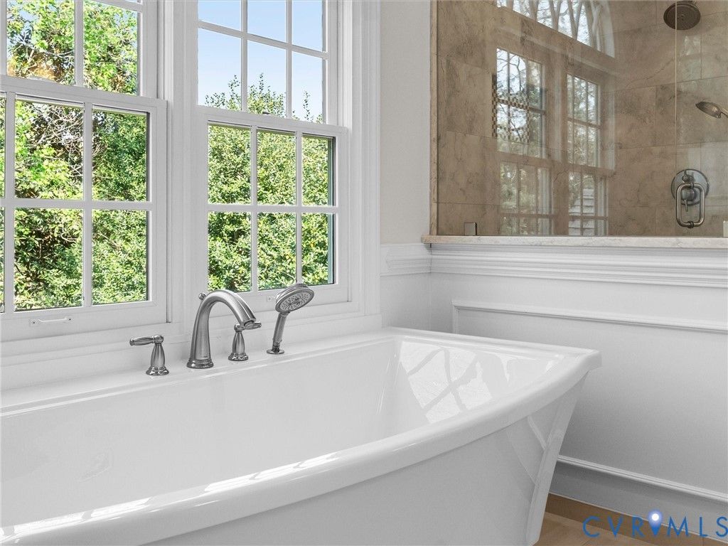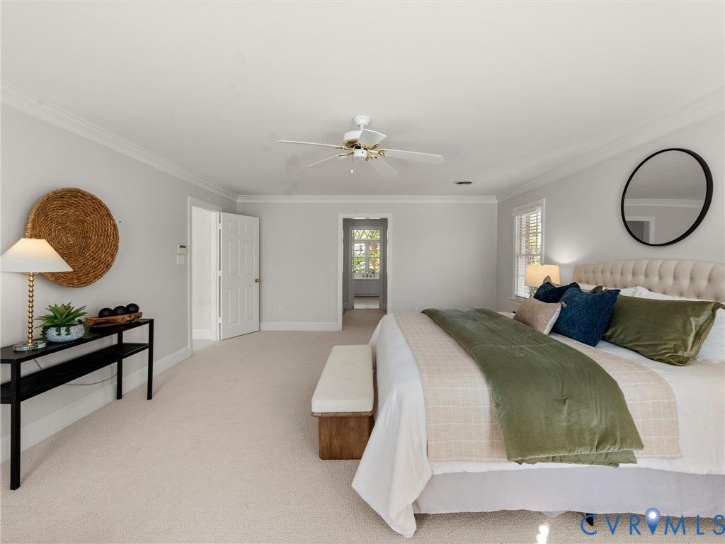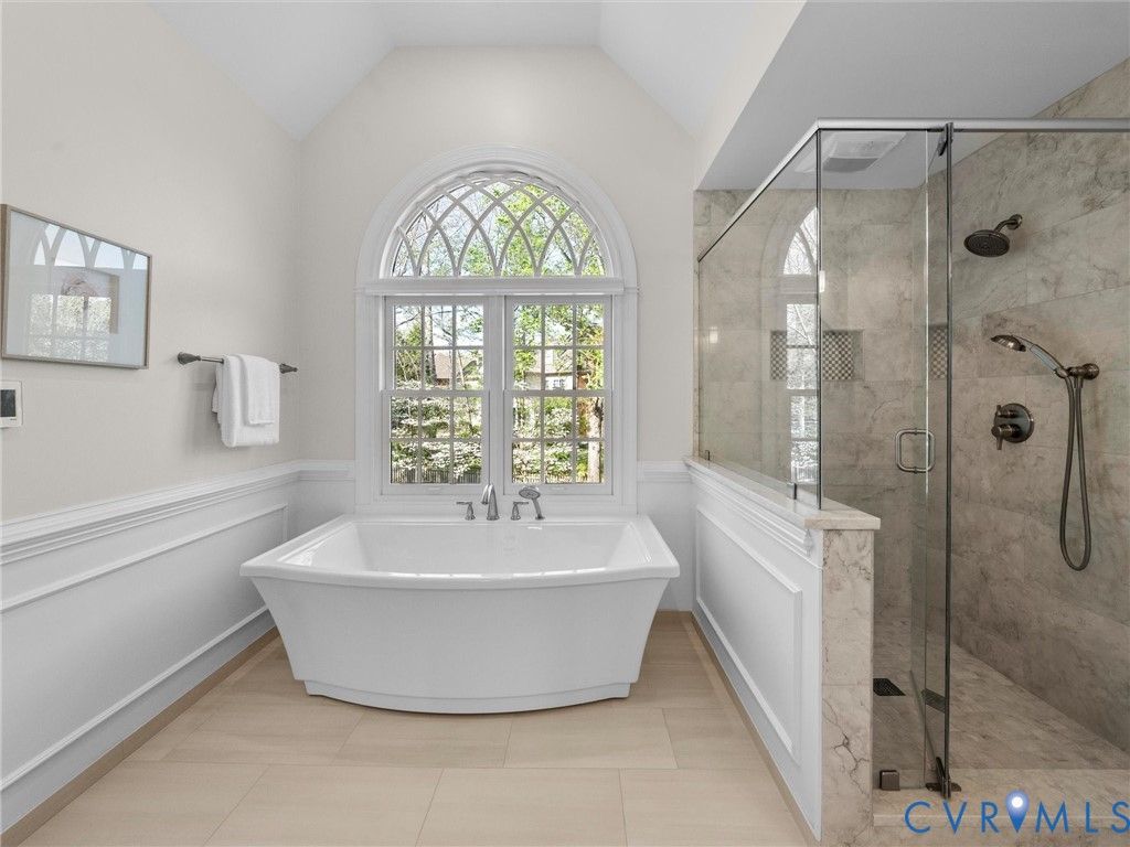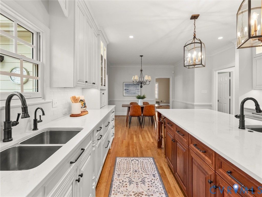 This stately renovated and meticulously maintained 5 bedroom, 4 ½ bath brick home is beautifully sited on an elevated flat lot in the sought-after Barrington neighborhood. The light-filled 2-story foyer with sweeping staircase opens to the formal living and dining rooms featuring timeless architectural details and newly refinished hardwood floors. Renovated in 2022 by Custom Kitchens, the chef's kitchen is a true focal point, thoughtfully designed with ample custom cabinetry, quartz island/counters and top-of-the-line stainless steel appliances including a Wolf gas range, SubZero refrigerator/freezer, convection wall oven, microwave and Bosch dishwasher. The kitchen opens to the breakfast room and a bright sunroom with vaulted ceiling and skylights.The spacious family room features a gas fireplace and custom-built bookcases. The first floor is completed by a drop zone with custom lockers off of the two-car garage - balancing this home's elegance with everyday practicality. French doors from the sunroom and family room seamlessly flow to the raised deck overlooking the landscaped yard with mature trees creating a private yet inviting setting for both quiet mornings and evening gatherings. Upstairs, you will find a total of five bedrooms and three full baths - including the luxurious primary suite with two walk-in closets and a newly renovated primary bath with double vanity, freestanding soaking tub, walk-in tiled shower, heated towel rack and heated floors. Three additional bedrooms, two full renovated baths, and a laundry room complete the second level. The third floor adds exceptional versatility with a large recreation room with vaulted ceiling and potential 6th bedroom with built-in workspace, walk-in closest plus a full bath. Significant updates include newer roof, newer aggregate driveway and walkway, newer HVAC systems and water heater. Ideally located just minutes from Short Pump's premier shopping and dining, top-rated schools, and major highways, this home is truly move-in ready!