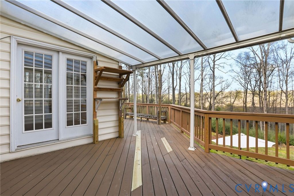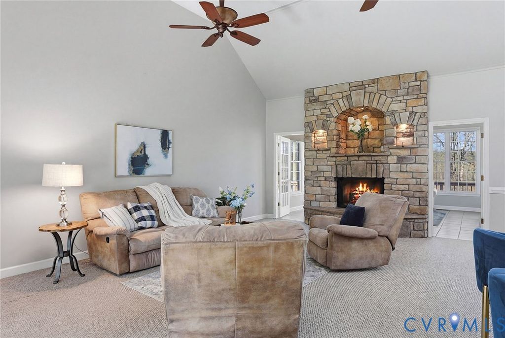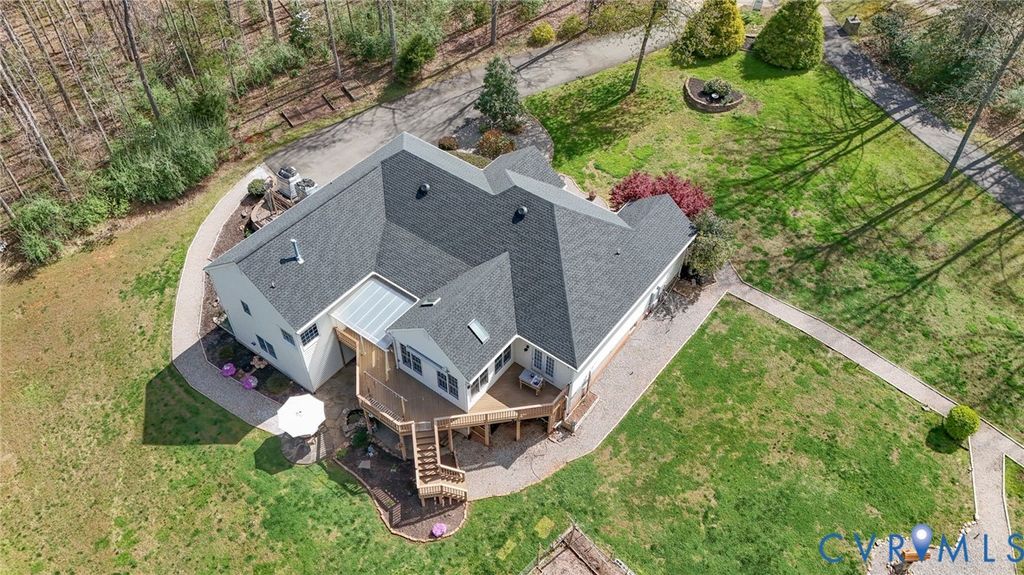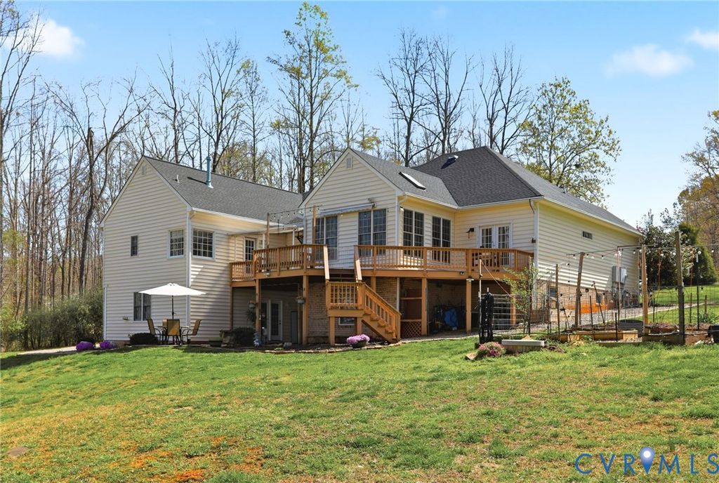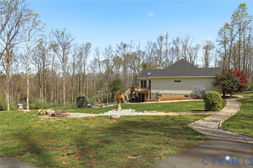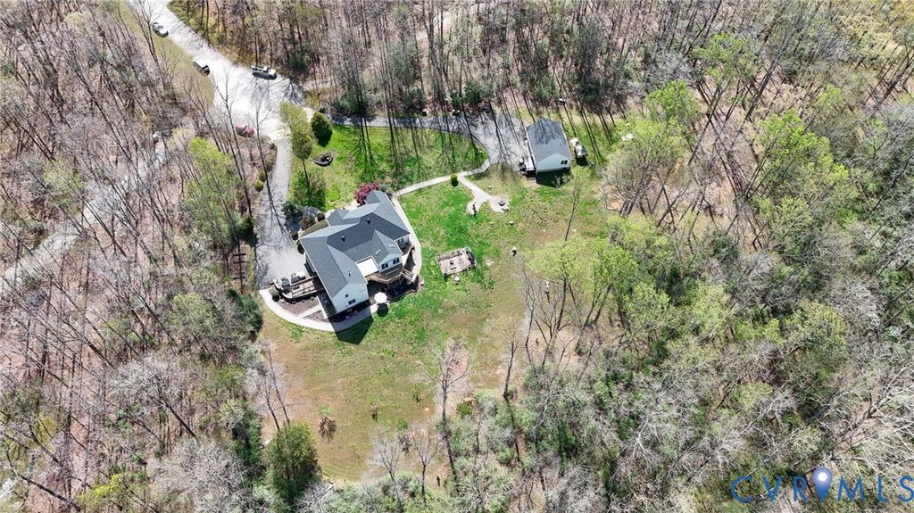 DO NOT MISS THIS ONE!!! Tucked away on a quiet cul-de-sac in Powhatan, this exceptional property offers space, comfort, & serene country living on just over 4 acres backing to an 80-acre preserved area for added privacy. Inside, the main level features a bright, open floor plan with a cathedral ceiling & striking stone gas fireplace. The spacious living room flows into the updated eat-in kitchen with stainless steel appliances (convey), ample cabinetry, & pantry. A formal dining room is perfect for gatherings, while the sunroom/morning room with a double-sided fireplace offers a cozy, light-filled retreat. The main level includes 3 bedrooms, highlighted by a spacious primary suite with a large walk-in closet & luxury bath featuring double vanities & a double-sided fireplace. Additional conveniences include a laundry room with storage, walk-up attic, & attached 2-car garage with shelving. The fully finished walk-out basement offers incredible flexibility with multiple bedroom options, large living area, kitchenette with granite (2017), full bath, & separate laundry"”ideal for guests or multi-generational living. A detached 2-car garage includes a partially equipped studio apartment with its own water heater, full bath, & cabinetry. Outdoors, enjoy established fruit trees & plants"”peaches, pears, apples, cherries, grapes, blueberries, blackberries, & strawberries"”plus peaceful surroundings, mature landscaping, & no HOA. Notable updates: ROOF (house & garage) 2025; HOME WATER HEATER 2026; HVAC (2018 & 2010); PAVED DRIVEWAYS 2019; IRRIGATION 2018; WHOLE HOUSE GENERATOR (regularly serviced); WATER SOFTENER SYSTEMS; DECKS PAINTED 2026; SEPTIC LID 2025; UP-Fridge & Washer 2025; Down Washer/Dryer 2025. A rare opportunity to own a beautifully maintained home offering privacy, versatility, & modern comfort in a well-established setting.