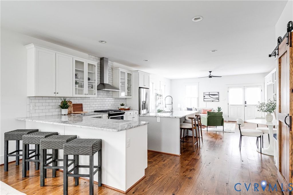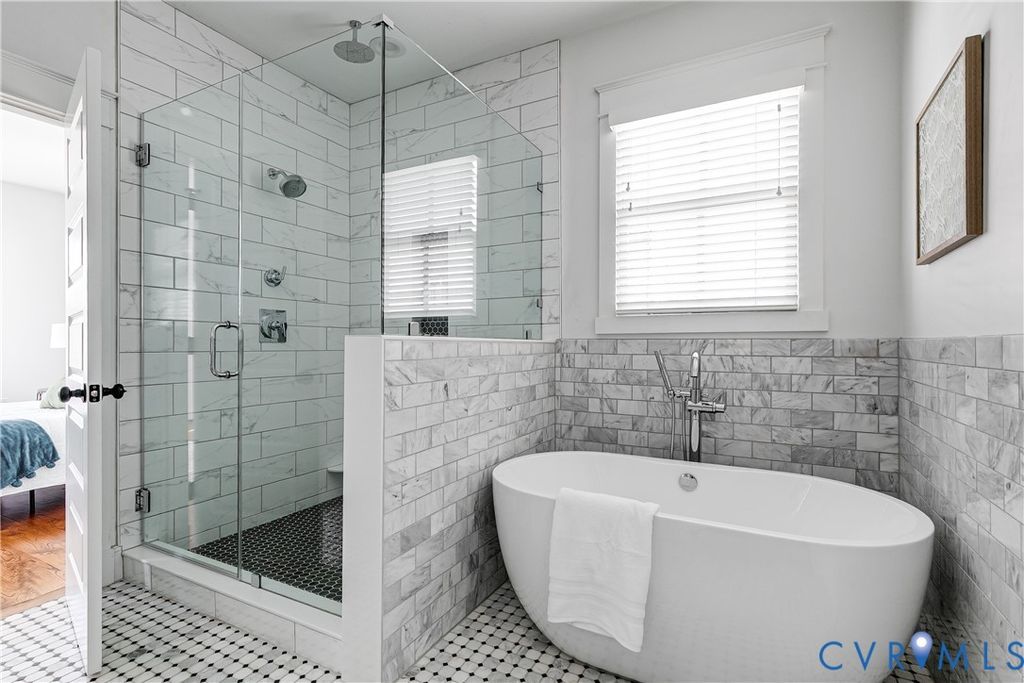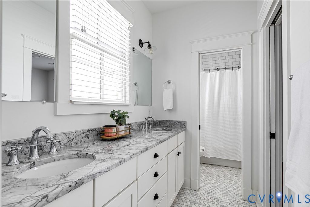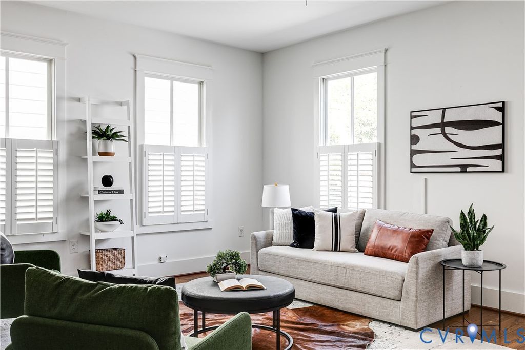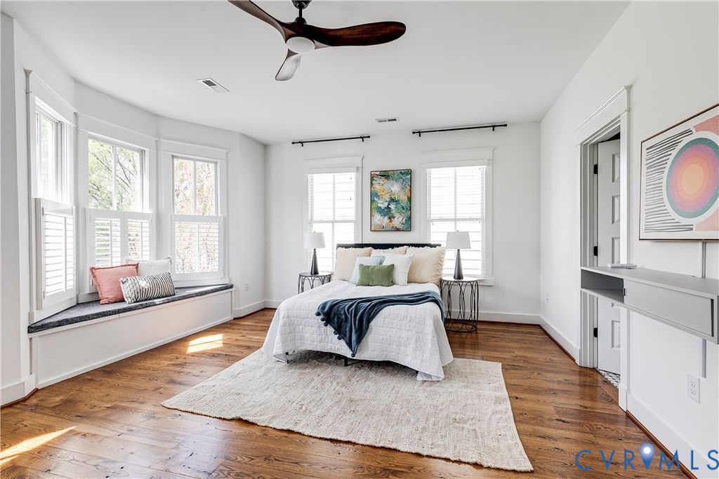 Set directly across from Jefferson Park in historic Union Hill, you're going to love 2112 E Clay St! With its Victorian-inspired design, signature turret, and classic bay window, this home fits perfectly into one of RVA's most storied and iconic neighborhoods. Built in 2017, you'll enjoy over 2400SF of living space, wide-plank hardwood floors throughout, tall ceilings, recessed lighting, plantation shutters, and much more! Inside the large living room offers incredible light from the bay window that overlooks the park. A double-sided gas fireplace w/ shiplap panels and custom mantels leads into the large dining room w/ a gorgeous chandelier. The kitchen is immaculate and offers marble counters, a peninsula and a large island, white cabinetry w/ glass uppers, soft close features and dovetailed construction, tile backsplash, farmhouse sink, gas cooking, and a large walk-in pantry w/ wood shelving and sliding barn door. There's an idyllic breakfast nook w/ built-in seating just off the kitchen! The oversized family room is filled w/ sunny windows and hosts a wall of built-in cabinets"”a perfect drop-zone w/ lots of storage! There's stylish picture trim along the stairwell as you make your upstairs to three generous bedrooms including the primary suite. It features its own bay window w/ custom cushions and storage below, hardwood floors, and a spectacular ensuite bath offering a walk-in shower w/ tile surround, frameless glass door, a soaker tub surrounded by marble tile, a double vanity w/ custom paneling overhead, beautiful sconce lighting, and a large walk-in closet w/ wood shelving. Down the hall you'll pass the laundry room and convenient linen closet on your way to two additional bedrooms. They both offer ample closet space, hardwood floors, and share a Jack & Jill style bathroom w/ dual bowl vanity and tub/shower w/ tile surround. Outdoors you'll love the rear paver patio w/ privacy fence. Overlooking Jefferson Park and steps from Union Market, Sub Rosa and more, 2112 E Clay is the perfect place to call home!