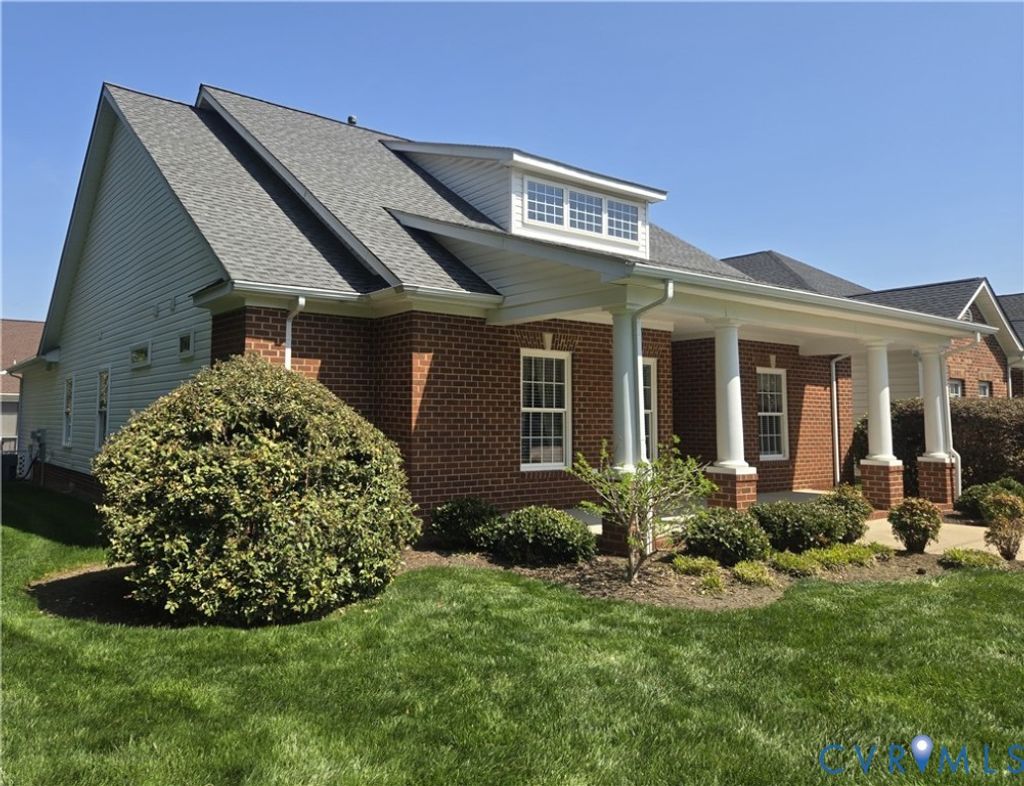 Brick front, brick back 3 bedroom rancher, 2 full baths, full front porch, 1.5 car garage in rear. Eat in kitchen with bar, pantry with pull out shelves, 2 lazy susan. 1 year old stainless steel refrigerator, microwave, cook stove w/wood floors. Great room with dining area and family area. Vaulted ceilings, ceiling light fan and2 transom windows. There is a see thru natural gas vent less fireplace open to sunroom. Sunroom with carpet and frenchdoor. Primary suite with 2 walk in closets, pocket door to bathroom, double vanity sinks, 2 transom windows, shower w/double shower heads. Ceramic tile floor. 2 other bedrooms offer closets, ceiling light fans. Roof is 6 years old, Property has companion irrigation meter for the irrigation. Chester Village Garden is a village style community with sidewalks, gutters and street lights. The HOA association takes care of grass, pruning, mulch, irrigation, snow and trash removal. BEAUTIFUL LARGE FRONT YARD, SIT ON THE FRONT PORCH AND ENJOY YOUR VIEW AND PIECE AND QUIET, HOME IS AT THE END OF CUL-DE-SAC.