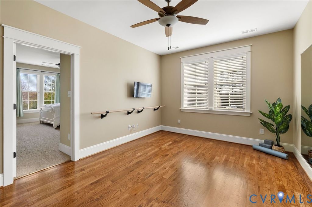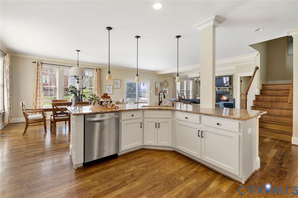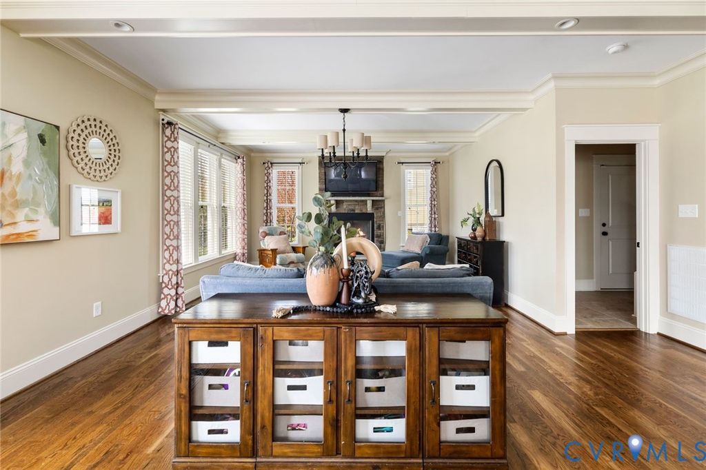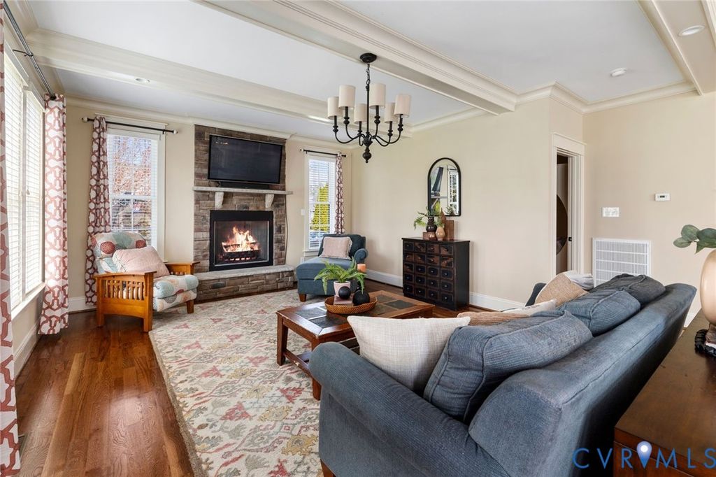 Welcome to this beautifully maintained, one-owner, Biringer Built, home in the highly sought-after Hallsley community, where timeless design meets everyday comfort. Built in 2014 and offering over 3,600 square feet, this thoughtfully designed home features elegant finishes, flexible living spaces, and exceptional indoor-outdoor flow. A welcoming foyer with hardwood floors and 9' ceilings sets the tone, leading to a formal dining room with craftsman-style wainscoting and a well-appointed butler's pantry with granite countertops, tile backsplash, and under-cabinet lighting"”perfect for entertaining. The heart of the home is the open-concept family room and kitchen, where a coffered ceiling, stone gas fireplace, and abundant natural light create a warm and inviting space. The kitchen is a chef's dream with custom cabinetry, granite counters, a walk-in pantry, gas cooking, wall oven, and built-in microwave. Upstairs, the spacious primary suite offers a walk-in closet in a luxurious bath with double vanity, garden tub, and oversized shower with dual heads. Additional bedrooms include a Jack & Jill bath and a private en-suite, providing flexibility for family and guests. The bedrooms are all accessed from a central flex/loft space, currently used as a dance studio. A finished third-floor bonus room with mini-split system makes an ideal home office, play room or teen hangout. Enjoy outdoor living on the aggregate patio with wood-burning fireplace, overlooking a flat, usable yard. Additional highlights include a 2-car garage, mudroom with built-ins, irrigation, tankless water heater, and updated systems. Located in amenity-rich Hallsley, residents enjoy resort-style pools, clubhouse, trails, and a vibrant community atmosphere, all within the top-rated Midlothian school district. This is more than a home"”it's a lifestyle.