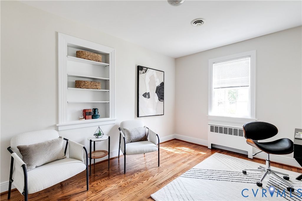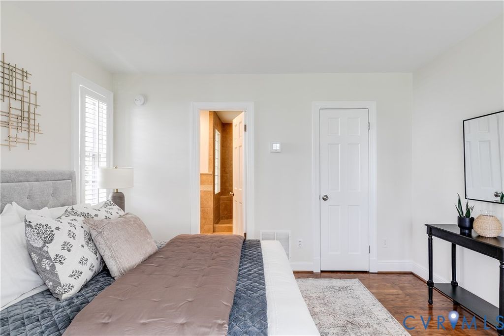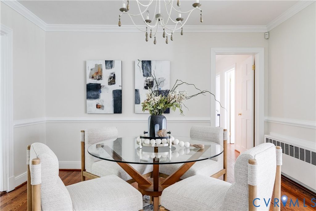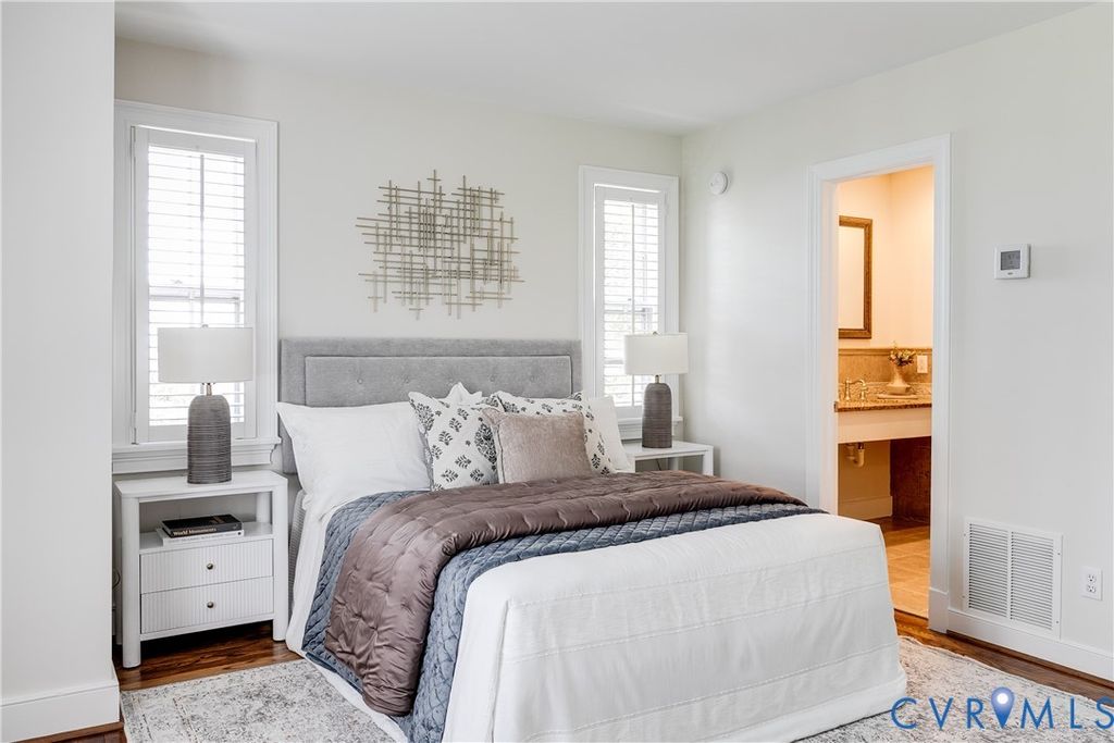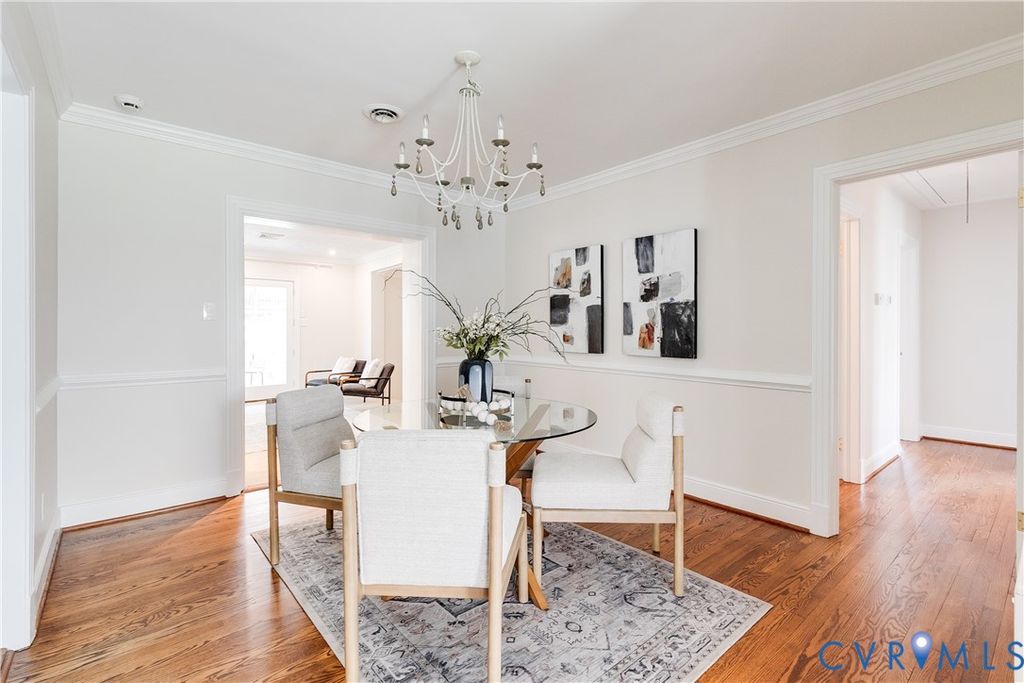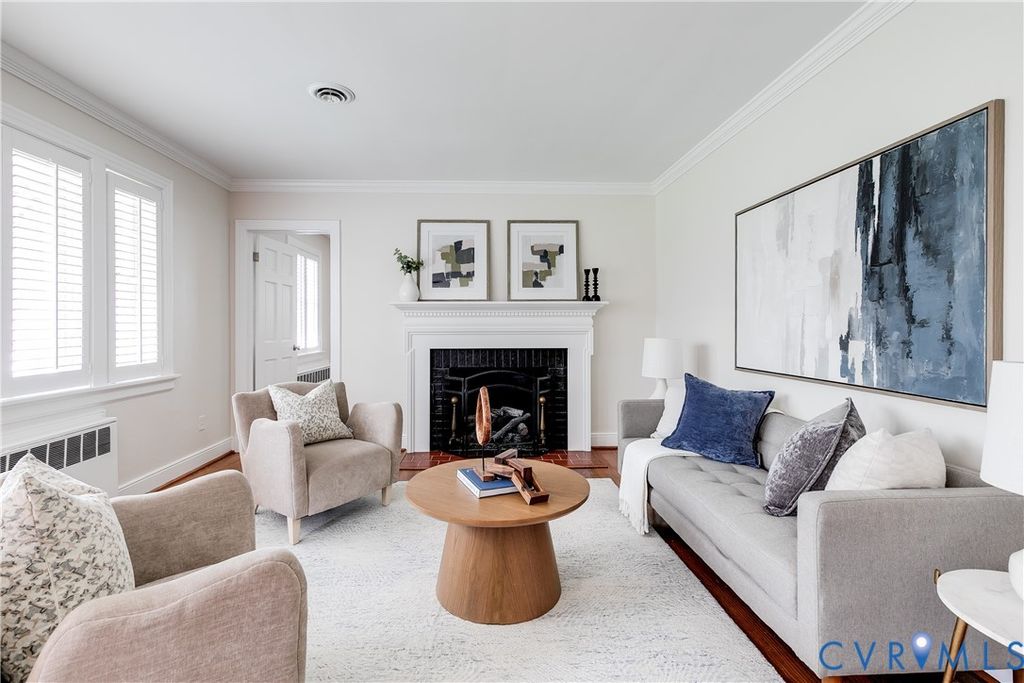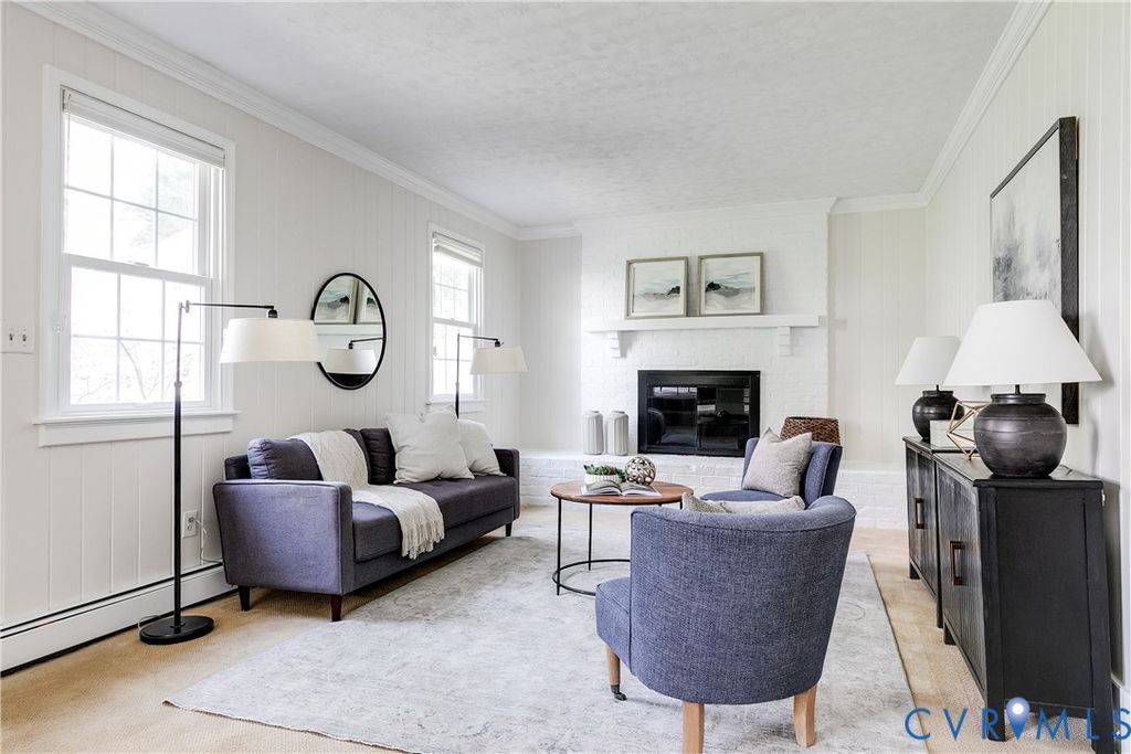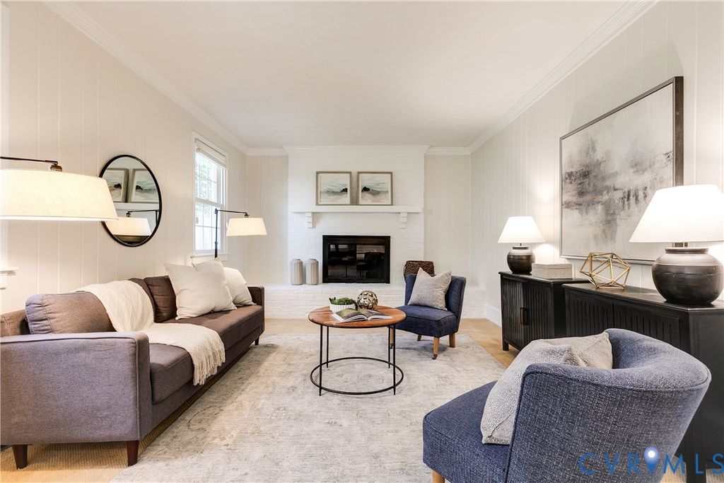 THIS IS THE ONE YOU'VE BEEN WAITING FOR!! Located on one of the most desirable streets in the Heart of Westham. One-floor living, freshly painted, with hardwood floors and crown moulding throughout. Light and bright Living Room with gas fireplace, Dining Room with chandelier, spacious eat-in Kitchen with quartzite countertops and decorative backsplash - conveniently located laundry room and powder room. The en-suite Primary Bedroom has a large walk-in closet, bath with open, step-in shower, and is situated on one end of the home. Three additional bedrooms and a full bath are located on the opposite wing, allowing space to spread out and enjoy some privacy. The floored attic space is enormous and offers plenty of storage. The cozy Family Room is carpeted and has a fireplace with raised hearth and wall paneling. Sun Room is also carpeted with built-ins and French Doors that lead to the fabulous covered rear patio with ceiling fan that overlooks the fully fenced backyard with hardscaping, terraced gardens and mature plantings. In addition, there is a garden house and a recently completed detached studio (198sqft) with separate electric, sink, and mini-split system. This home really does have it all and is perfectly situated in one of Richmond's most sought-after neighborhoods, steps from a park/playground, and a short walk to shops, restaurants, schools, and everything else Westham has to offer. A MUST SEE!