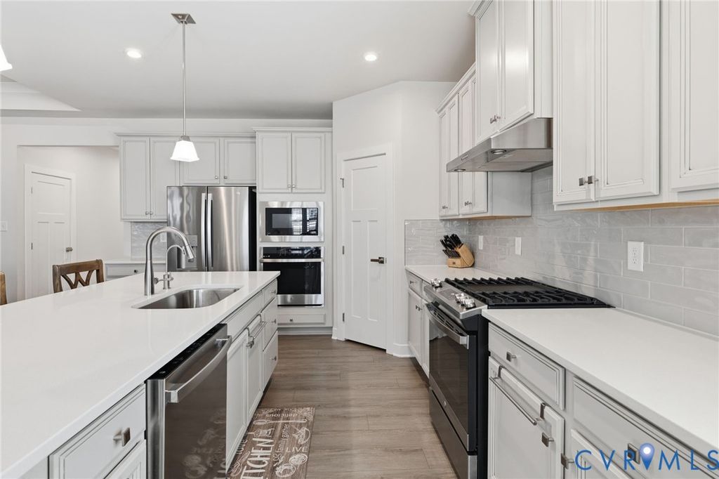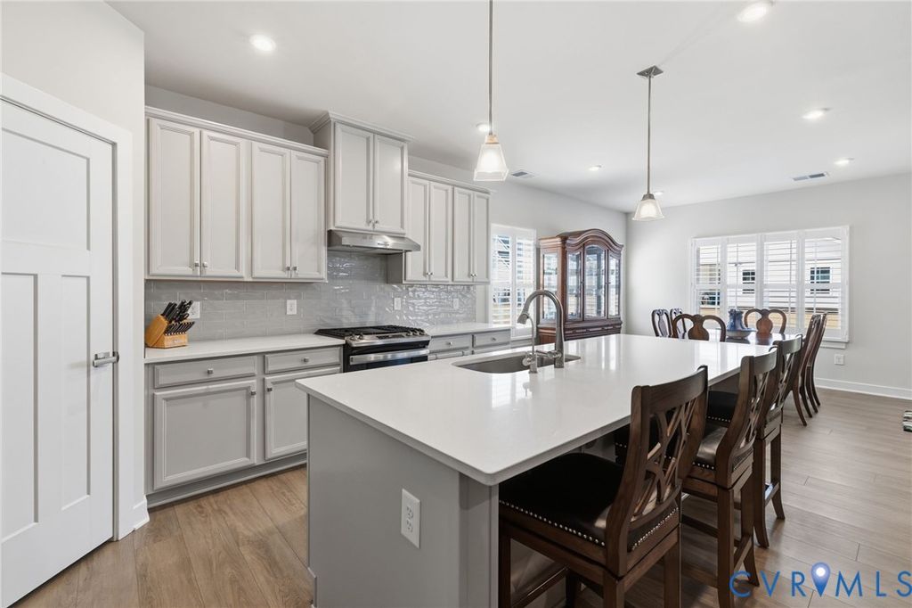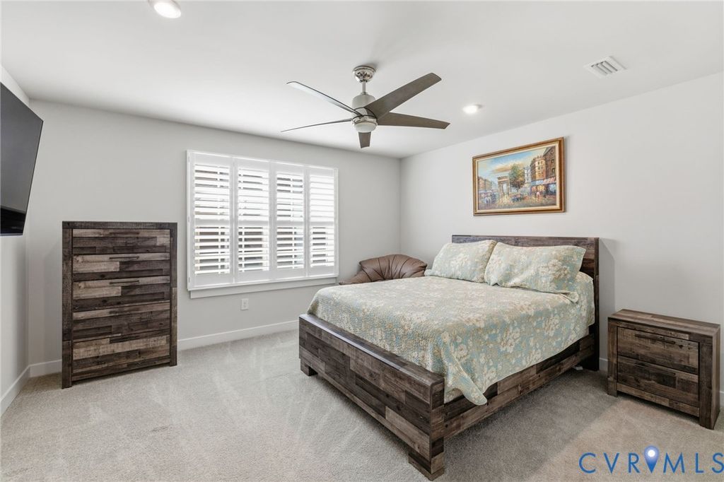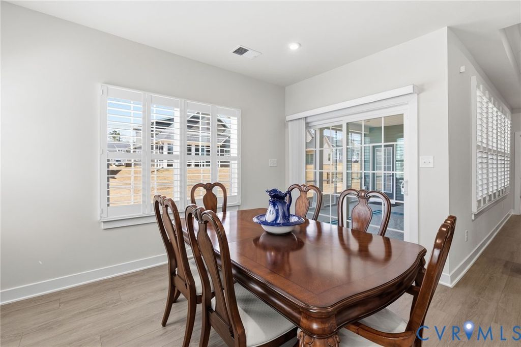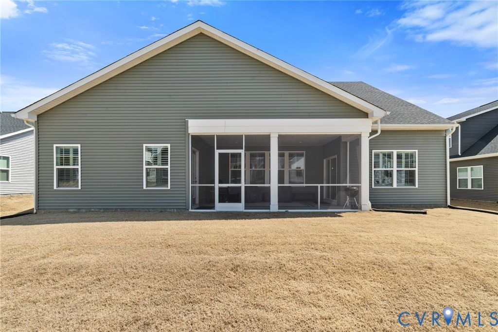 Welcome to 7644 Autumn Leaves Lane, located in the Renaissance at Four Seasons within The Groves at New Kent Estates, an active adult community offering low-maintenance living. This beautifully designed Savannah is better than new. With 4-bedrooms and 3 full baths, this home offers the ease of main-level living with thoughtful upgrades throughout. Just off the entry, a dedicated home office provides the perfect space for remote work or a quiet retreat. The open-concept kitchen, dining, and living areas create a seamless flow, ideal for both everyday living and entertaining. The living room is accented by an elegant tray ceiling, while the kitchen features a huge island, quartz countertops, high-end appliances, and a spacious walk-in pantry. Custom louvered shutters appoint the windows throughout the home. The first floor primary suite offers a tray ceiling, dual walk-in closets, and a generously sized en suite bath with a walk-in shower. Two additional bedrooms on the main level provide flexibility for guests or additional workspace. Upstairs offers additional flexible living space, including a fourth bedroom, full bath, and an open loft ideal for a second living area, hobby space, or media room, along with a finished and air conditioned storage room. With its versatile layout, thoughtful finishes, and low-maintenance lifestyle, this home stands out in one of New Kent County's most desirable and sold out active adult communities.