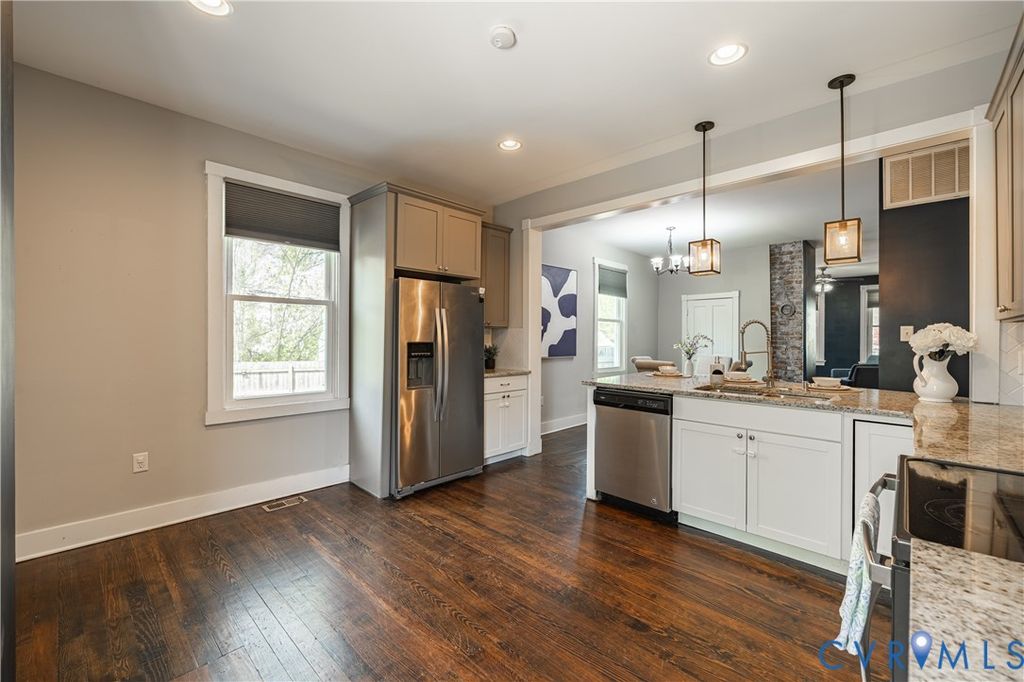 Welcome to 503 Arnold Avenue, where timeless character meets modern convenience. Originally built in 1910 and thoughtfully renovated, this beautifully maintained home offers 4 bedrooms and 3 full bathrooms, including a highly sought-after first-floor bedroom and full bath. Step inside to find spacious rooms filled with natural light, highlighted by 9-foot ceilings and newer windows throughout. The kitchen features granite countertops, a tiled backsplash, stainless steel appliances, and a newer double oven, perfect for entertaining or everyday living. All three bathrooms are full baths and showcase tiled showers for a clean, updated feel. Enjoy seamless indoor-outdoor living with a remodeled outdoor deck and an upstairs covered screened-in balcony, offering multiple spaces to relax or unwind. The fully fenced backyard provides privacy, enhanced with smart outdoor lighting, while the inviting front porch adds even more charm. Modern upgrades continue with smart thermostats, a smart doorbell, and a smart deadbolt lock, giving you both comfort and peace of mind. Conveniently located just minutes from downtown Richmond, VCU, and major interstates, this home offers the perfect blend of historic appeal, thoughtful updates, and prime location.