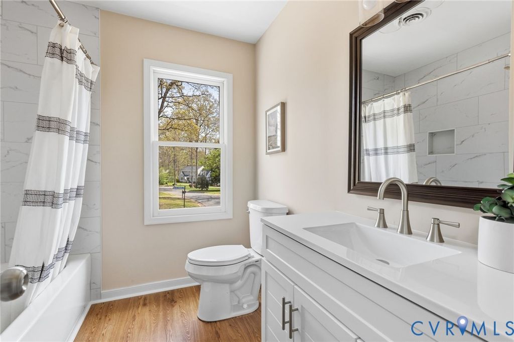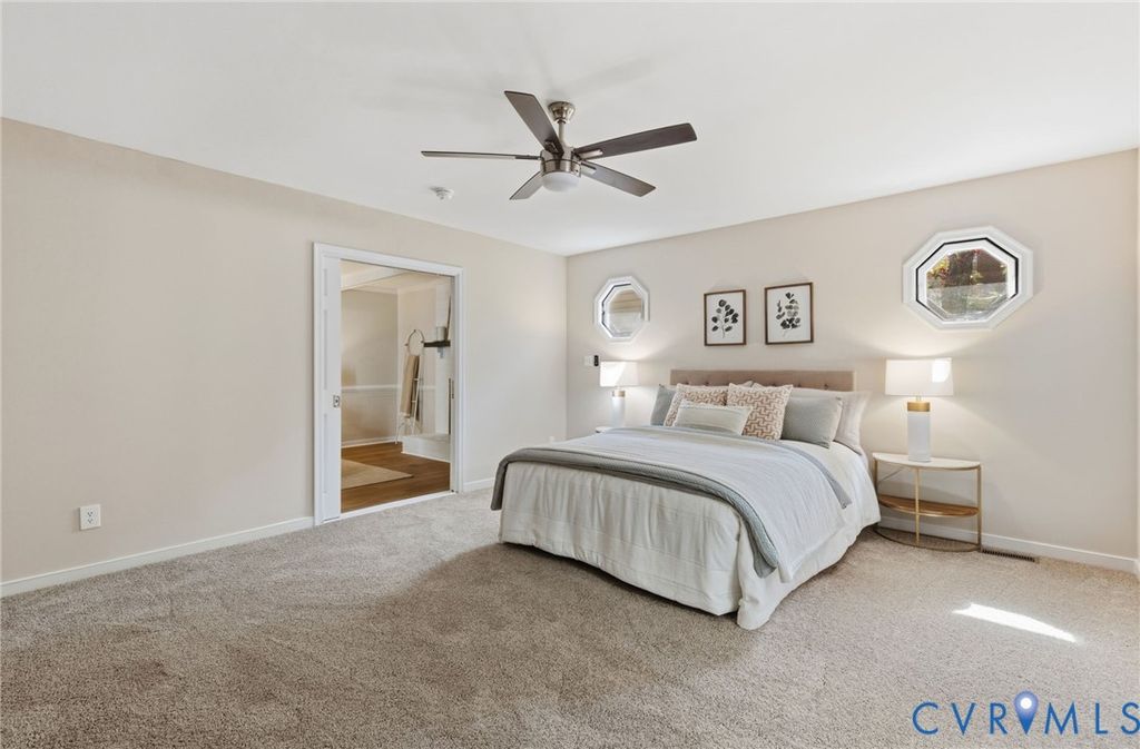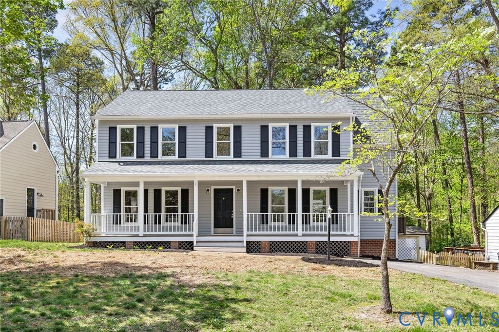 Welcome to 14208 Birnam Woods in the Brandermill Subdivision! This is a 5 bedroom home with both a 1st and 2nd floor primary bedrooms with 3 1/2 baths! The kitchen has New White Shaker Cabinets with quartz countertops, stainless steel appliances and new luxury vinyl plank flooring. Large living room with new lvp flooring as well. Formal dining room and family room with hardwood floors and fireplace. Primary bedroom on first floor has new carpet with private full bathroom that has just been renovated. New tiled shower with new vanity, all new fixtures and flooring. The primary bedroom on the second floor also has a renovated bathroom with new tiled shower, new vanity, fixtures and flooring. 3 additional bedrooms on the second floor all with new carpet and a renovated full hall bathroom with shower tiled bathtub, new vanity, fixtures and flooring. Large walk up attic for storage. The exterior has a full front porch with vinyl siding and a NEW Roof! Enjoy the Brandermill pool, club house, trails etc. Conveniently located to all the shops, restaurants and stores on Hull Street. Swift Creek Elementary and Middle, Clover Hill High School.