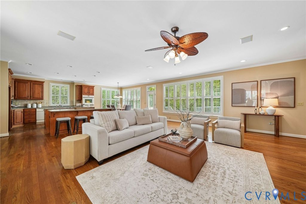 Located within the gated community of Ford's Colony, this 3-bedroom, 3-bath home offers true one-level living on a quiet cul-de-sac with a private, wooded setting. The open-concept layout is filled with natural light, enhanced by an abundance of windows and classic plantation shutters throughout. The great room features beautiful custom built-ins and flows seamlessly into the main living areas, creating a comfortable space for both everyday living and entertaining. Hardwood floors run throughout the main areas, with new carpet in the primary bedroom. The kitchen and baths provide an opportunity for a buyer to update and tailor the home to their own style, while recent improvements including new crawlspace insulation and vapor barrier add value where it counts. Additional features include a spacious 2-car garage with built-in shelving and a functional layout designed for easy living. Ford's Colony offers 24-hour gated security along with access to golf, walking trails, pools, tennis, and an active lifestyle just minutes from Williamsburg conveniences. Offered at an exceptional value for the neighborhood, this home presents a rare opportunity to enjoy privacy, space, and location within one of the area's most sought-after communities.