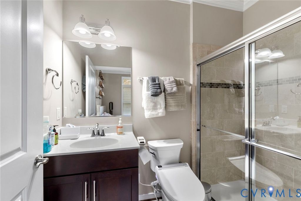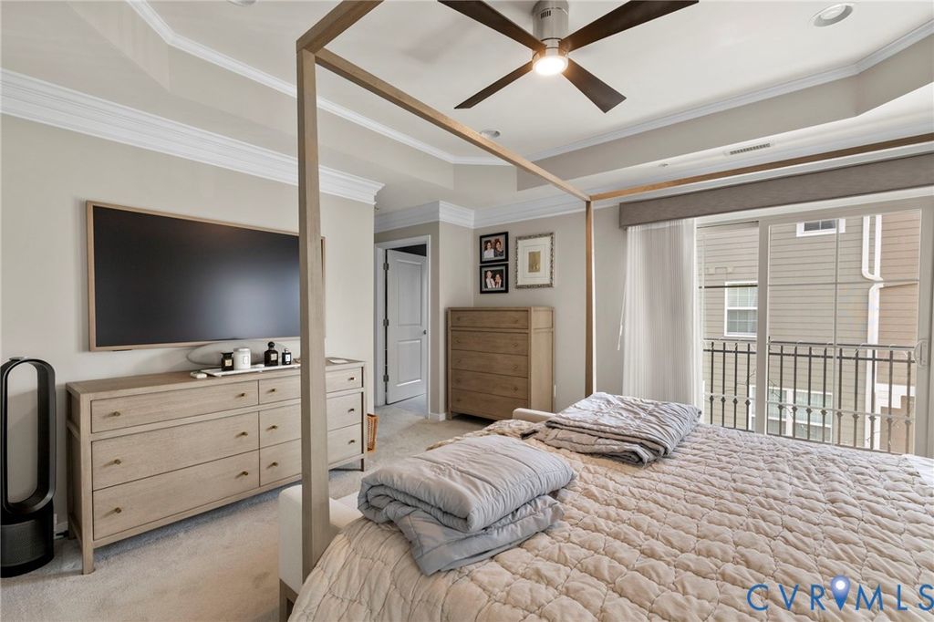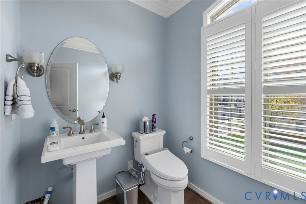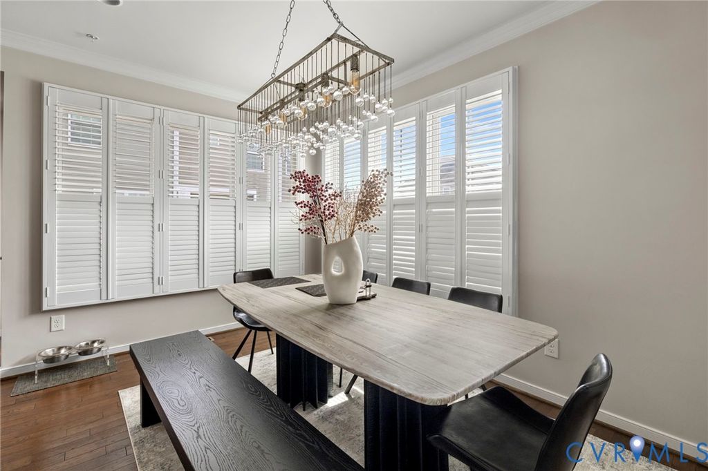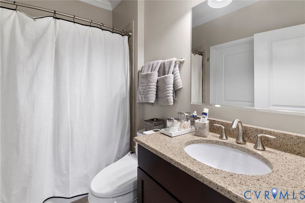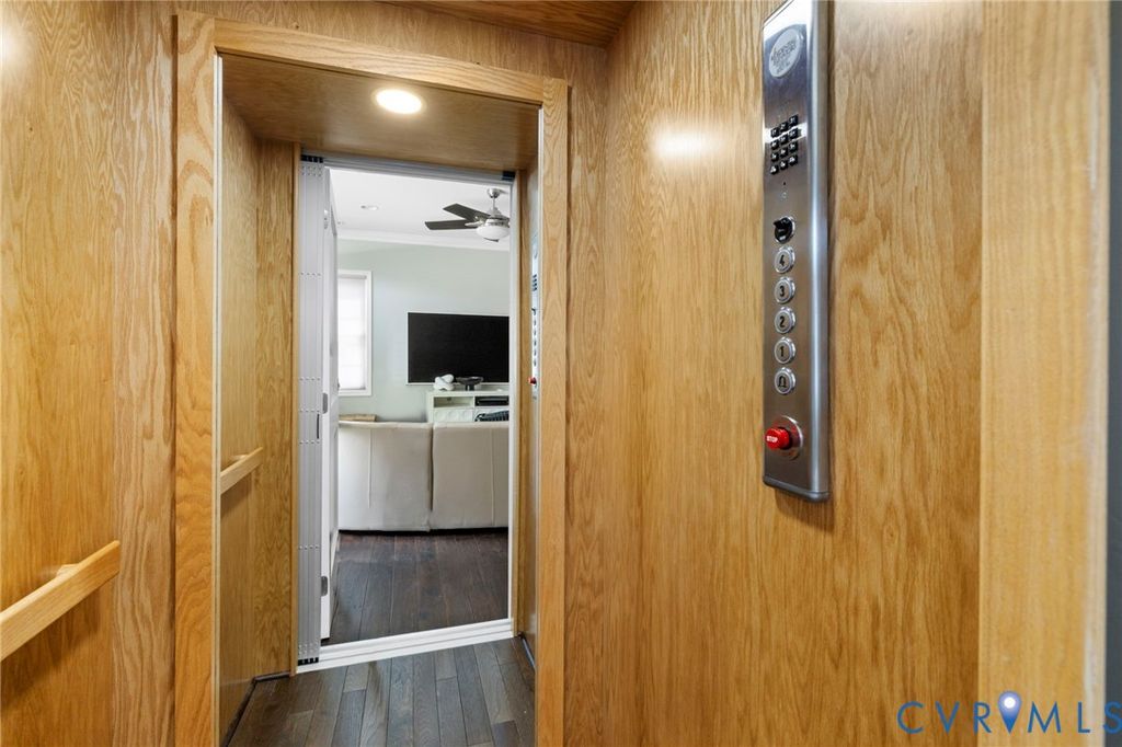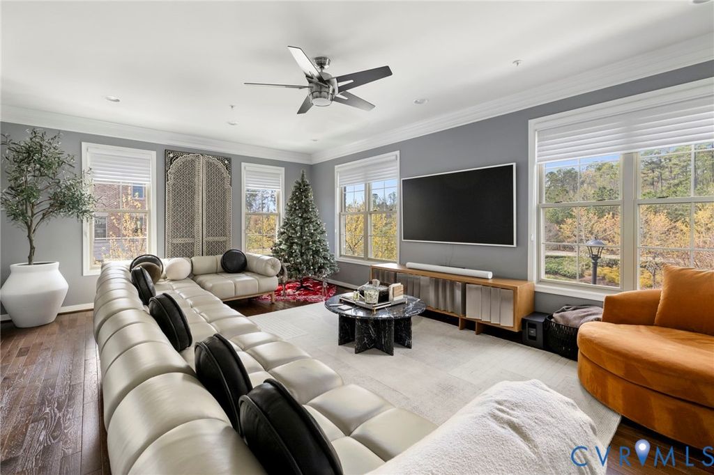 Welcome to Village Commons Walk in West Broad Village, a vibrant, walkable West End community offering an exceptional lifestyle! Enjoy easy living w/ access to Whole Foods, Trader Joe's, REI, Home Goods, boutique shops, coffee spots, fine dining, and more in your neighborhood! Picturesque walking paths, tree-lined streets, 3 tranquil ponds w/ fountains, Short Pump Park, sidewalks, & streetlights create a beautiful, community-focused setting w/ a community clubhouse, pool, & gym. This Franklin refined custom model is one of the most sought-after floor plans in the neighborhood! The wide entryway has custom side molding, railings, & wide planked Hickory hardwood flooring throughout the home. The 1st floor includes a home office, a guest bedroom w/ a full bath, & access to a two-car garage w/ a dual tub stainless sink & a water purifier. A state-of-the-art, 4-level elevator w/ an Oak Cabin (newest model) adds modern convenience. The 2nd floor features an open-concept kitchen w/ a bar-height breakfast bar, ideal for entertaining, custom lighting, plantation shutters, granite counters, a dining area, a spacious family room with built-ins, a gas fireplace, & an unobstructed view of the pond/park. Nice balcony off of the sitting area near the breakfast nook w/ a gas grill hookup. The 3rd floor includes a luxurious primary suite w/ a sitting area, a walk-in closet (custom-built-in closet system), a private balcony, a spa-style bath w/ a jetted soaking tub, & a glass-enclosed shower. An extra bedroom w/ a full bath is also located on this level, featuring stunning views of the pond/park, as well as a laundry room w/ storage. The 4th floor offers a rooftop terrace w/ stunning views, a 4th bedroom w/ en-suite bathroom, a wet bar w/ wine fridge & another family room for relaxing/entertaining. Additional features include: 2-zone HVAC (Upstairs Air Handler & coils recently replaced) & crown & picture frame moldings throughout! Refined urban living at its best.
